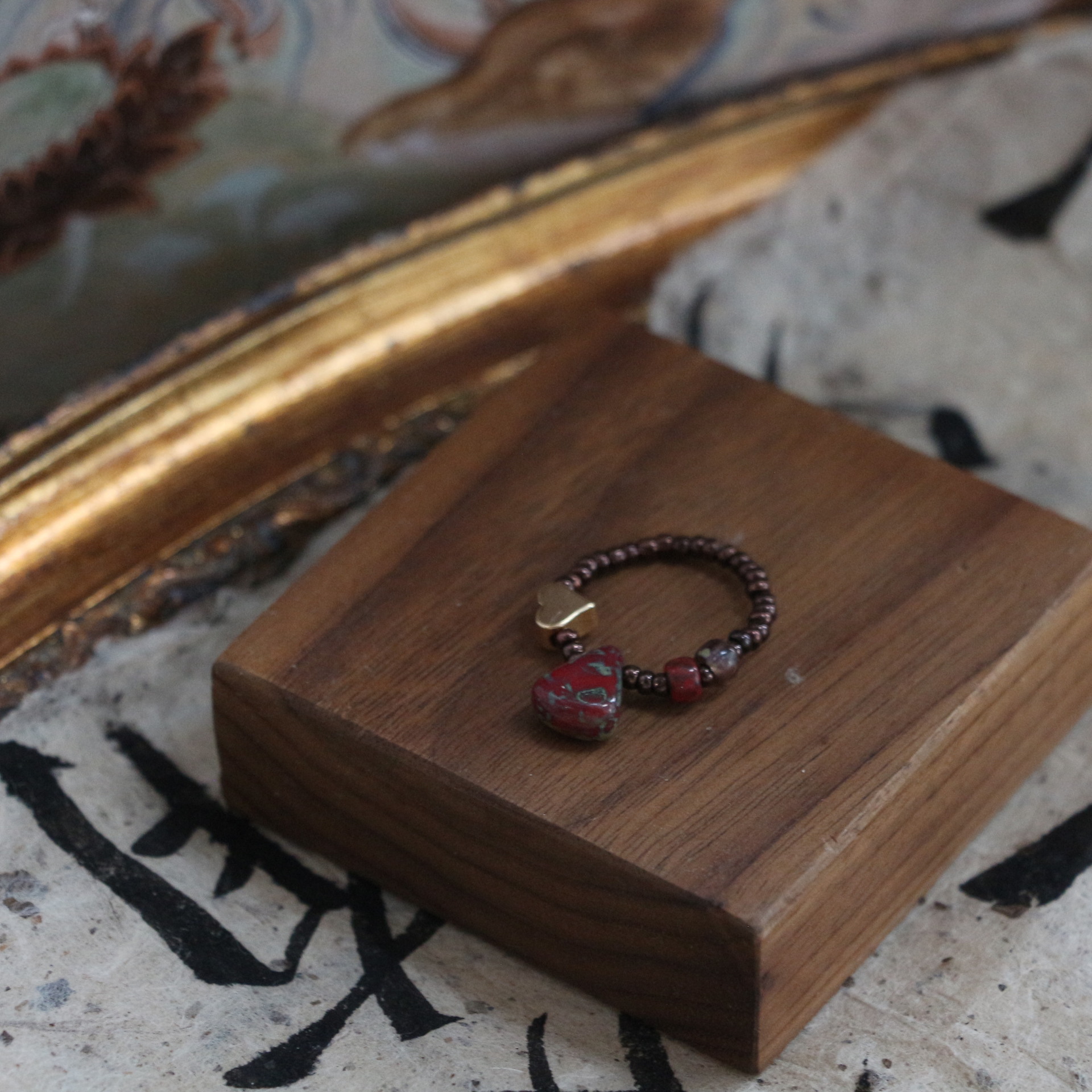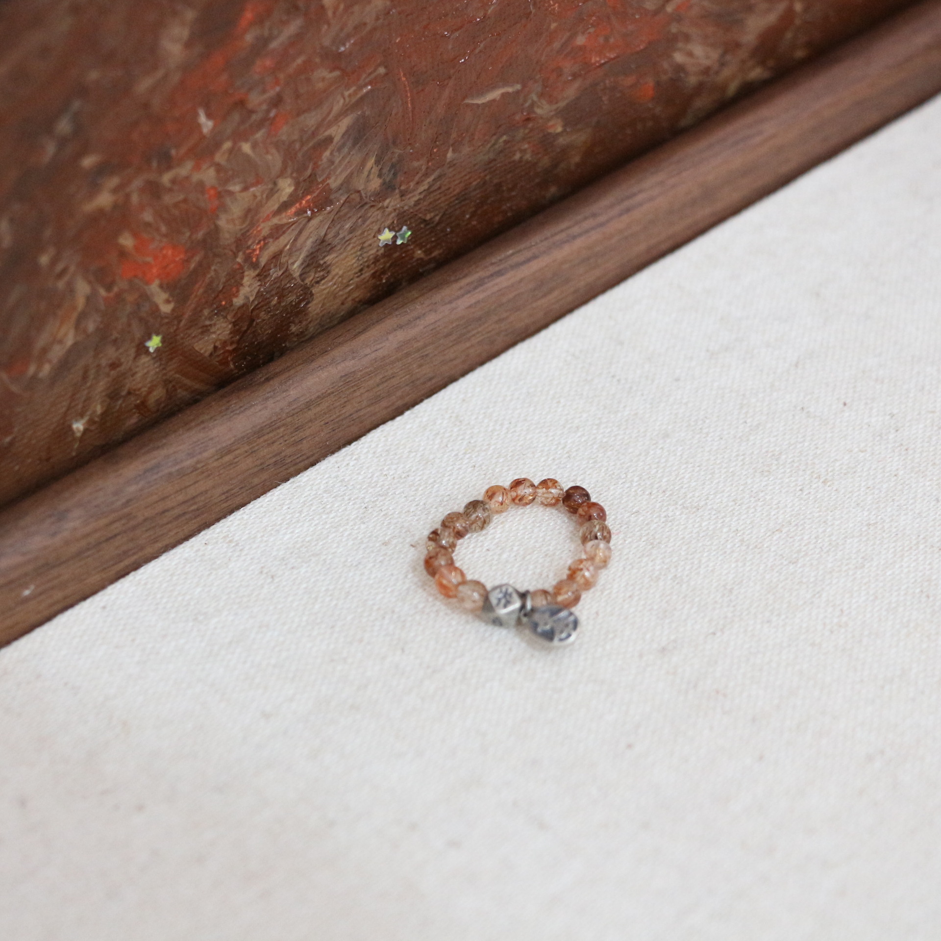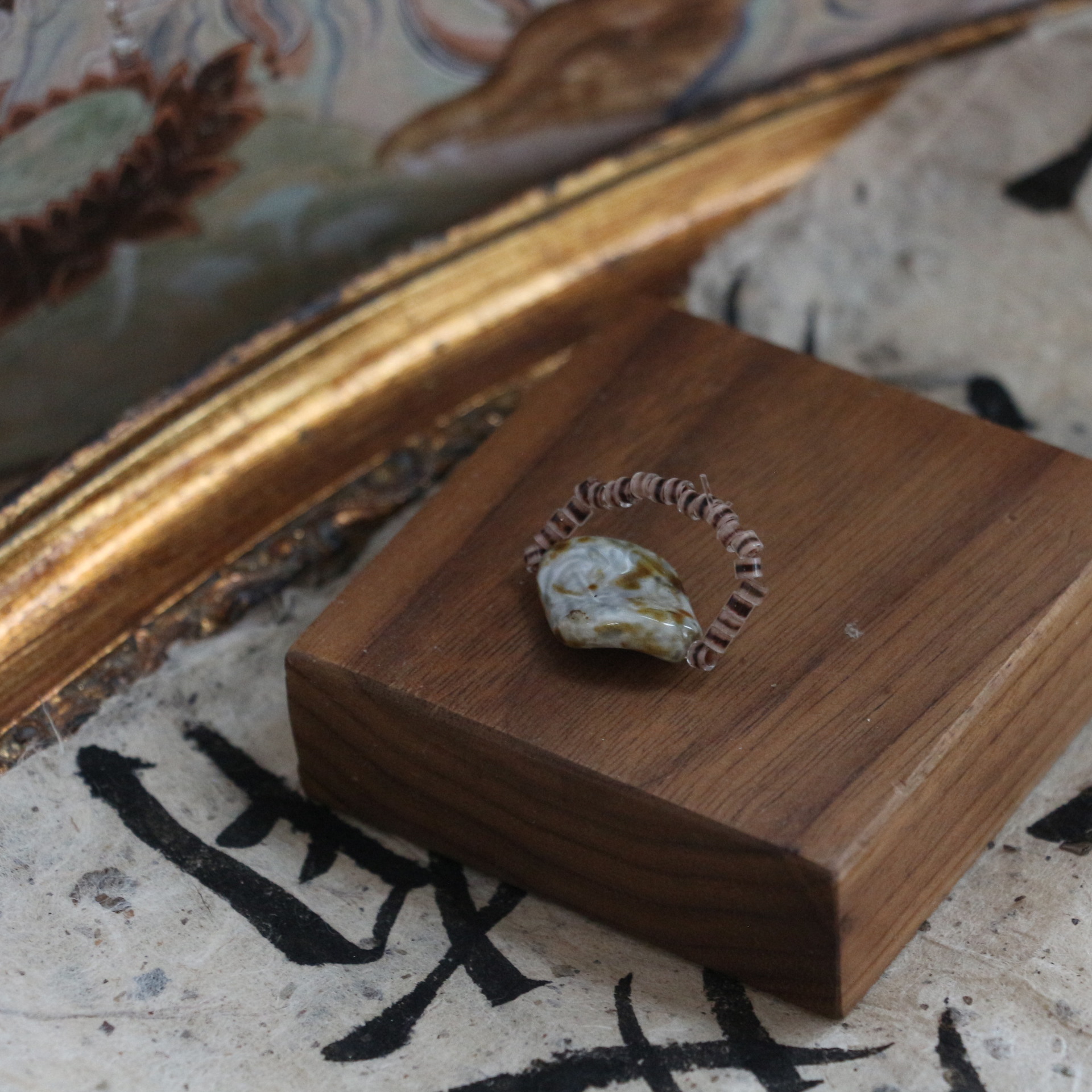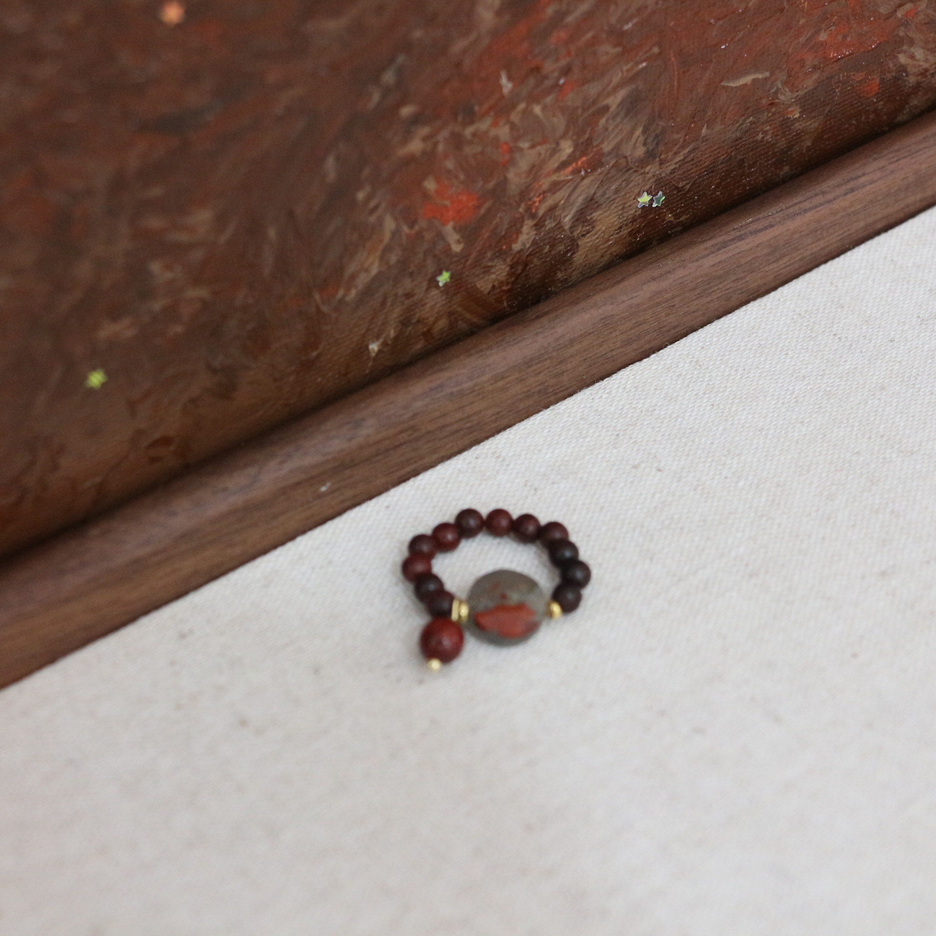 Mahogany oil painting stone ring