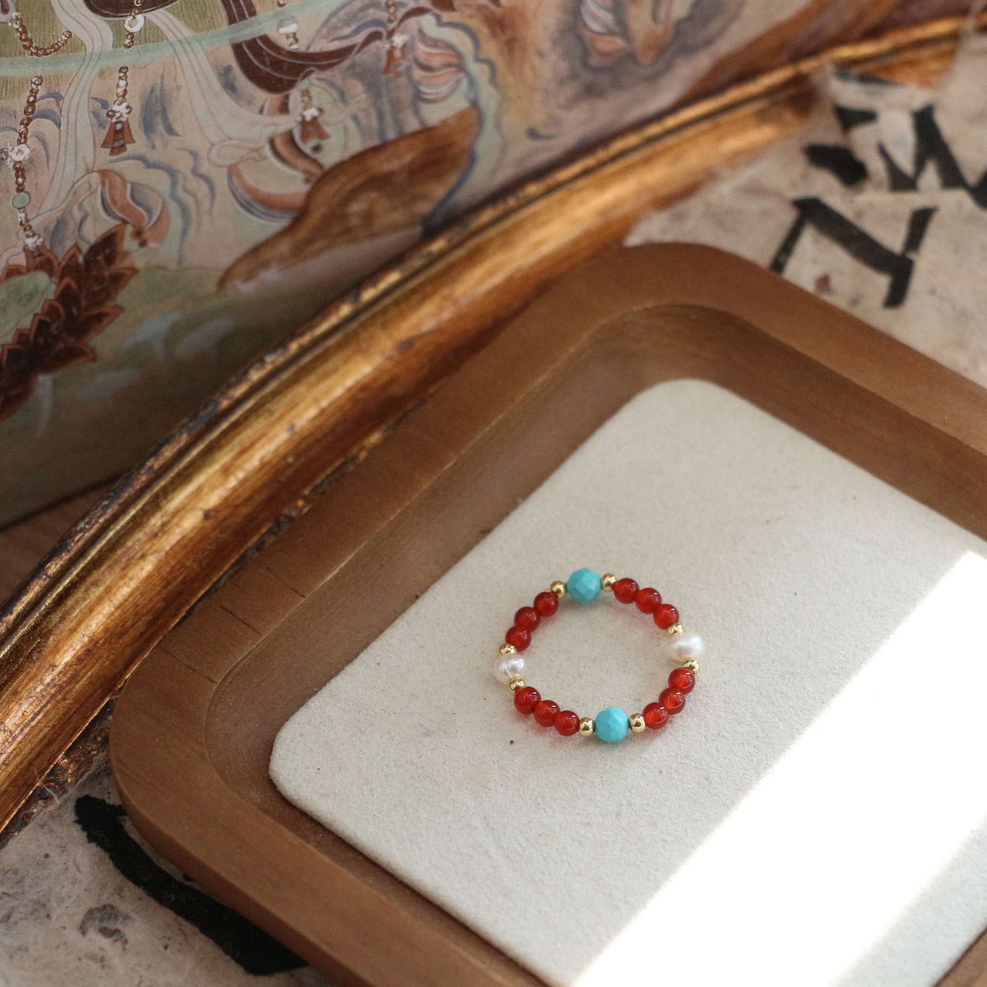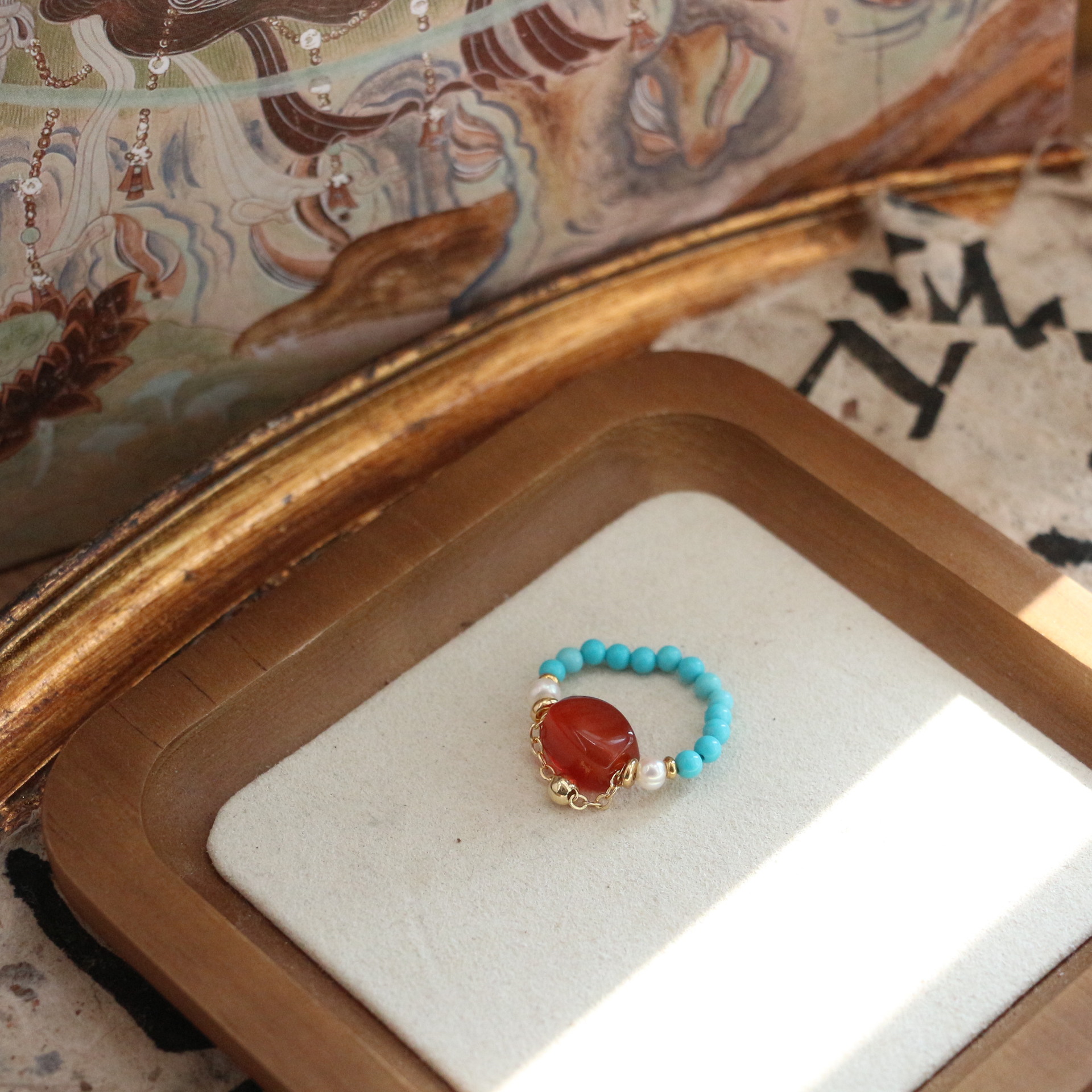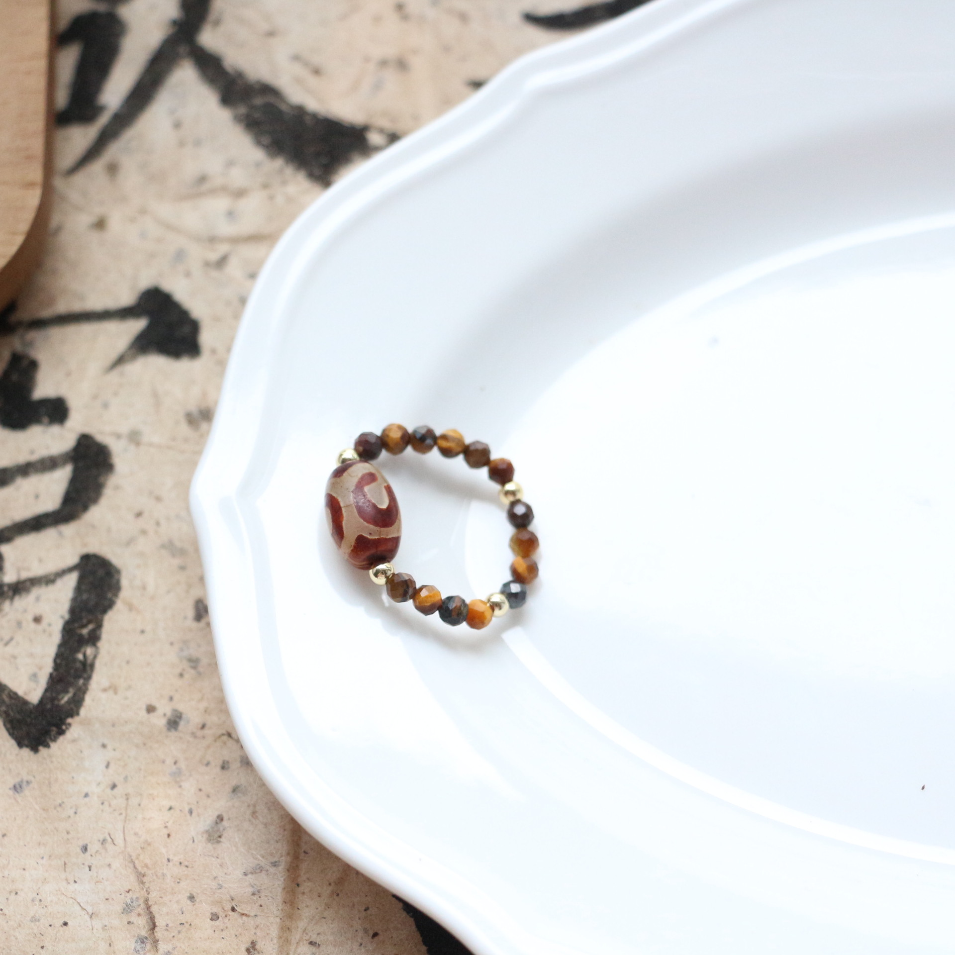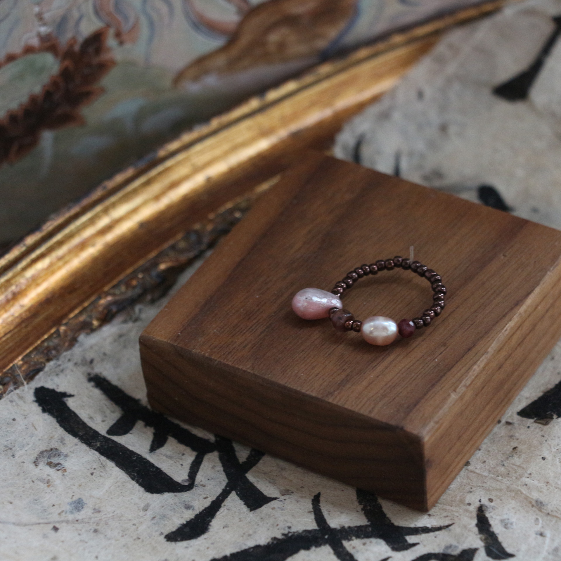 Mahogany oil painting stone ring
