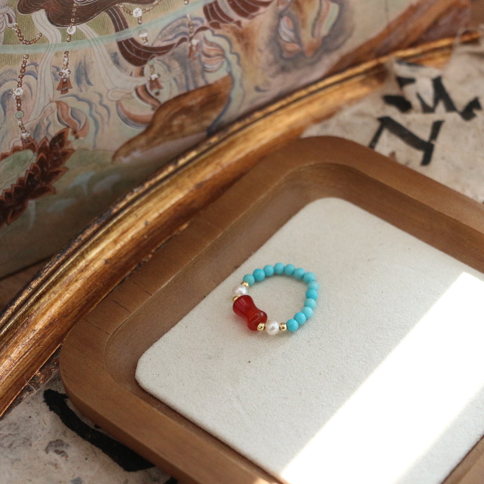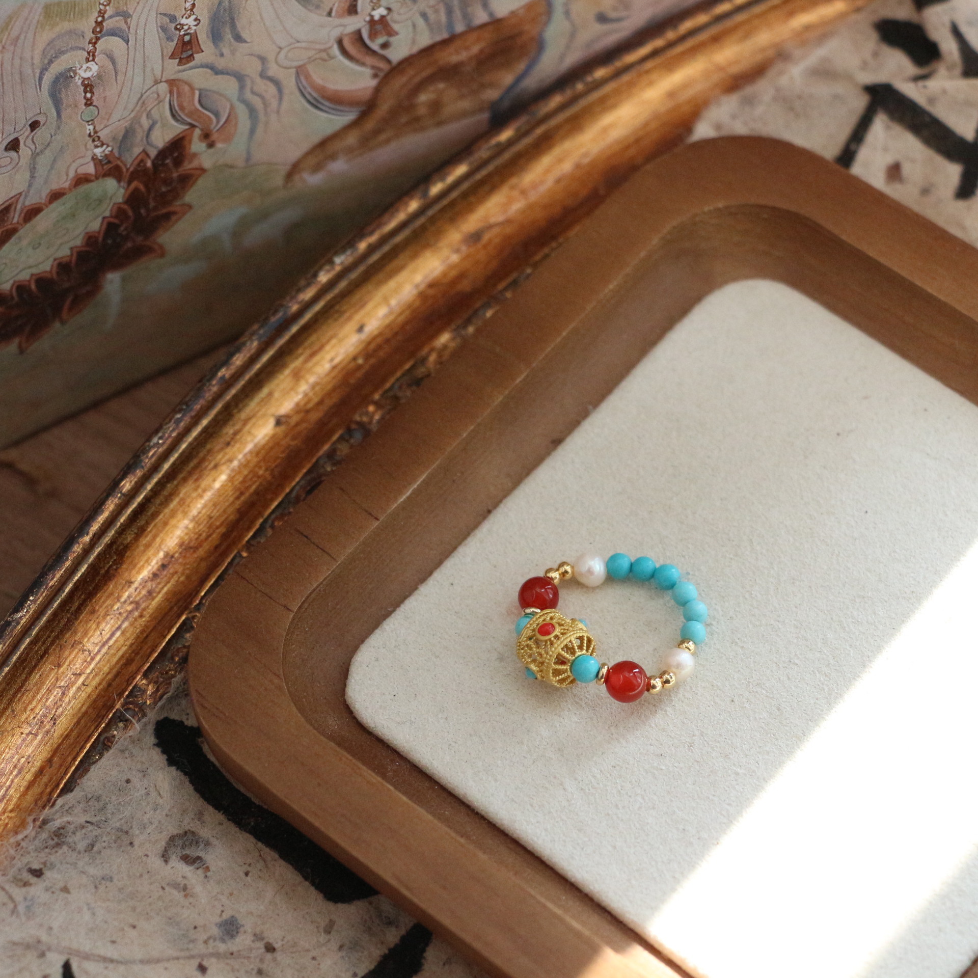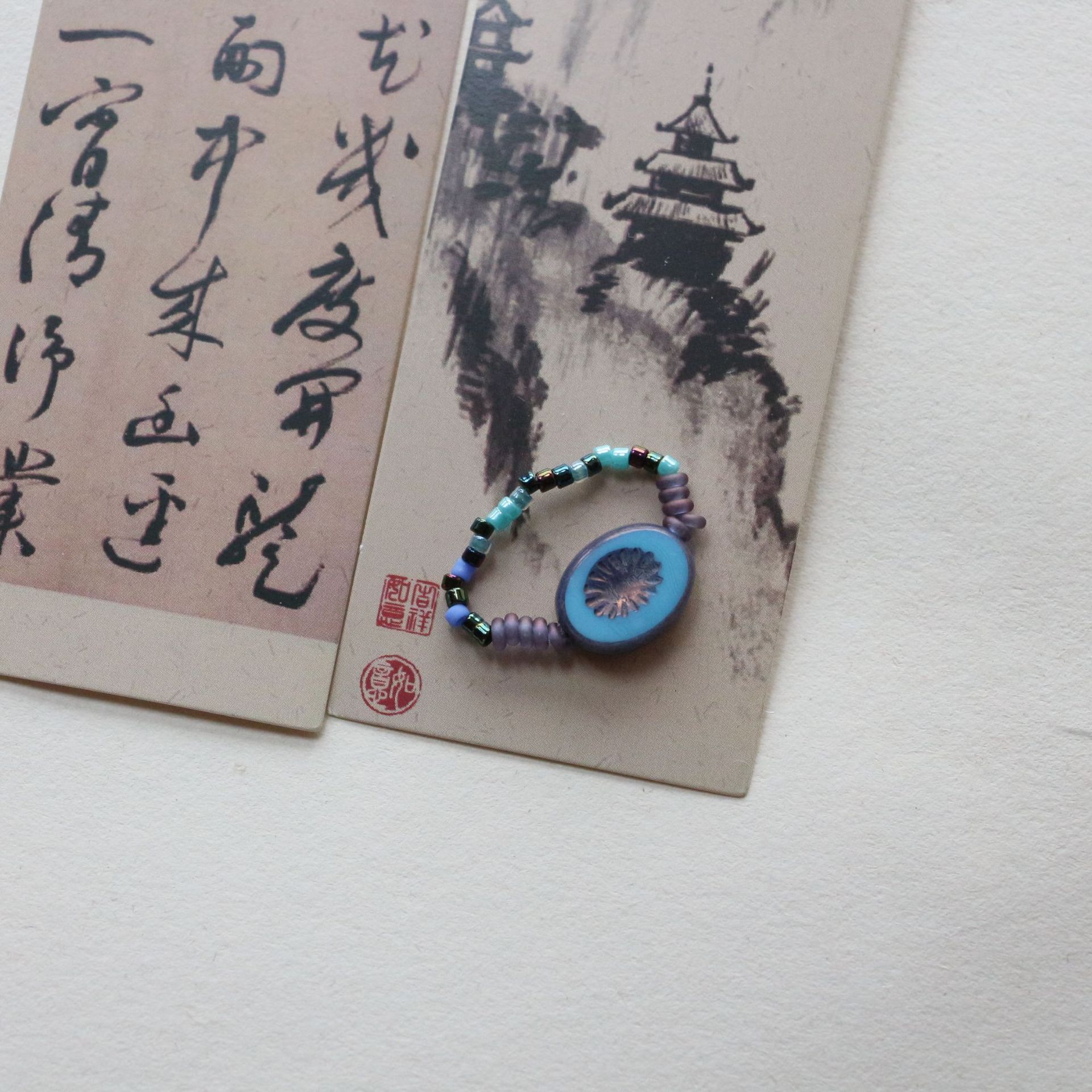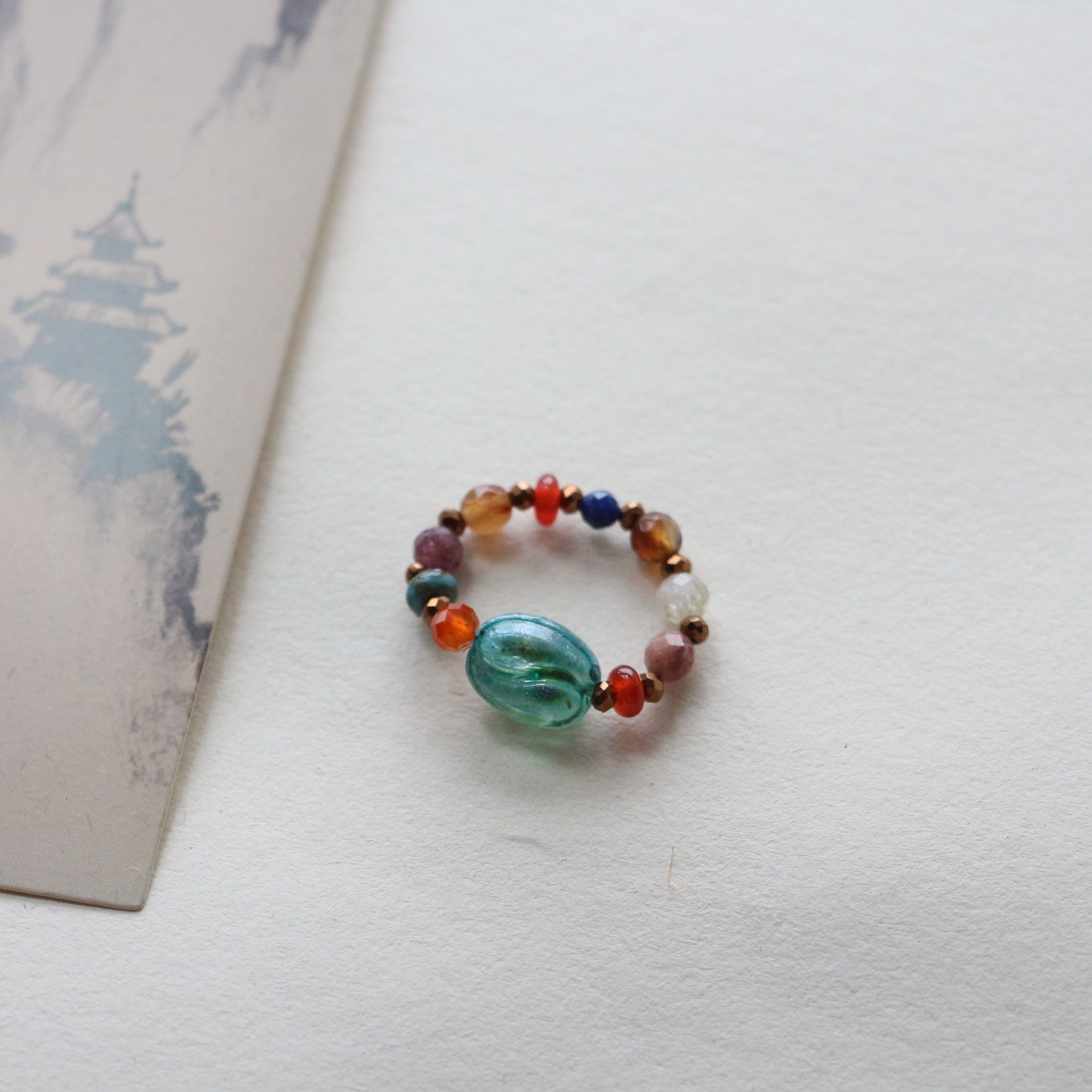 New national tide national style turquoise agate ring women's niche personality light luxury Joker ring live wholesale supply