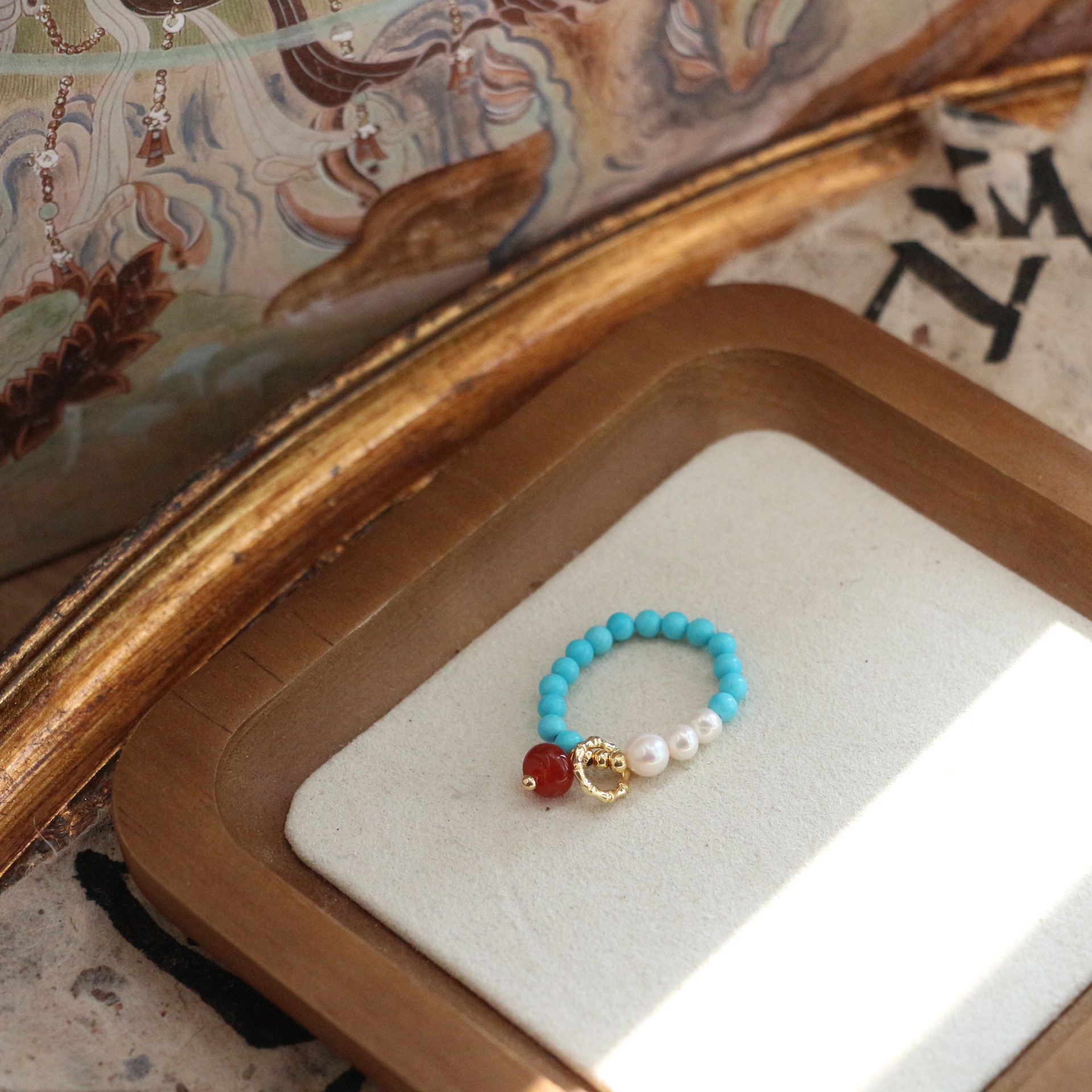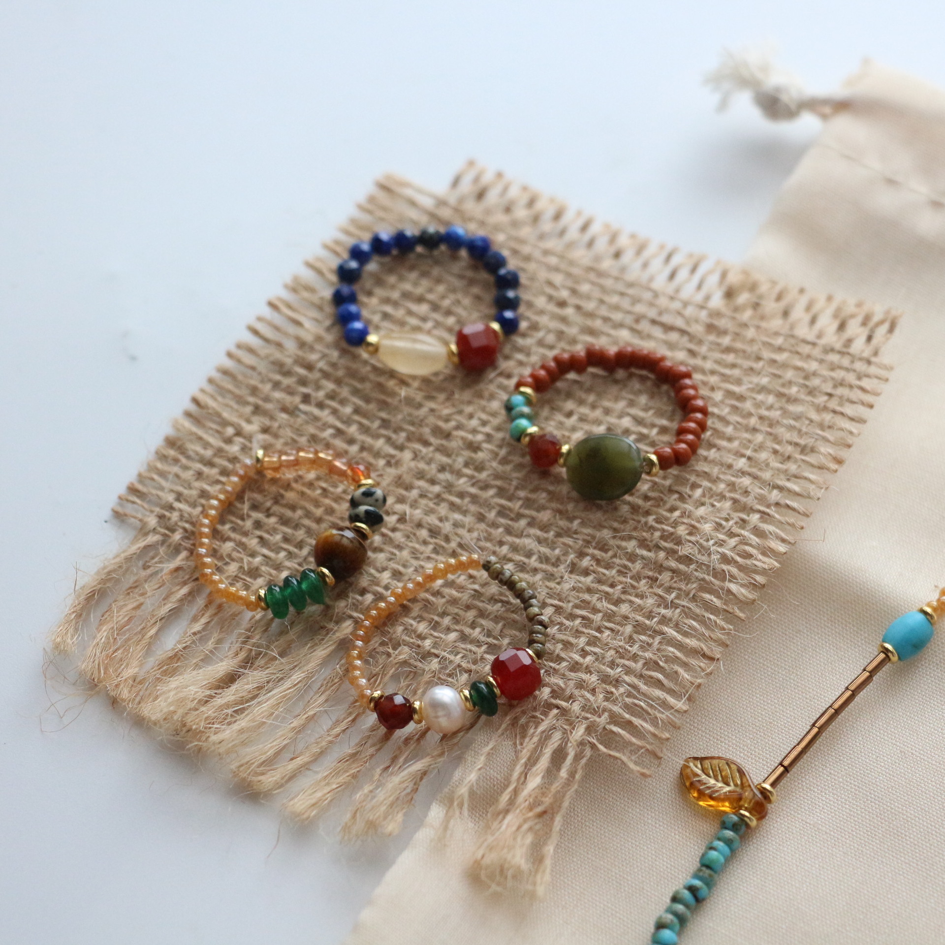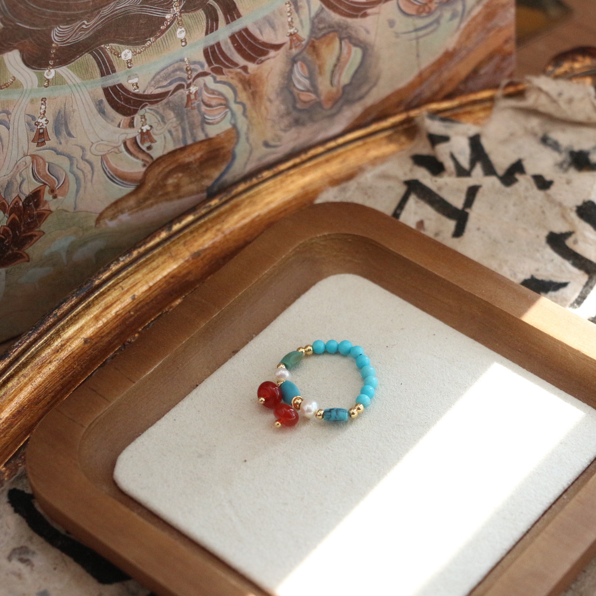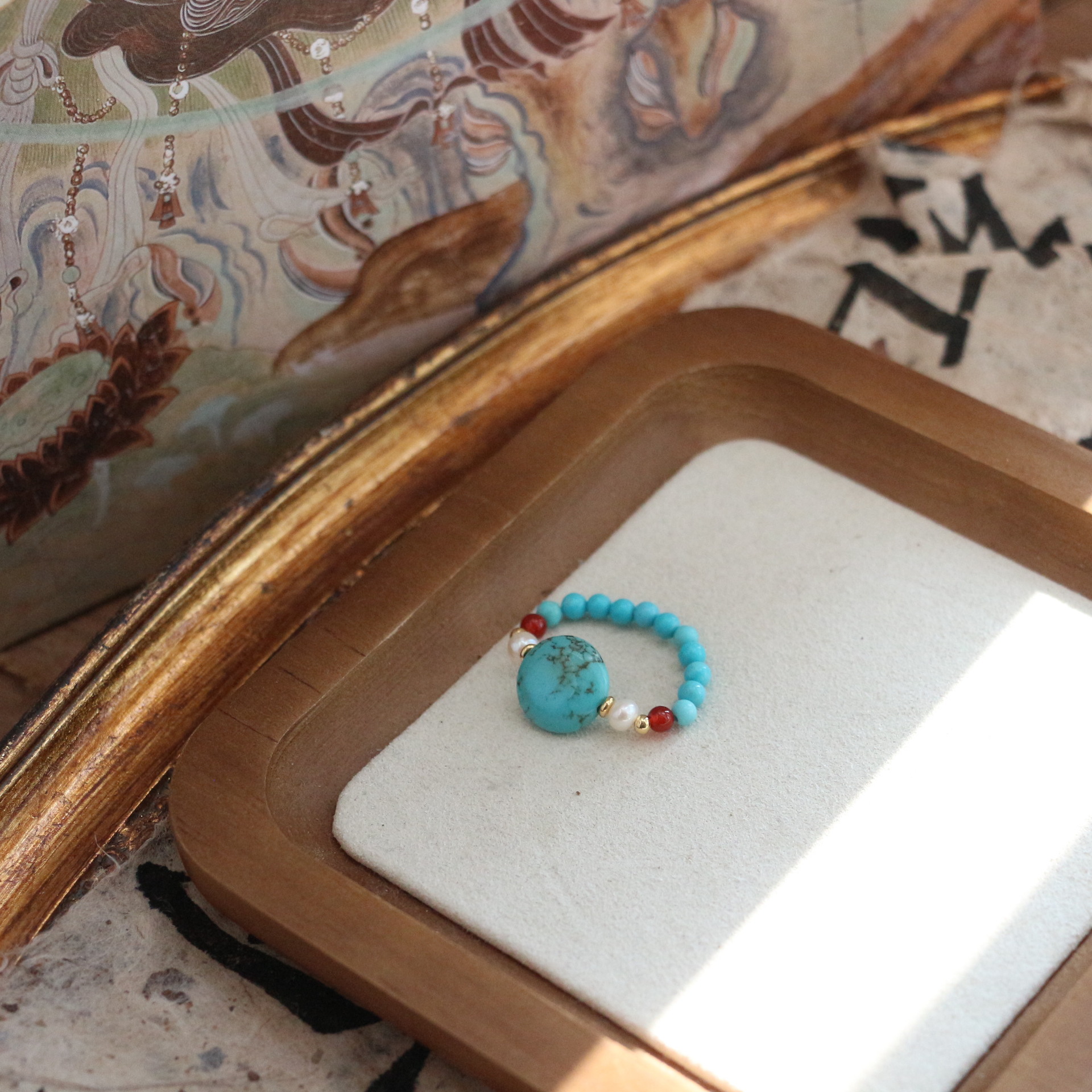 New national tide national style turquoise agate ring women's niche personality light luxury Joker ring live wholesale supply