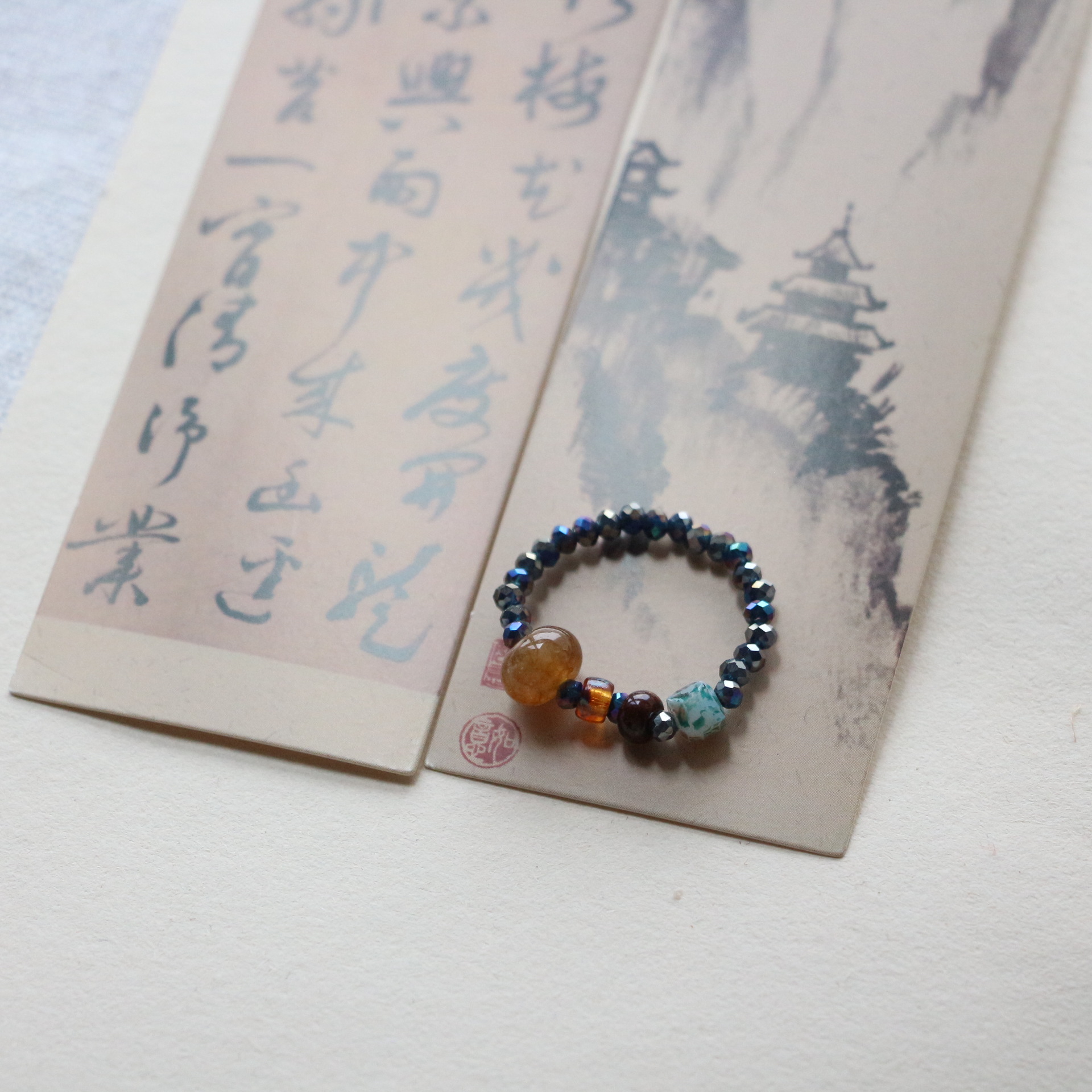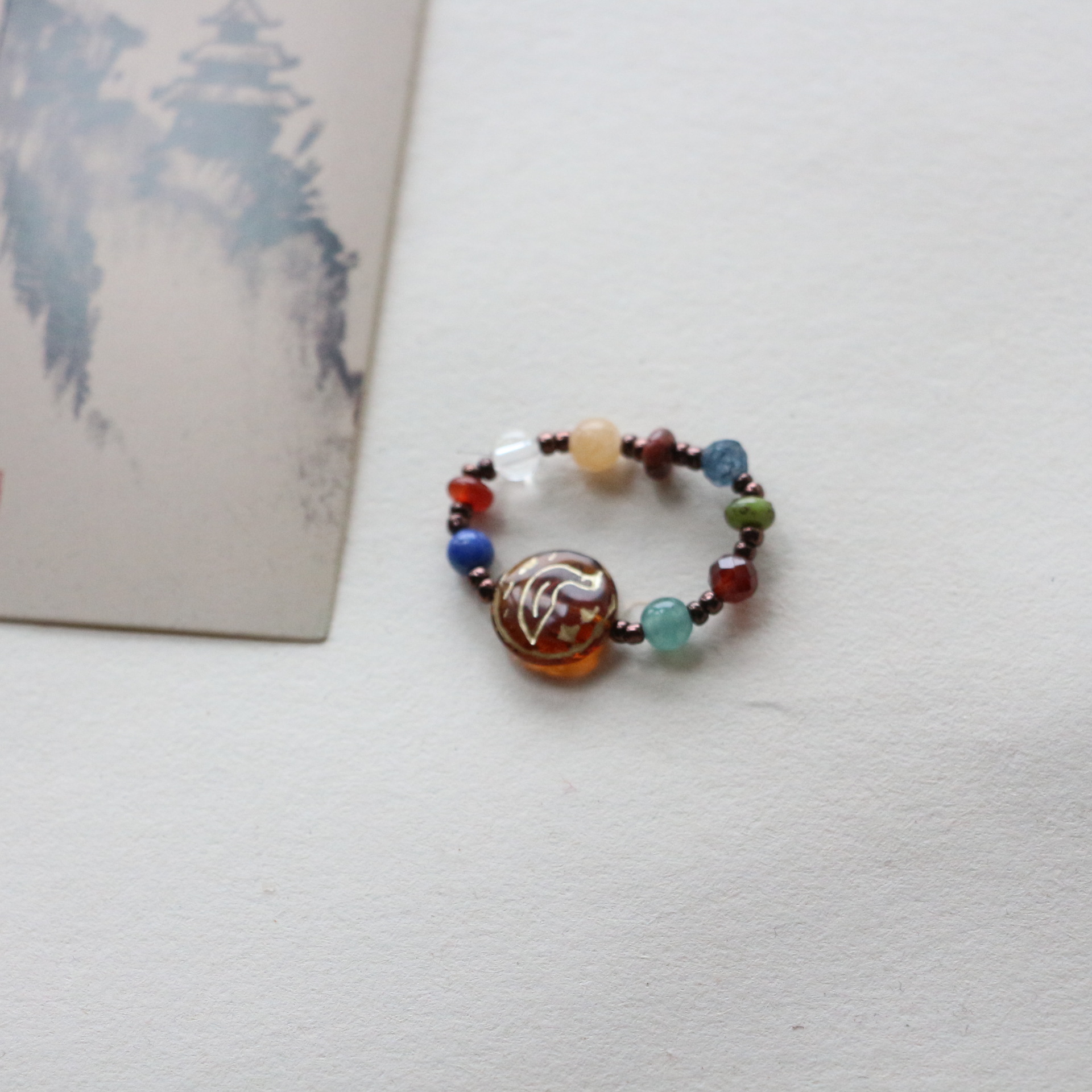 Color: Mahogany oil painting stone ring
