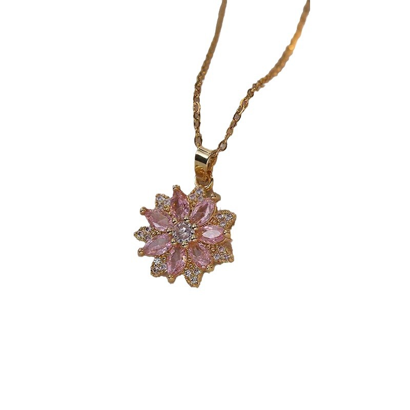 Necklace Female Cyber Celebrity Daisy [Titanium Steel] Zircon Flower Niche Light Luxury New Style Design Sense Pendant Elegant Titanium