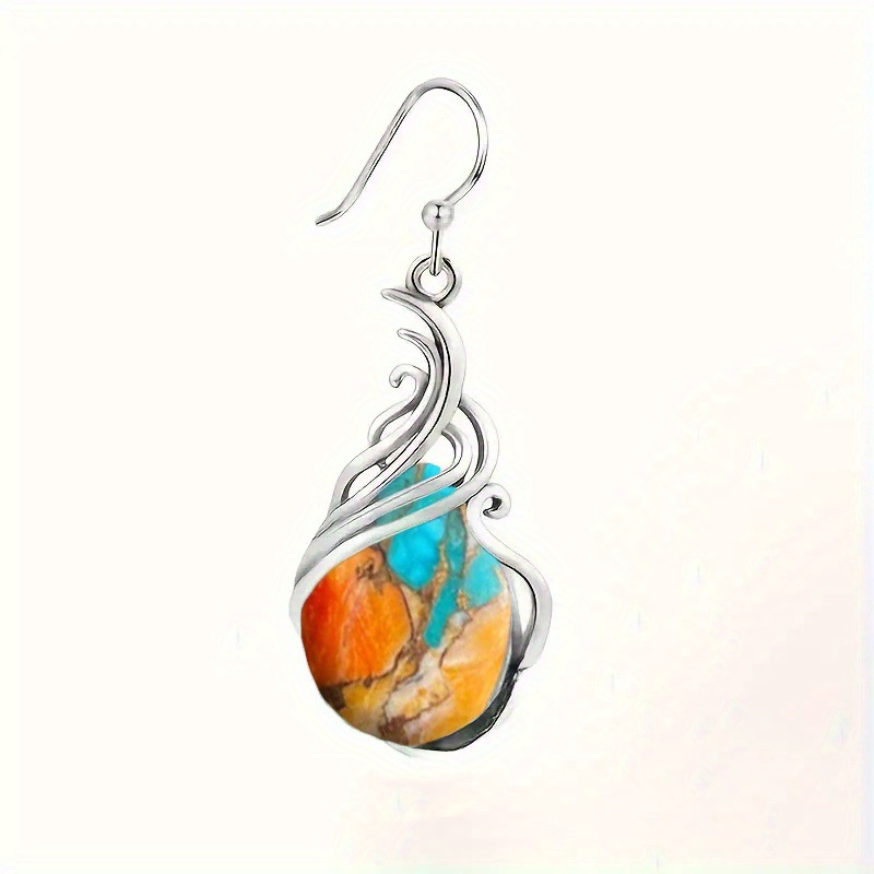 Temu Cross-Border Popular Retro Bohemian Style Colorful Pattern Resin Pendant Earrings Manufacturer Wholesale