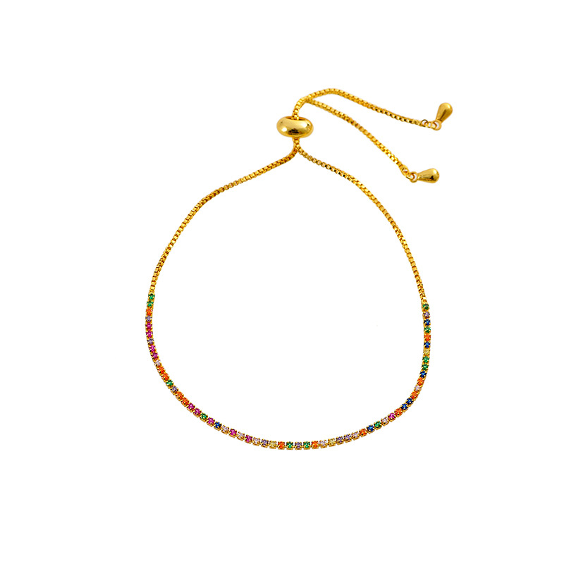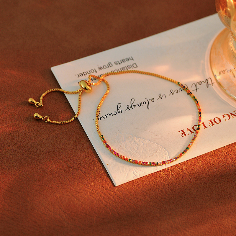 Light Luxury Niche Popular Colorful Zircon Bracelet Women's Advanced Design Sense Pull-out Hand Jewelry Internet Celebrity Same Style Bracelet