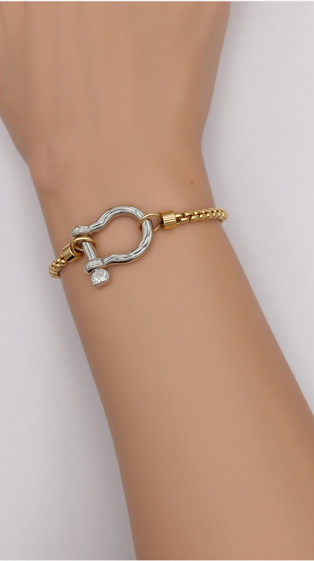 Color: Xl-1068-16 women's [steel color bracelet with gold buckle] 19cm