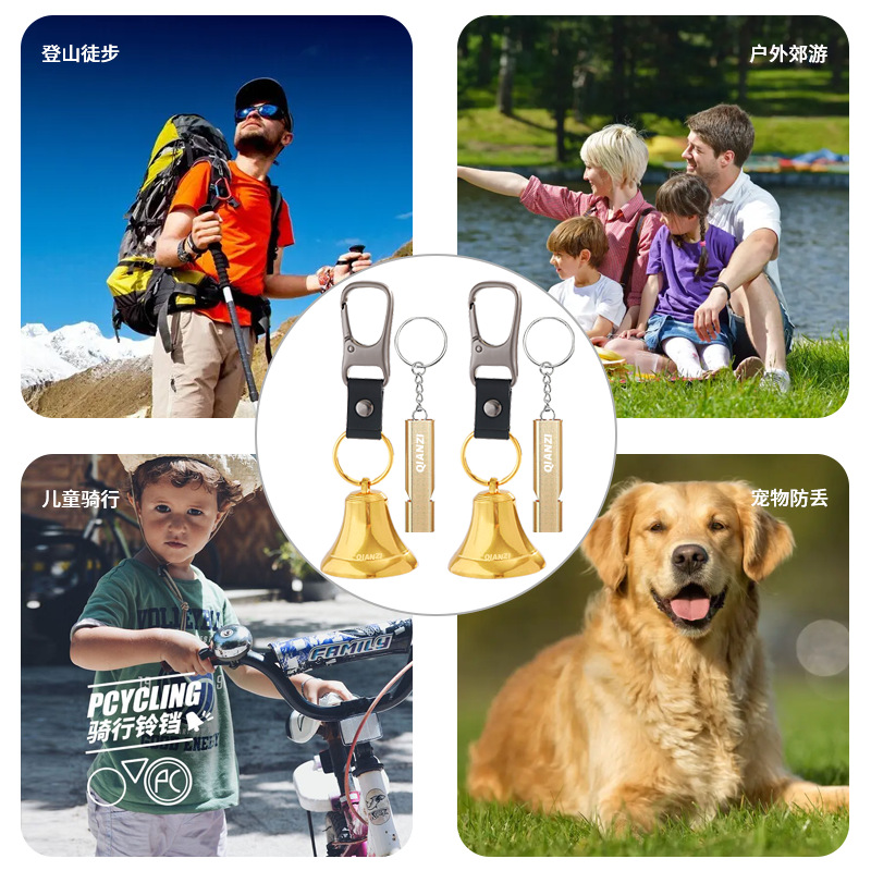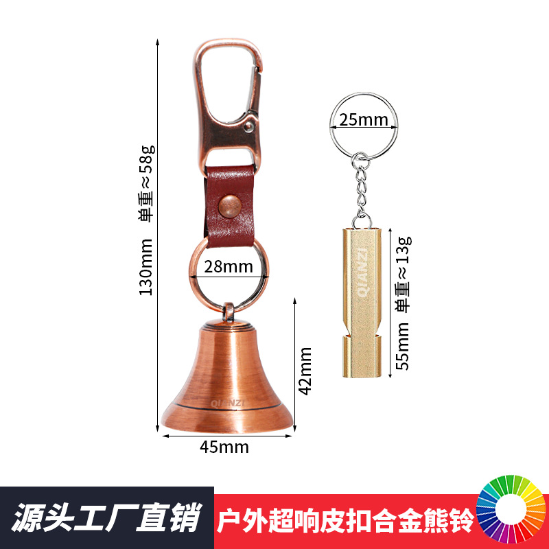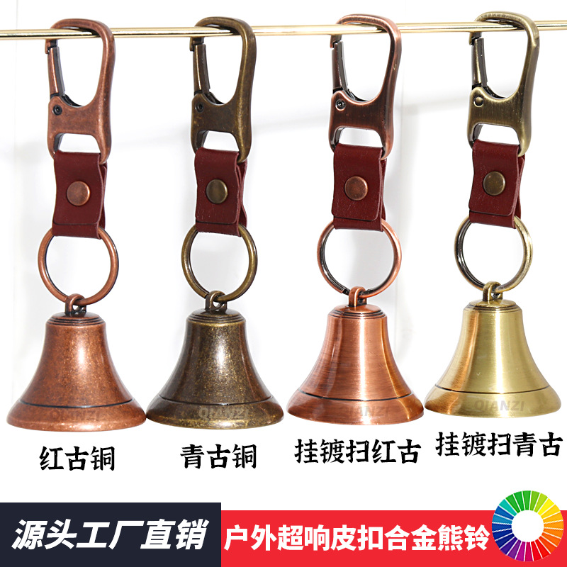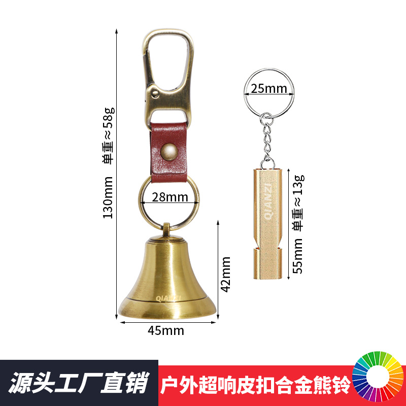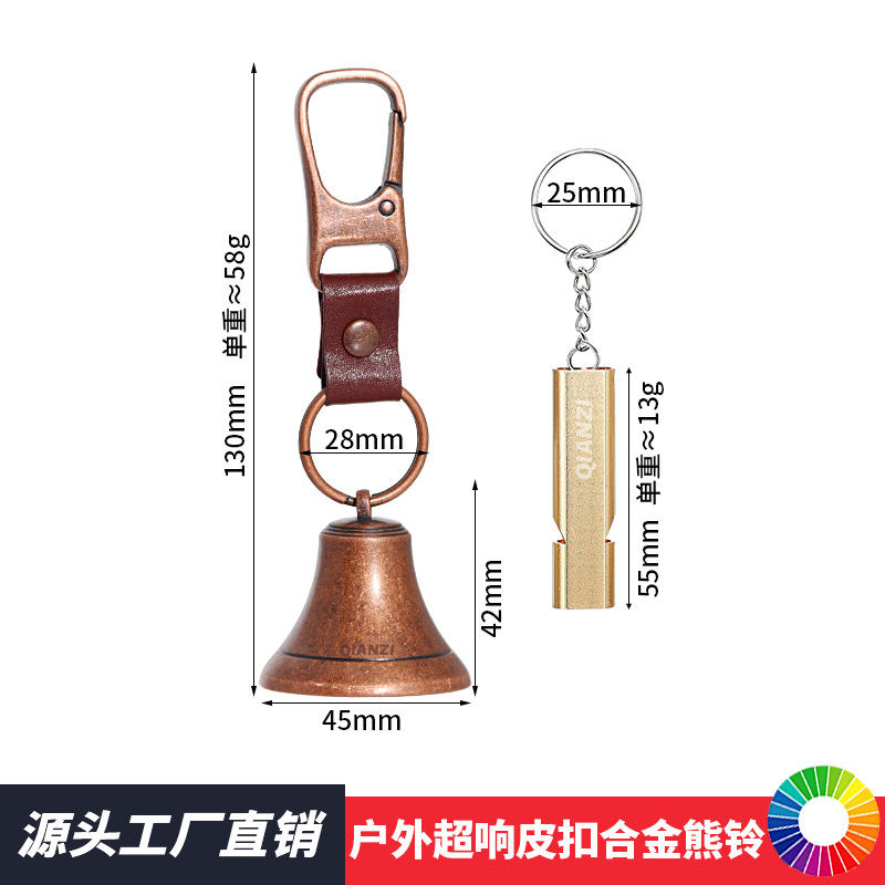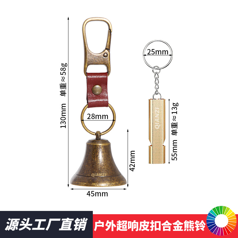 01: Leather buckle bear bell, outdoor anti-bear bell, children's school bag hanging chain bell, hiking pendant bell, alloy bear bell