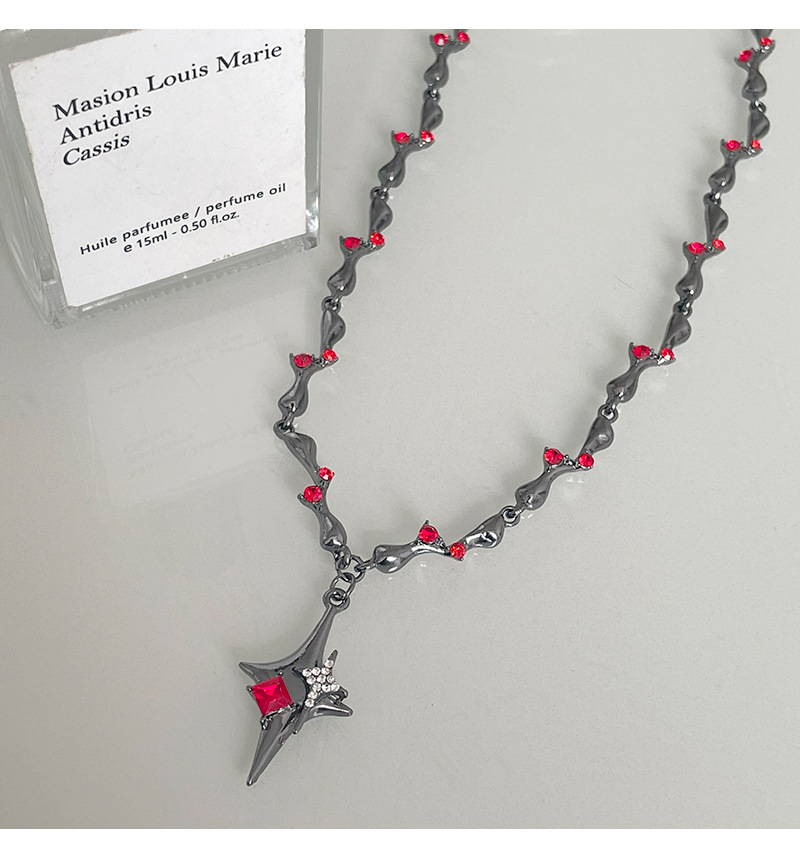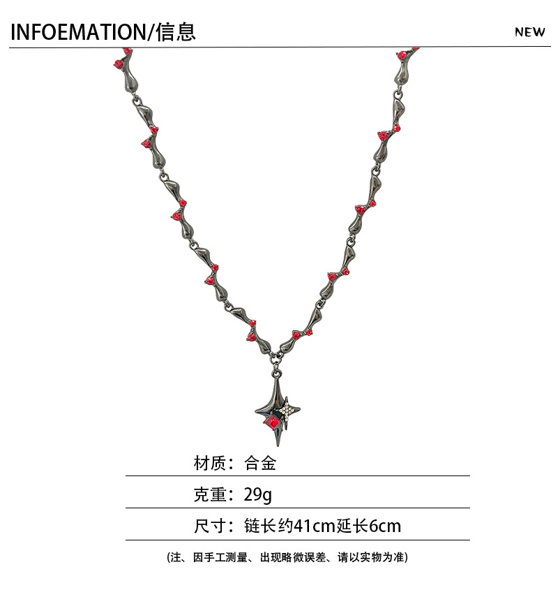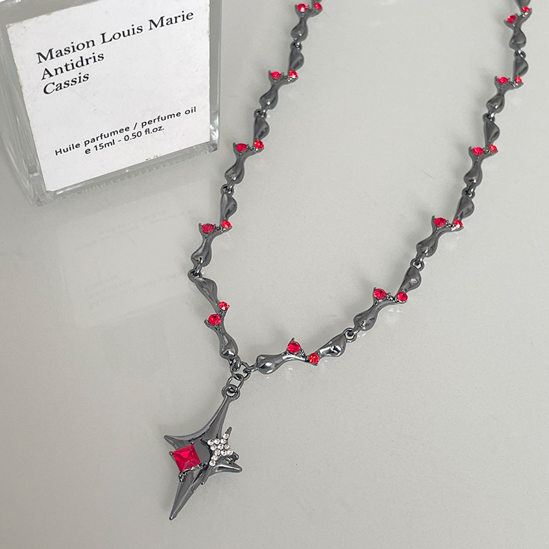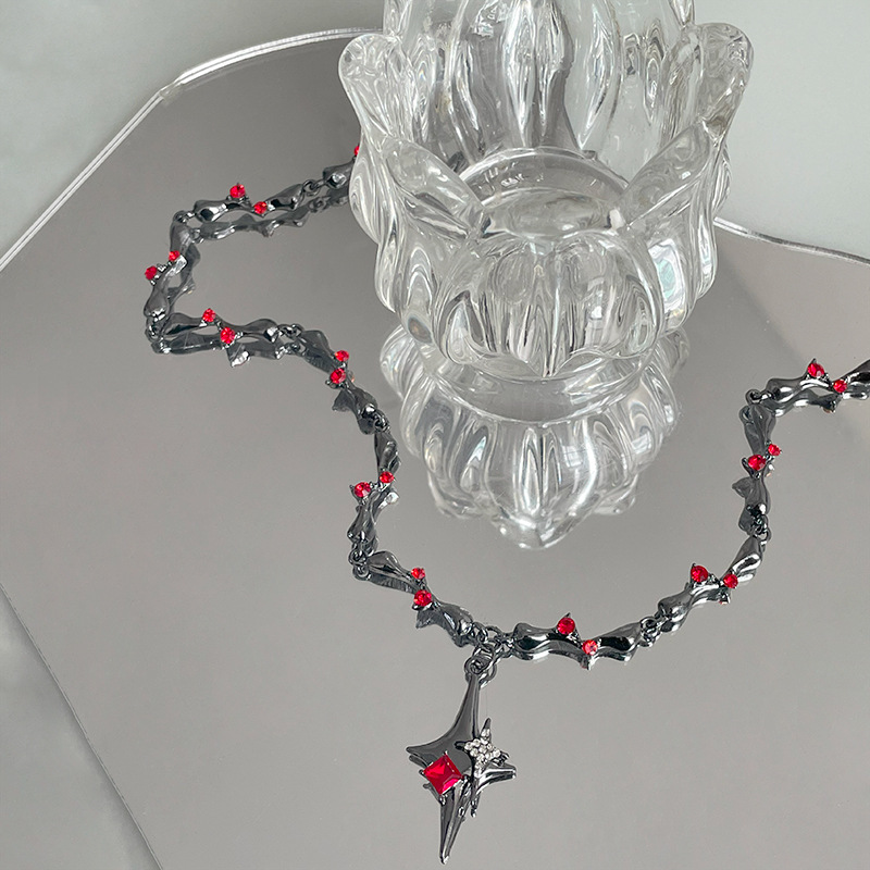 Gun Black Thorns Stitching Red Diamond Cross Necklace Female Niche Light Luxury Y2K Spice Girls Subculture European and American Clavicle Chain
