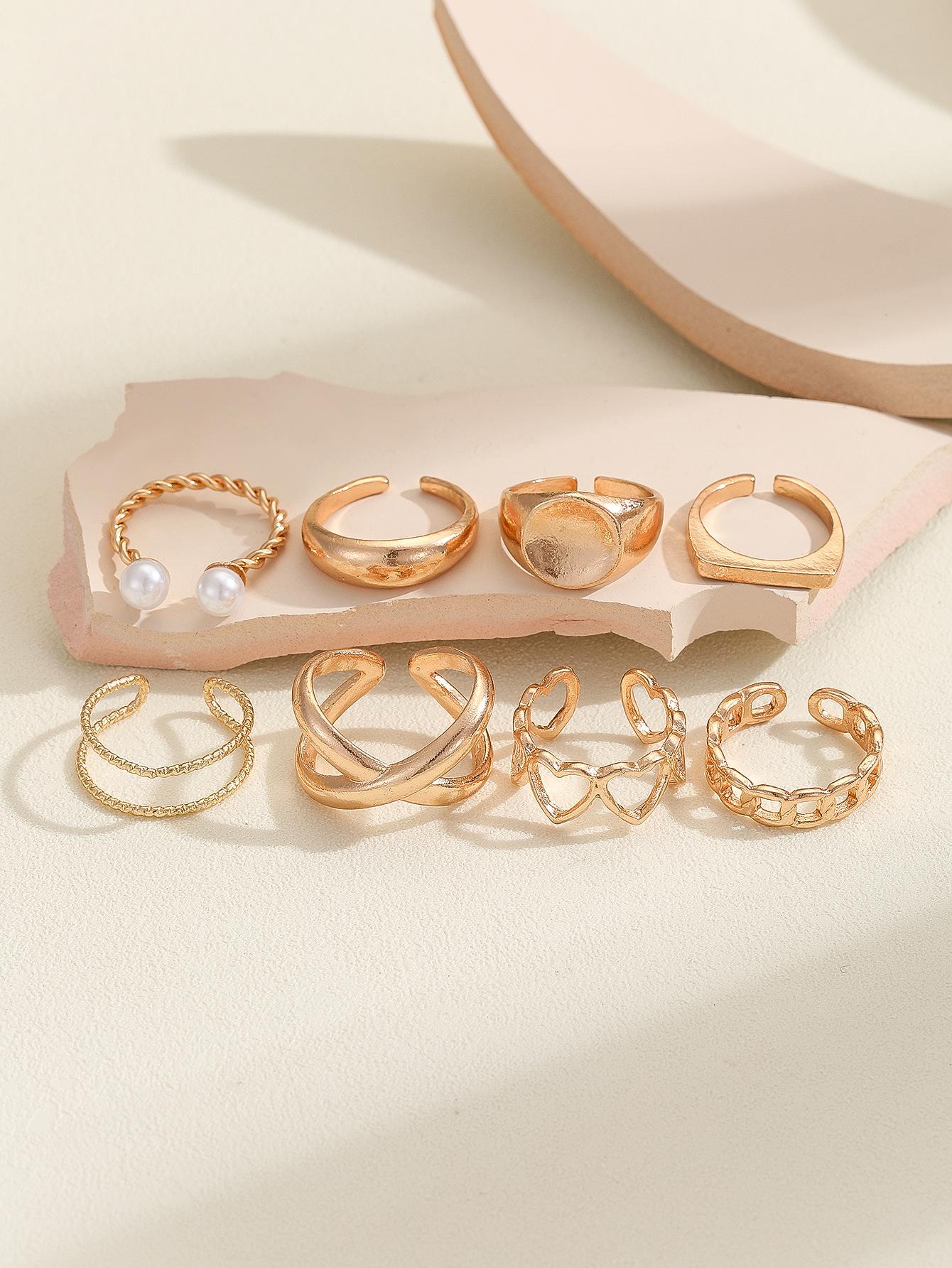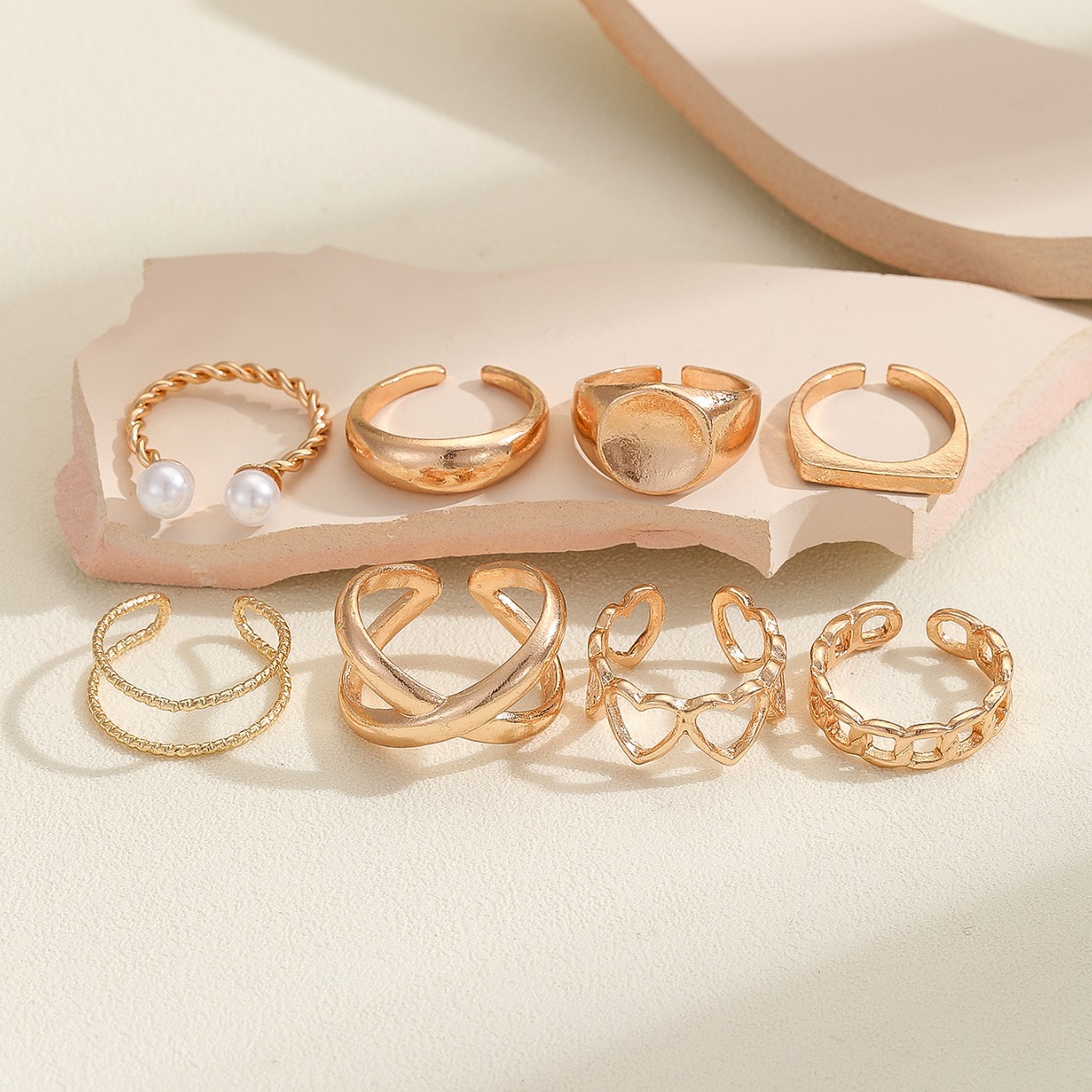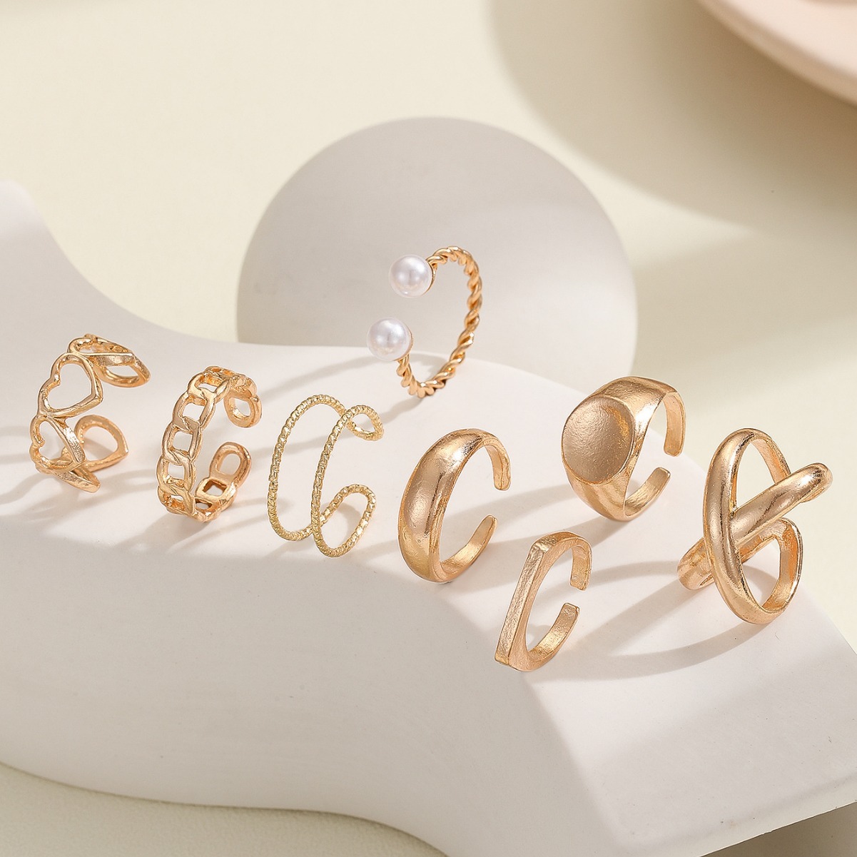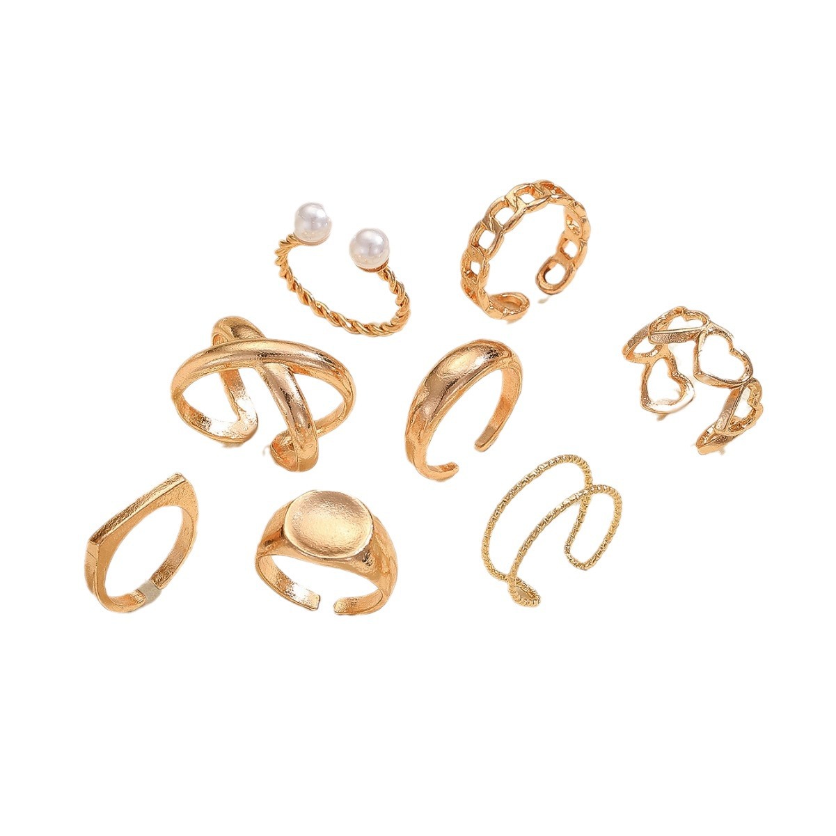 European and American Cross-Border Rings New Fashion Simple Alloy Electroplated Fork Hollow Geometric Couple Ring Set Wholesale