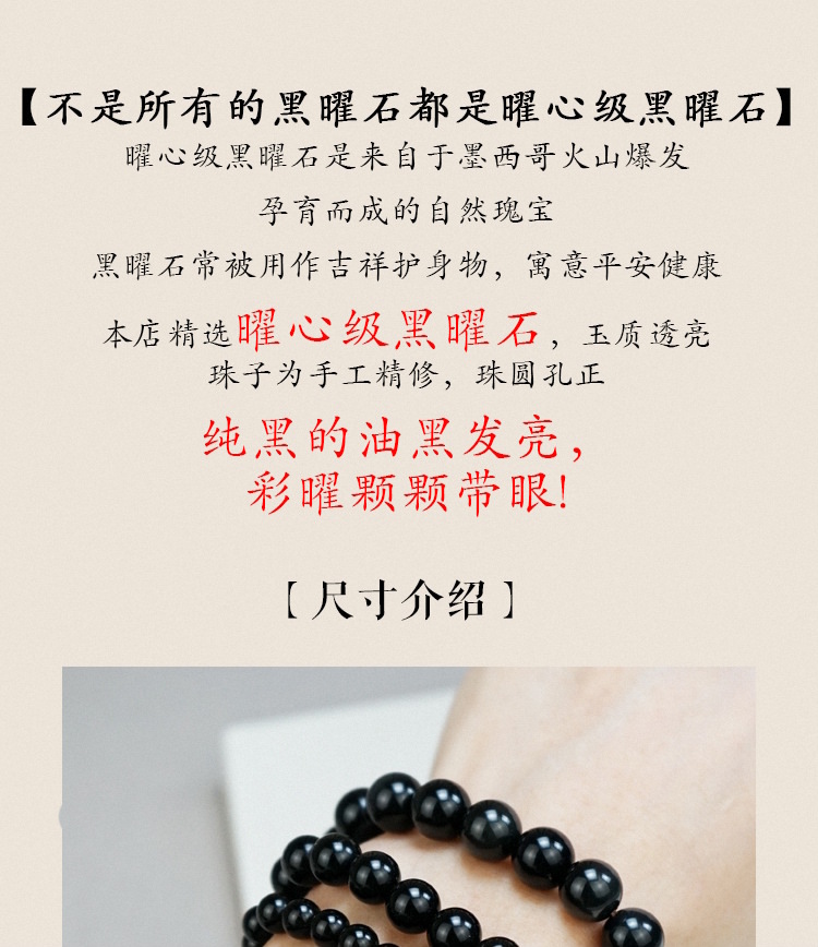 Natural Obsidian Slim Bracelet Women's Single Circle Birth Year Men's Transporter Bracelet Retro Niche Couple Bracelet