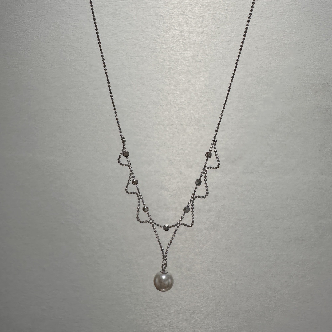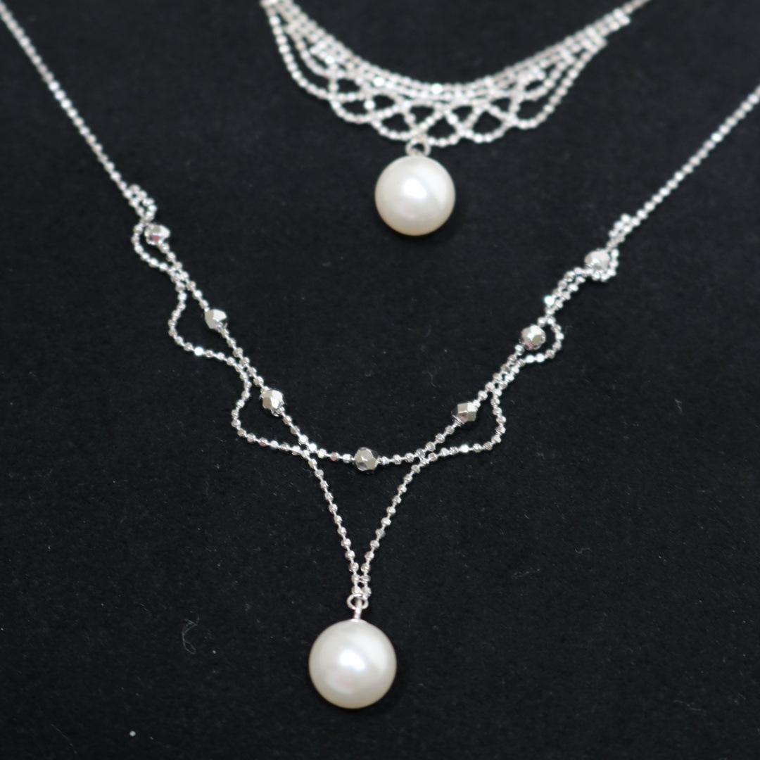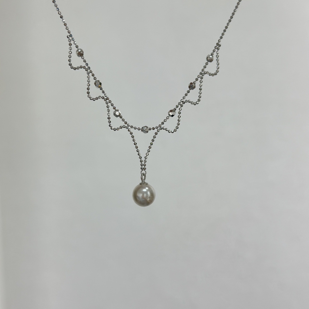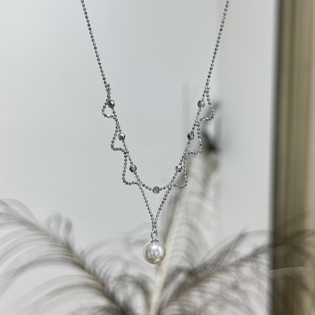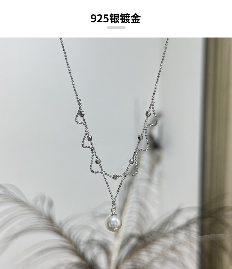 Designer Model [Italian Craftsmanship] 925 Silver Gold-Plated Seamless Welded Lace Dot Mesh Pocket Pearl Necklace