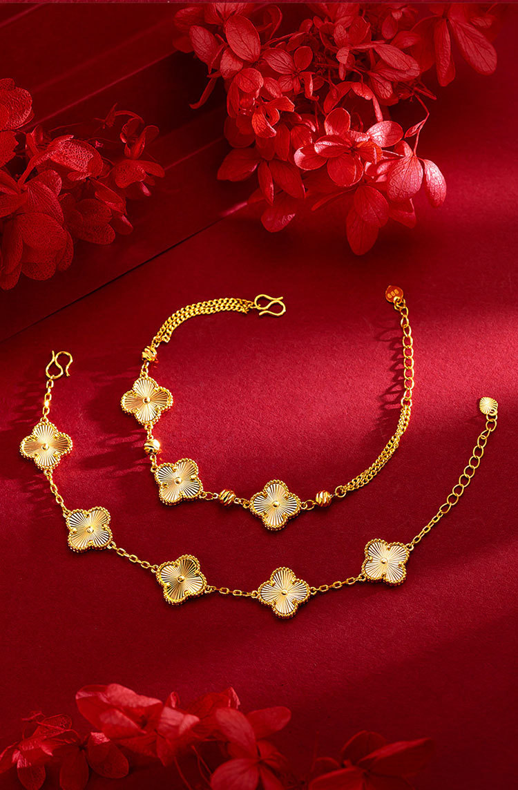 High-End Personalized Design Copper Gold-Plated Clover Silver Jewelry Store Same Style Jewelry Four-Leaf Clover Bracelet for Women
