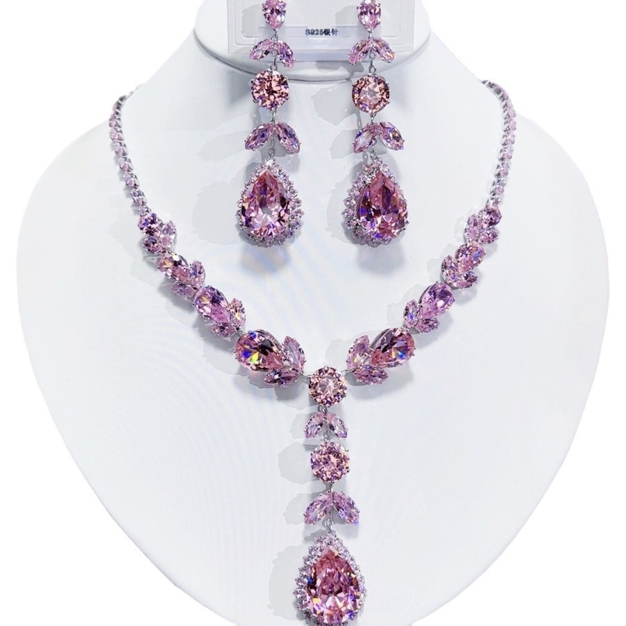 New European and American Style Fashionable Zircon Luxury Heavy Industry Necklace and Earrings Set Large Pineapple Two-Piece Set