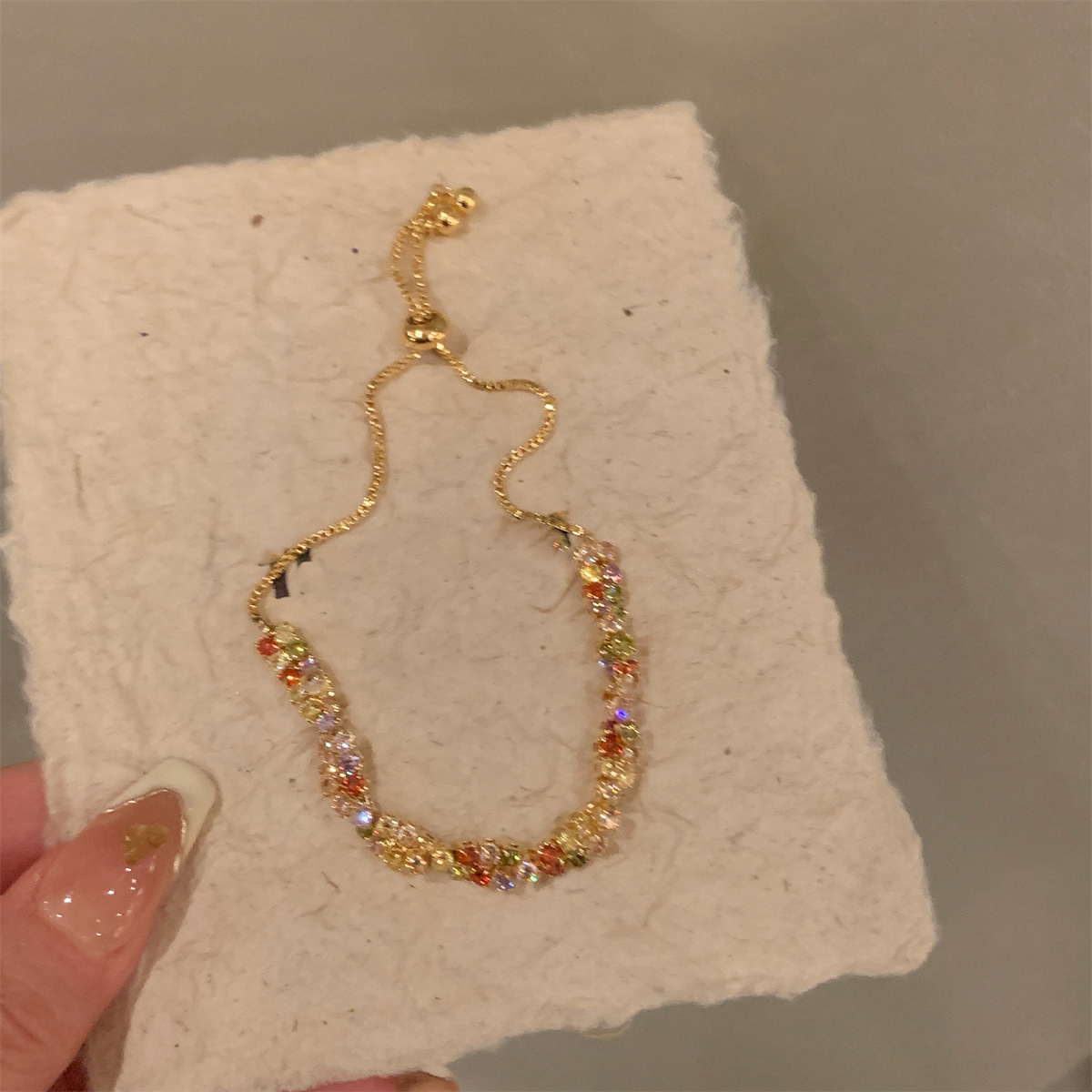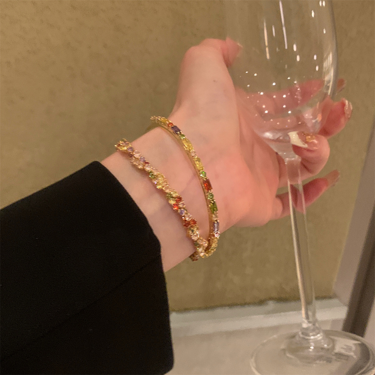 Colorful Dopamine Diamond Geometric Bracelet Simple Fashion Design Sense Bracelet Ins Style Exquisite High-end Sense Bracelet