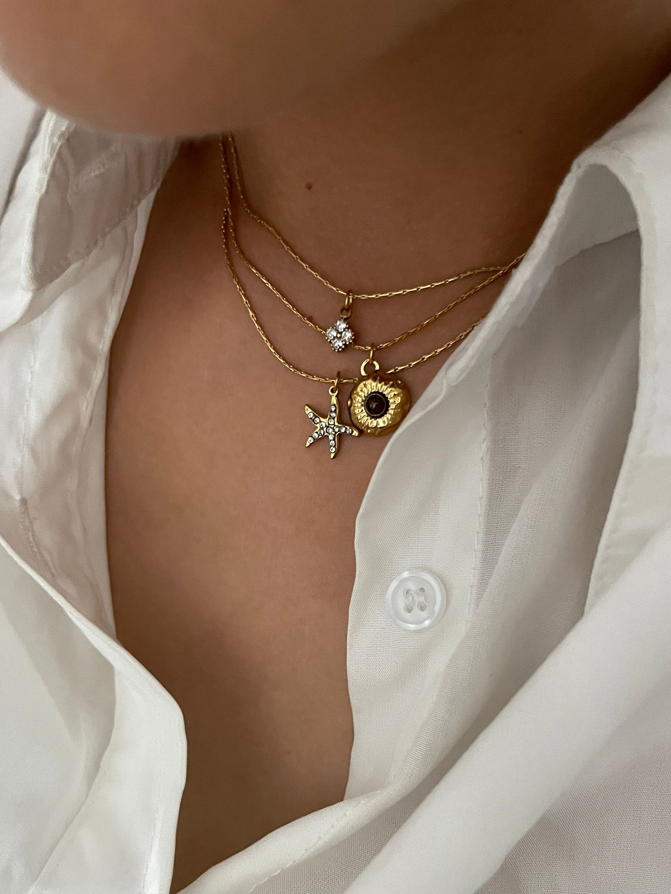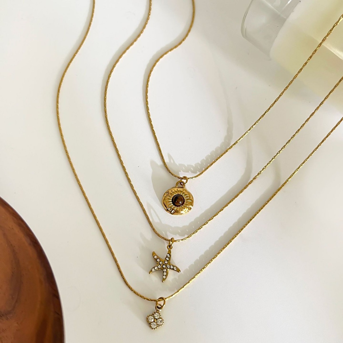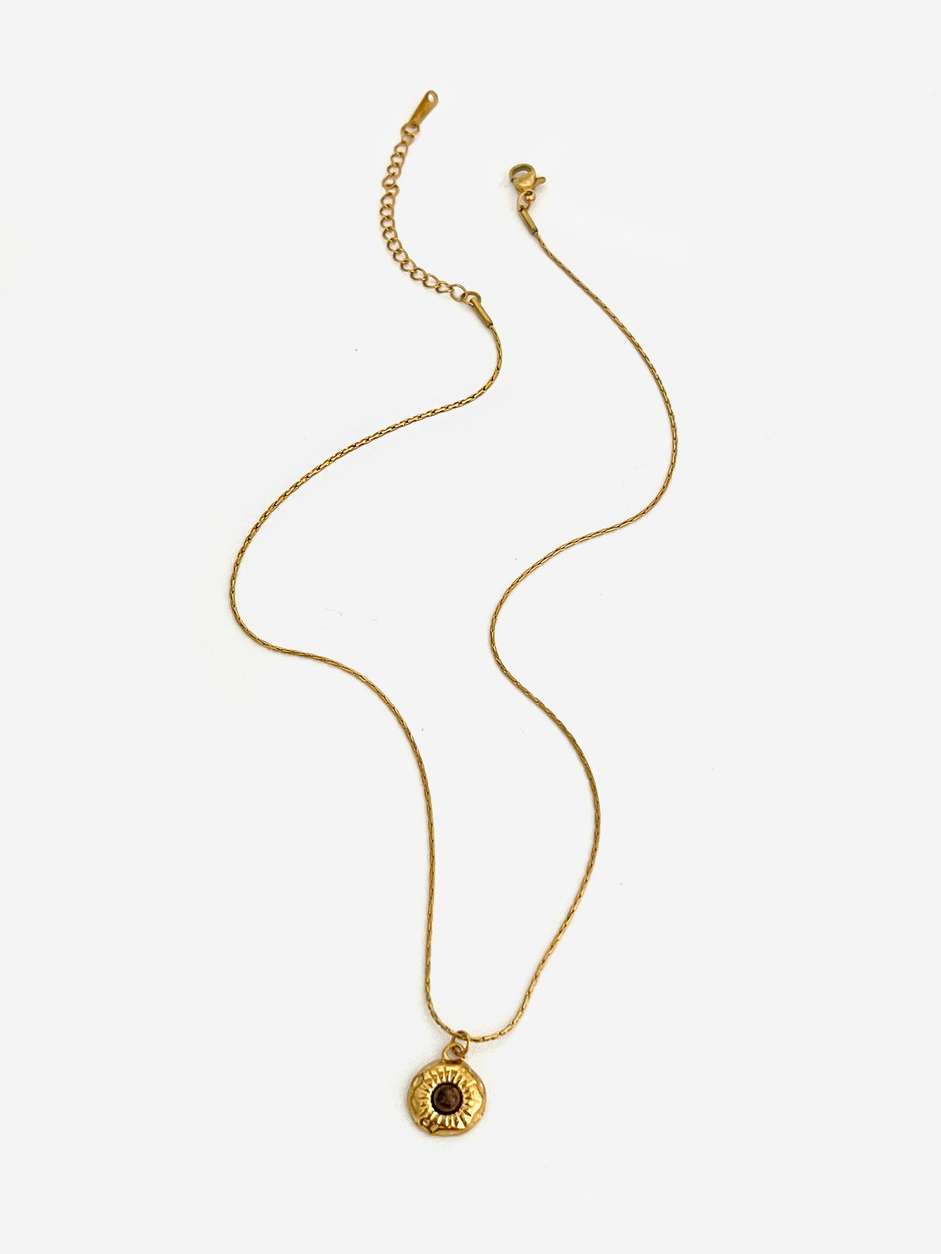 New stainless steel inlaid artificial zircon tiger eye stone small personality ladies Joker necklace jewelry