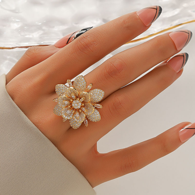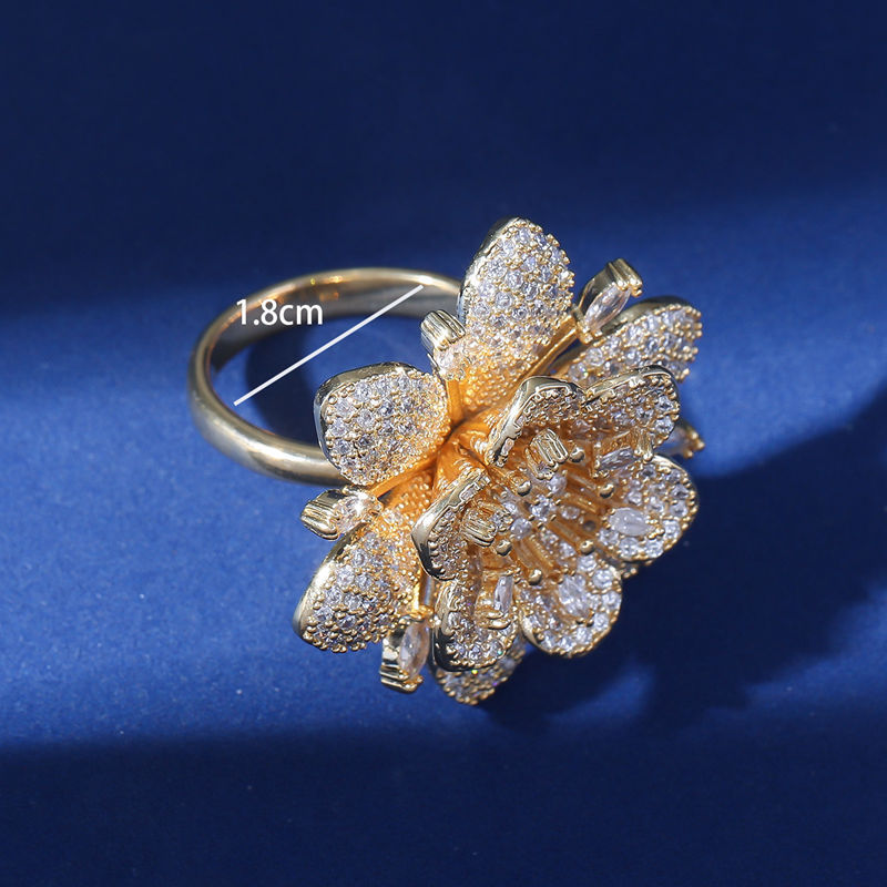 Cross-border New Double-layer Diamond Flower Ring Women's Niche Design High-end Light Luxury Ring Simple All-match Jewelry