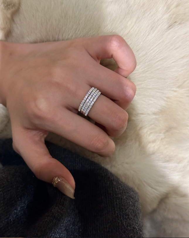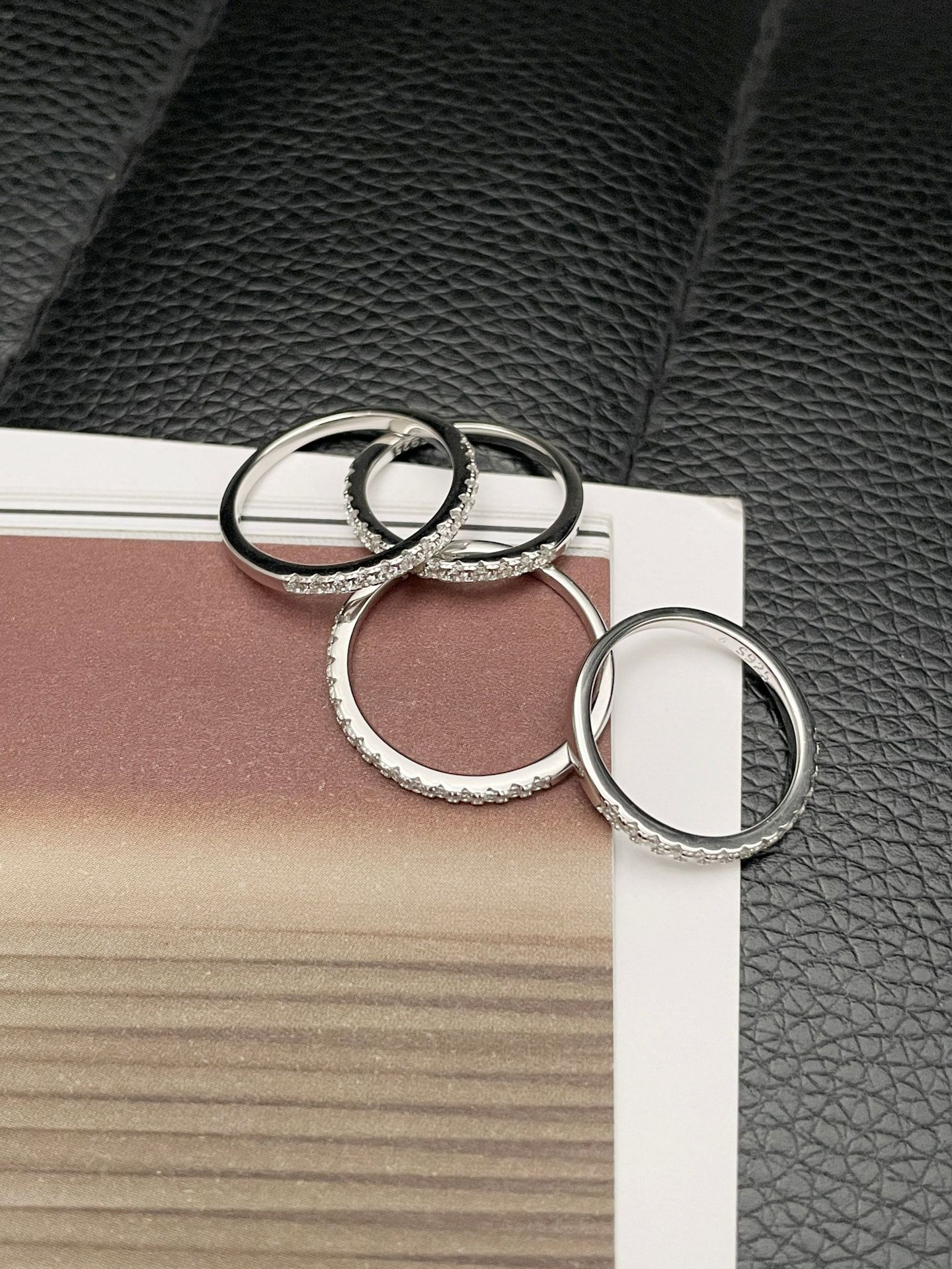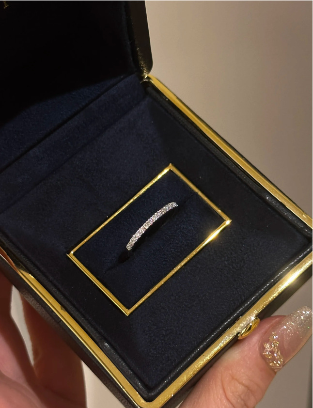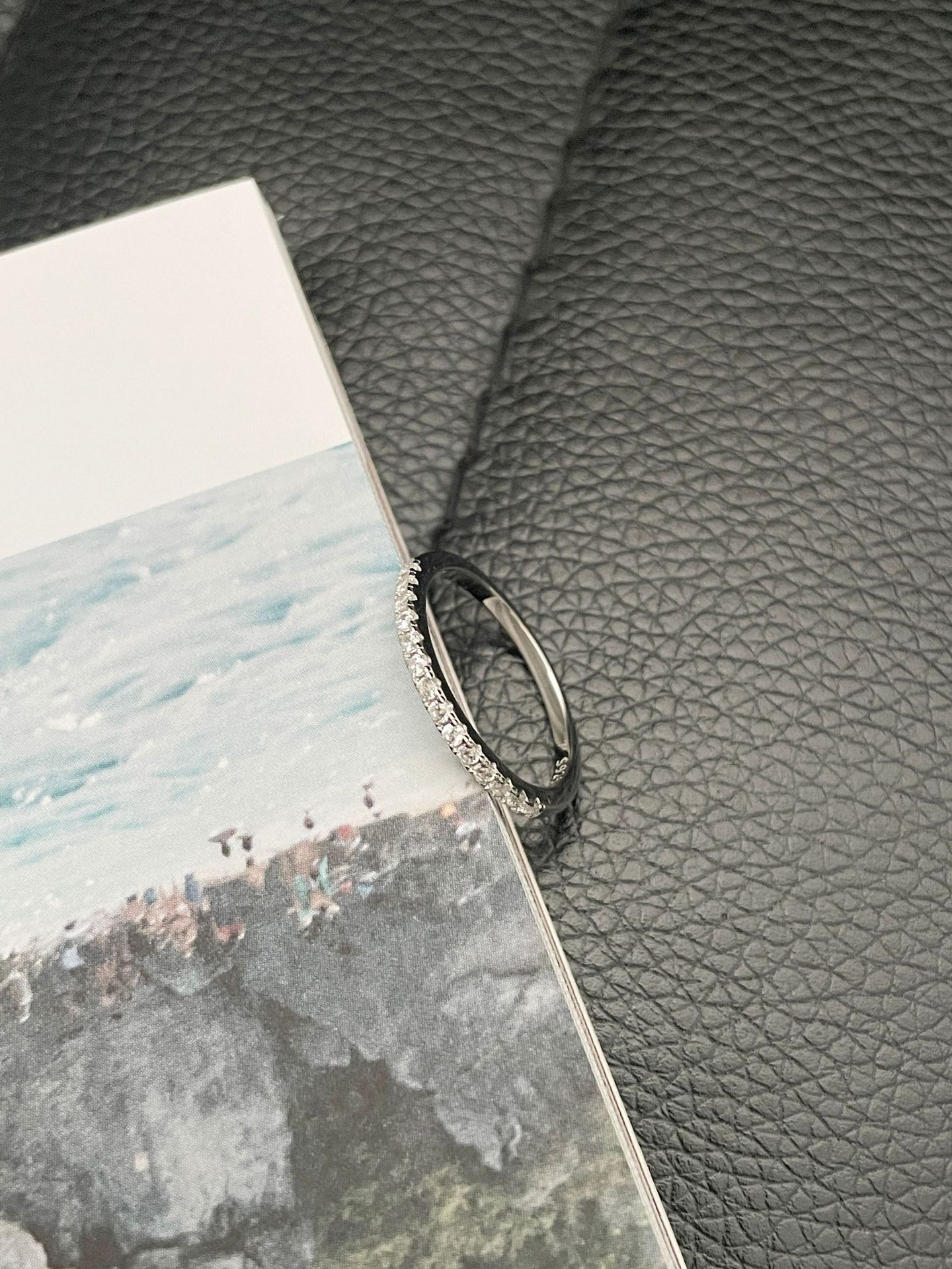 Teach S925 Sterling Silver Niche Half-Diamond and Half-Plain Very Fine Ring for Women with Flash Zirconium All-Match Stacked Instagram Beauty Ring