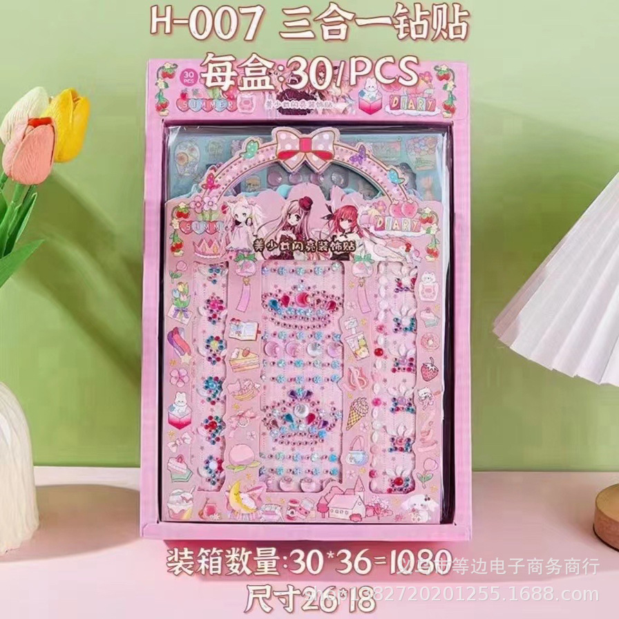 Ins Girl's Heart Shining Stars Crystal Diamond Sticker Cute Creative DIY Album Decoration Color Sticker Hand Account Sticker