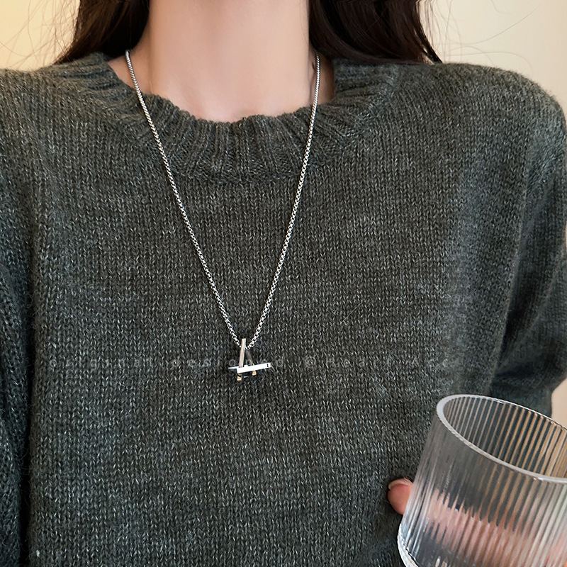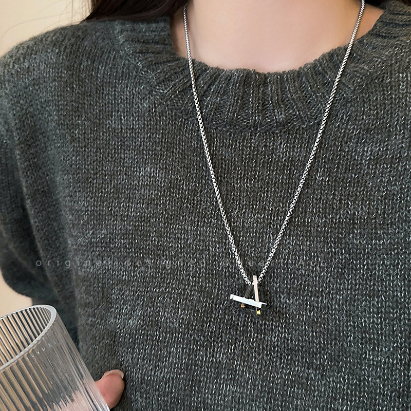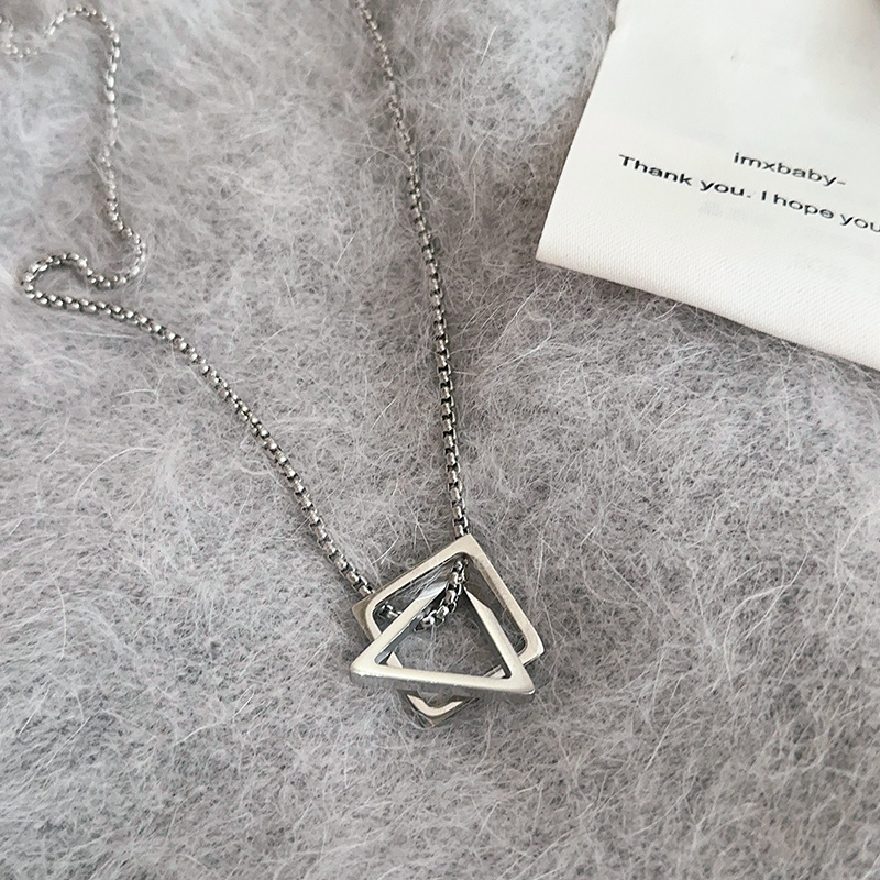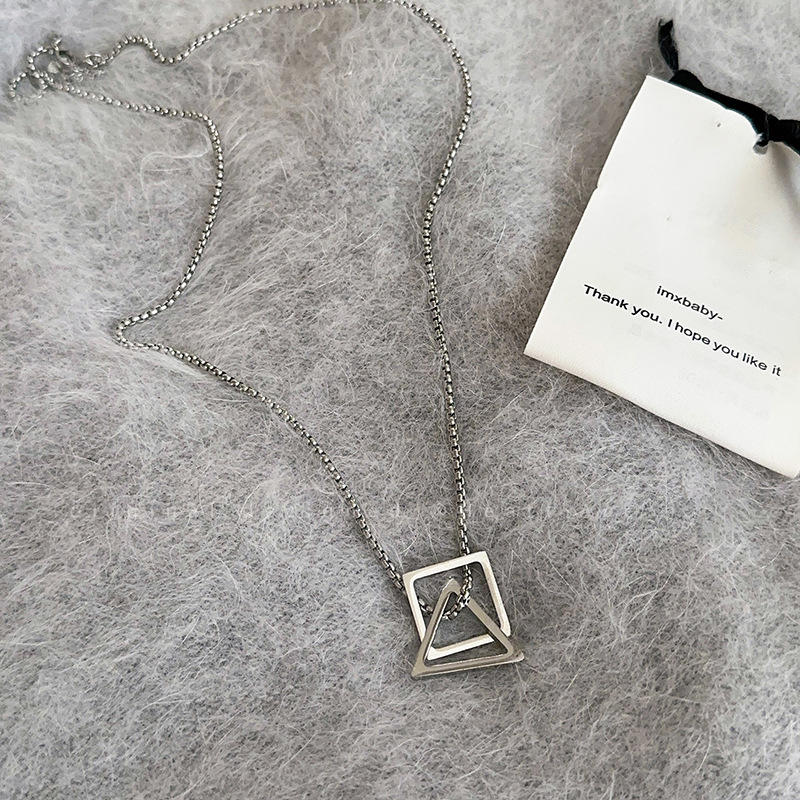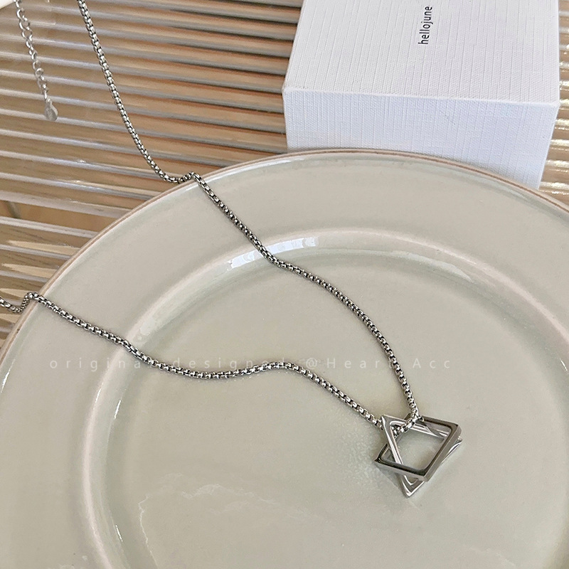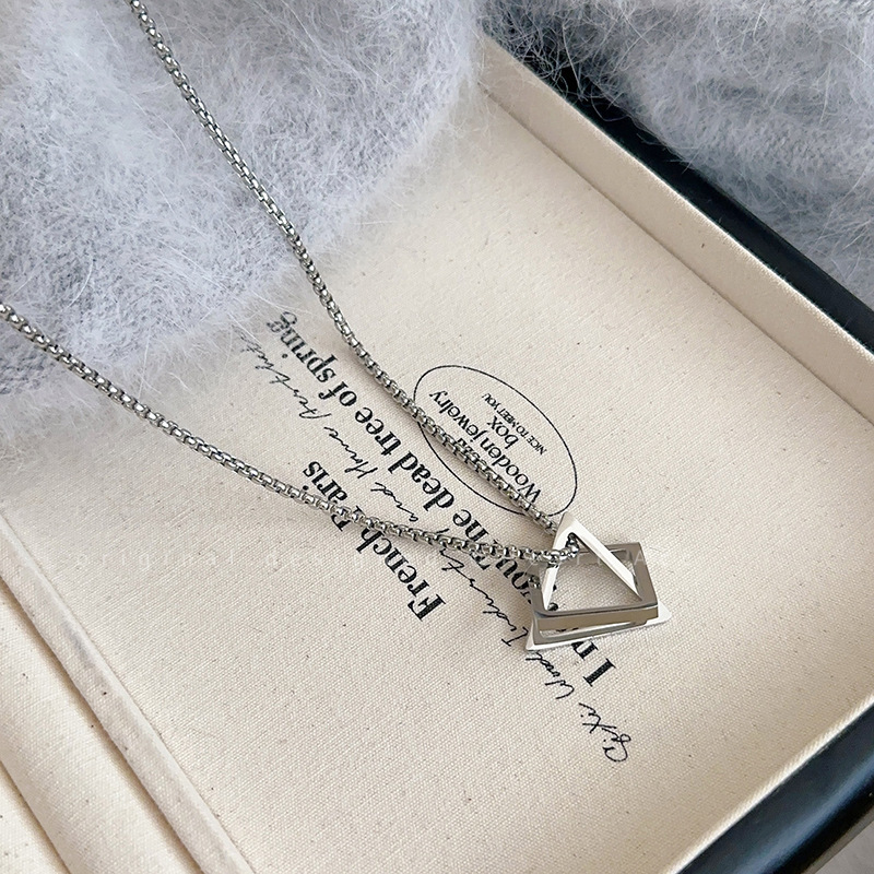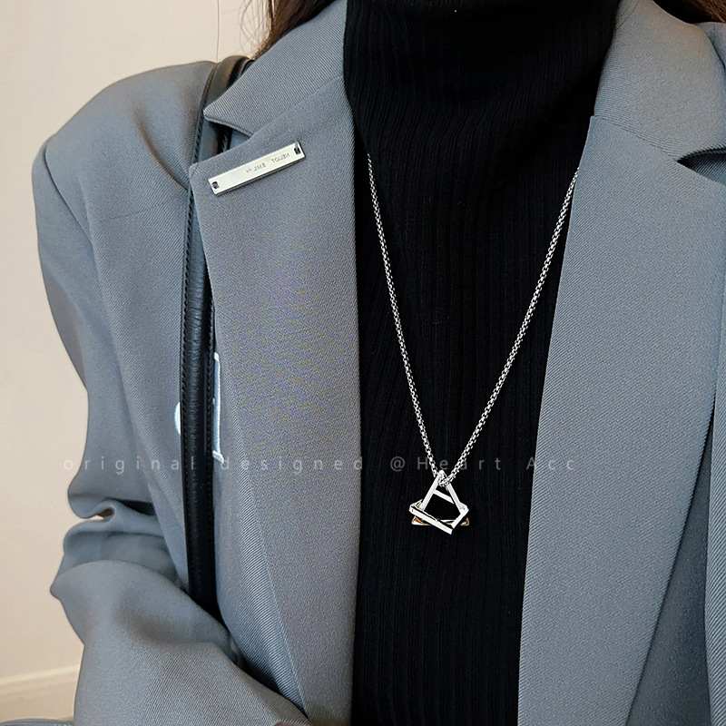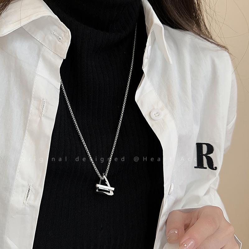 Silver Titanium Steel Triangle Long Pendant Necklace for Women Autumn and Winter Hip-Hop Sweatshirt Chain Accessories Men's Non-Fading Sweater Chain