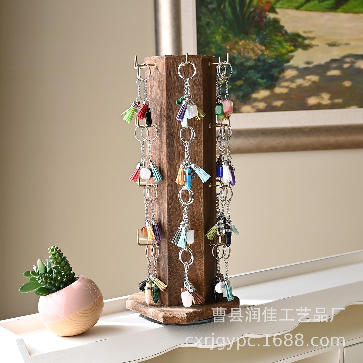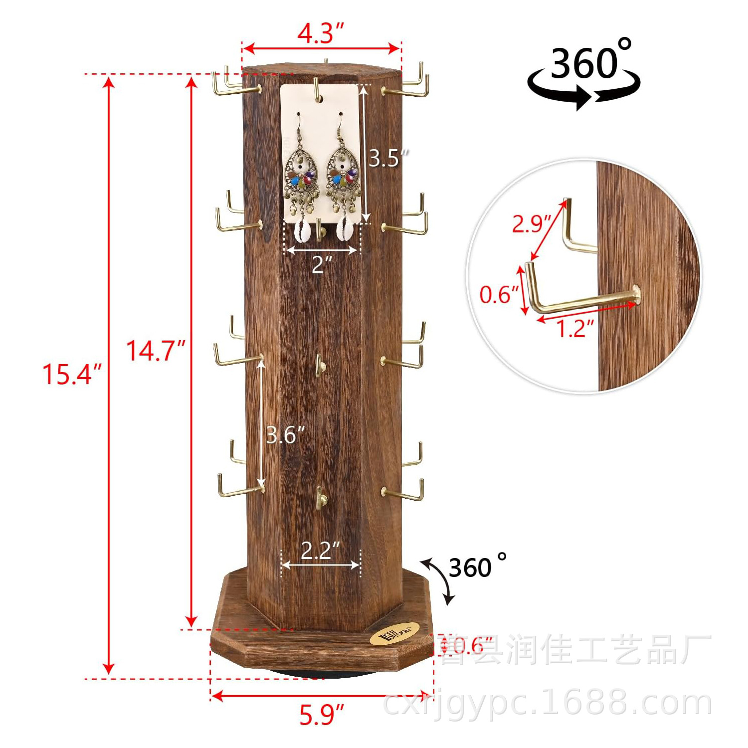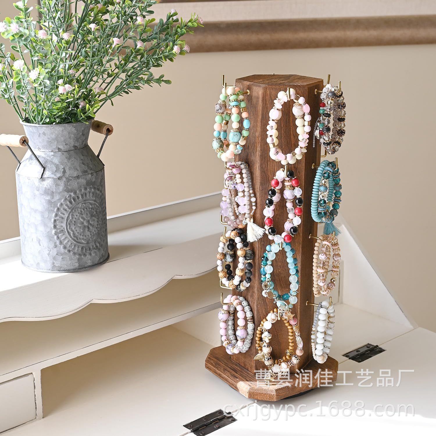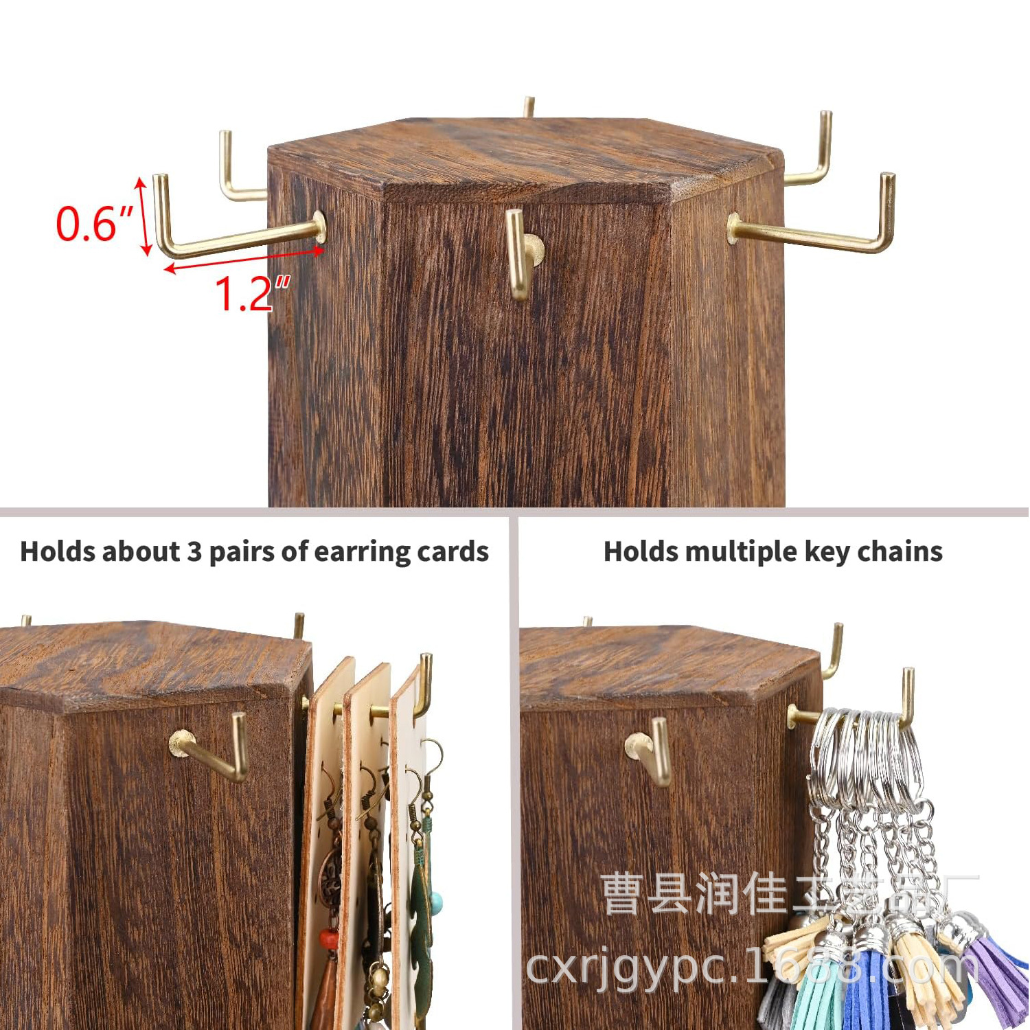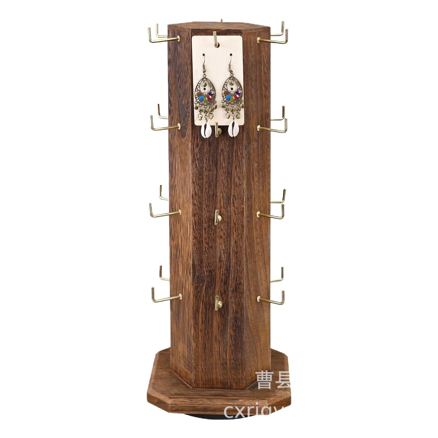 Solid Wood Hexagonal Six-Sided Rotating Jewelry Display Stand Wooden Carbonized Bracelet Earring Holder Store Jewelry Display