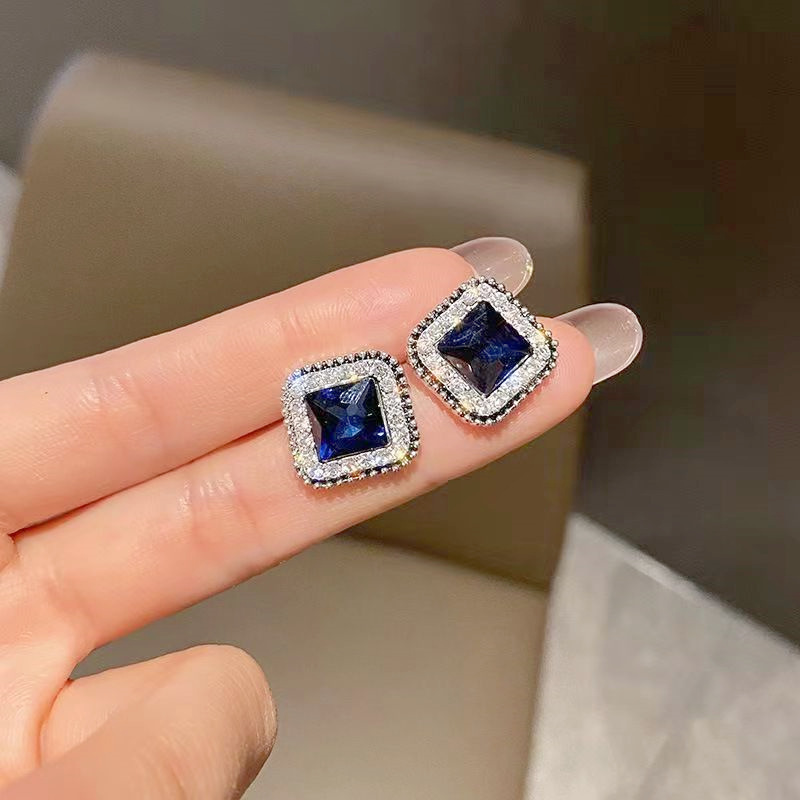 South Korea fashion blue crystal earrings square simple temperament personality earrings female S925 silver ear jewelry wholesale