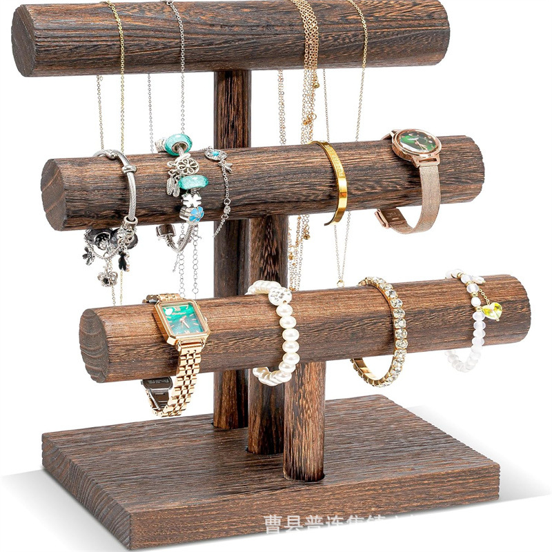 Wooden Bracelet Rack Countertop Jewelry Bracelet Display Rack Layered Bracket Country Style Store Solid Wood Jewelry Rack