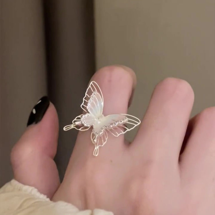 Pink Gradient Double Layer Hand Jewelry Hollow Butterfly Ring Summer Niche Casual Beautiful High-Looking Cool Feeling Ring