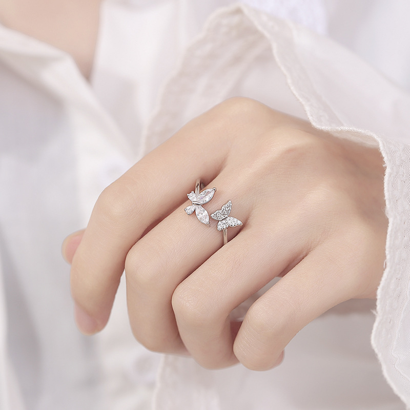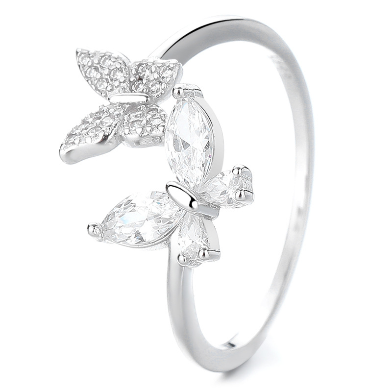 925 Sterling Silver Butterfly Zircon Ring for Women Sweet Ins Style Butterfly Zircon Ring Personalized Fashion Silver Jewelry