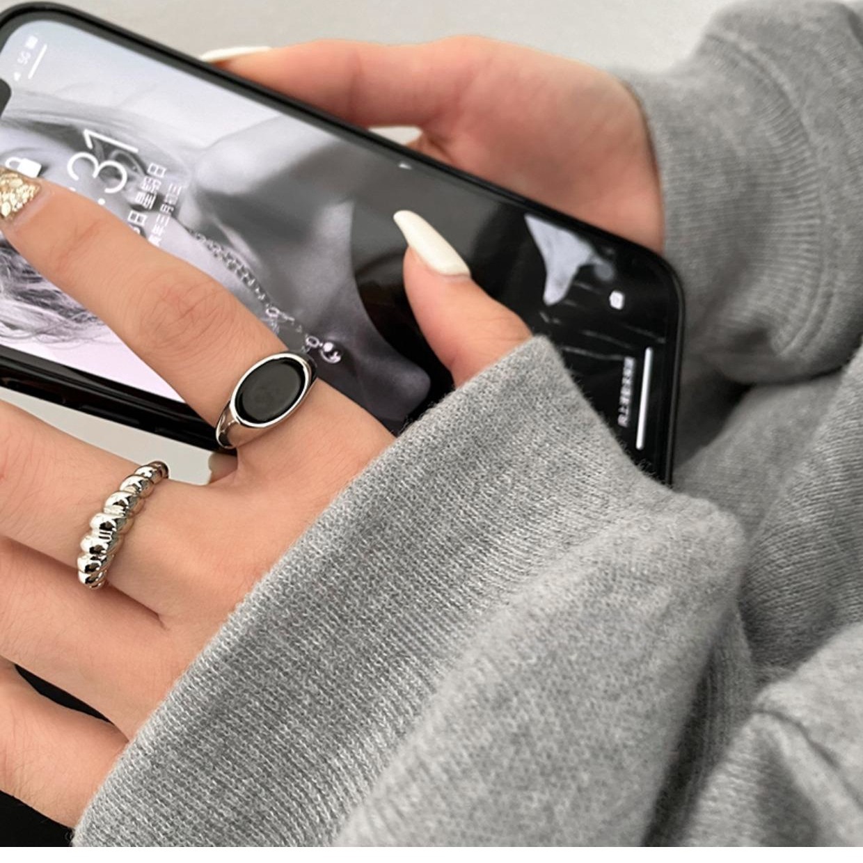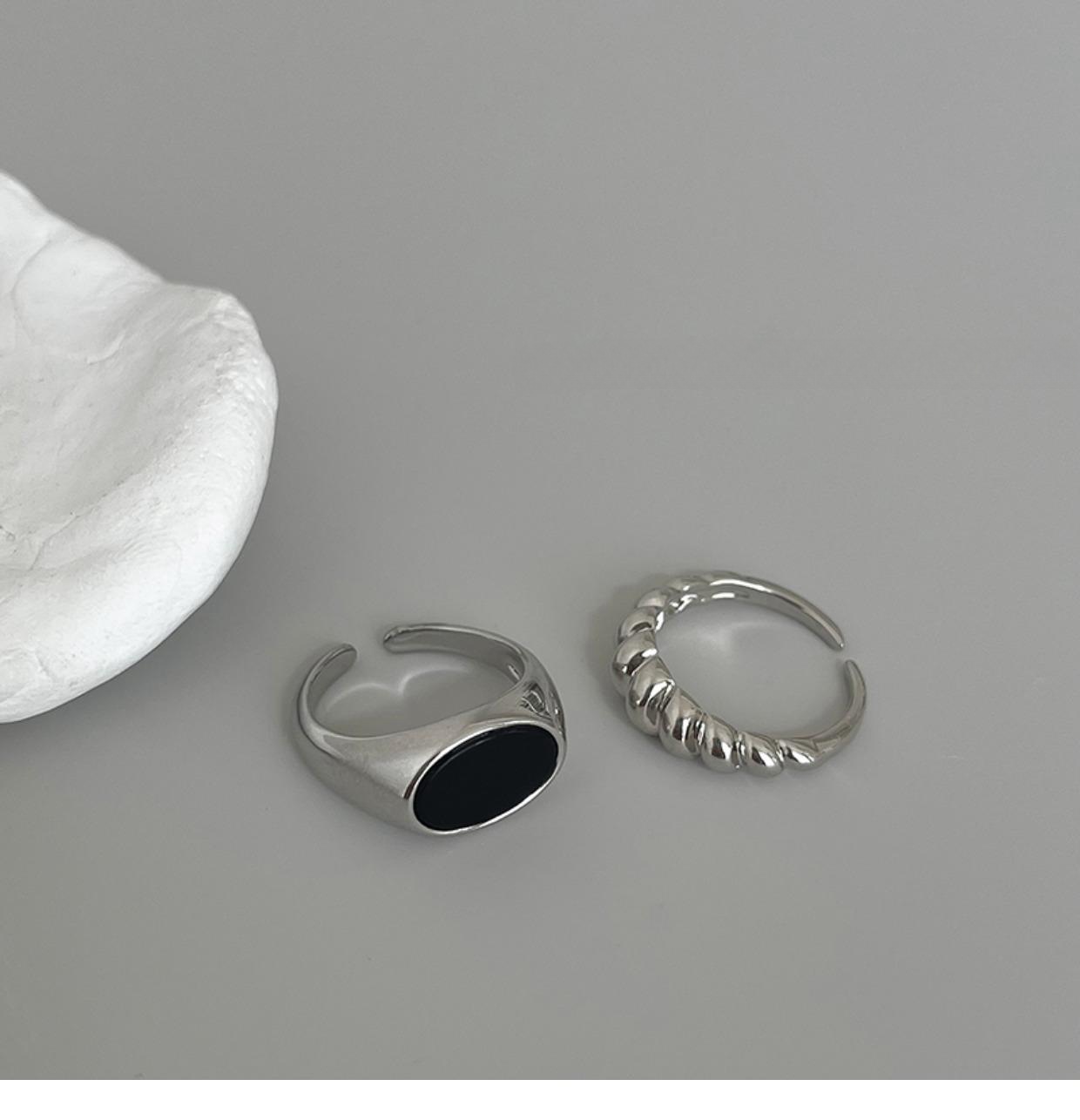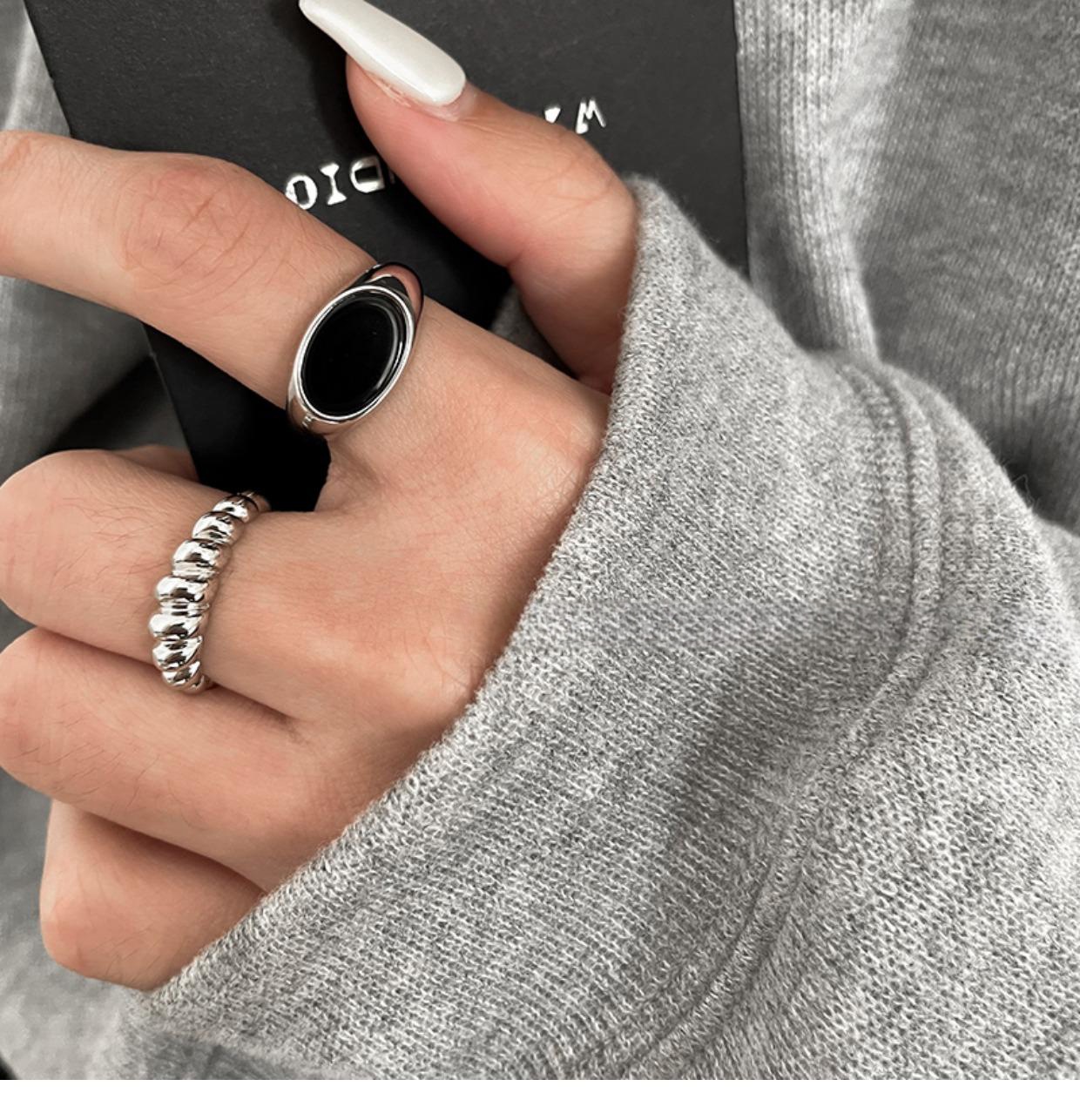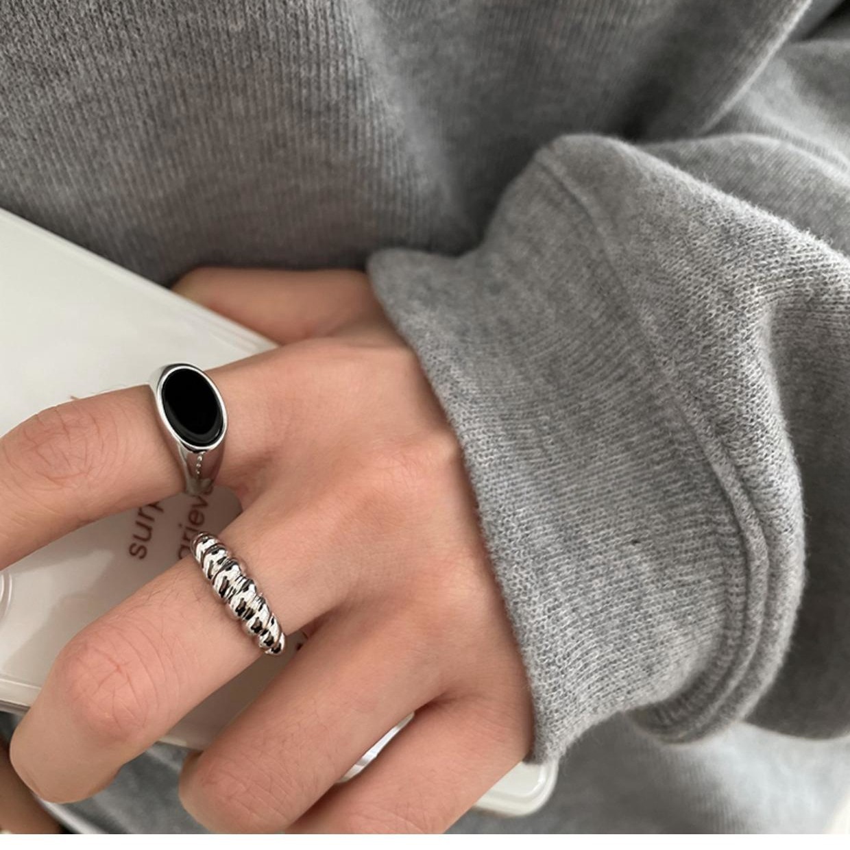 Vintage Black Twist Ring Women's Niche Design Light Luxury High-end Cool Style Simple Finger Ring Men's Fashion