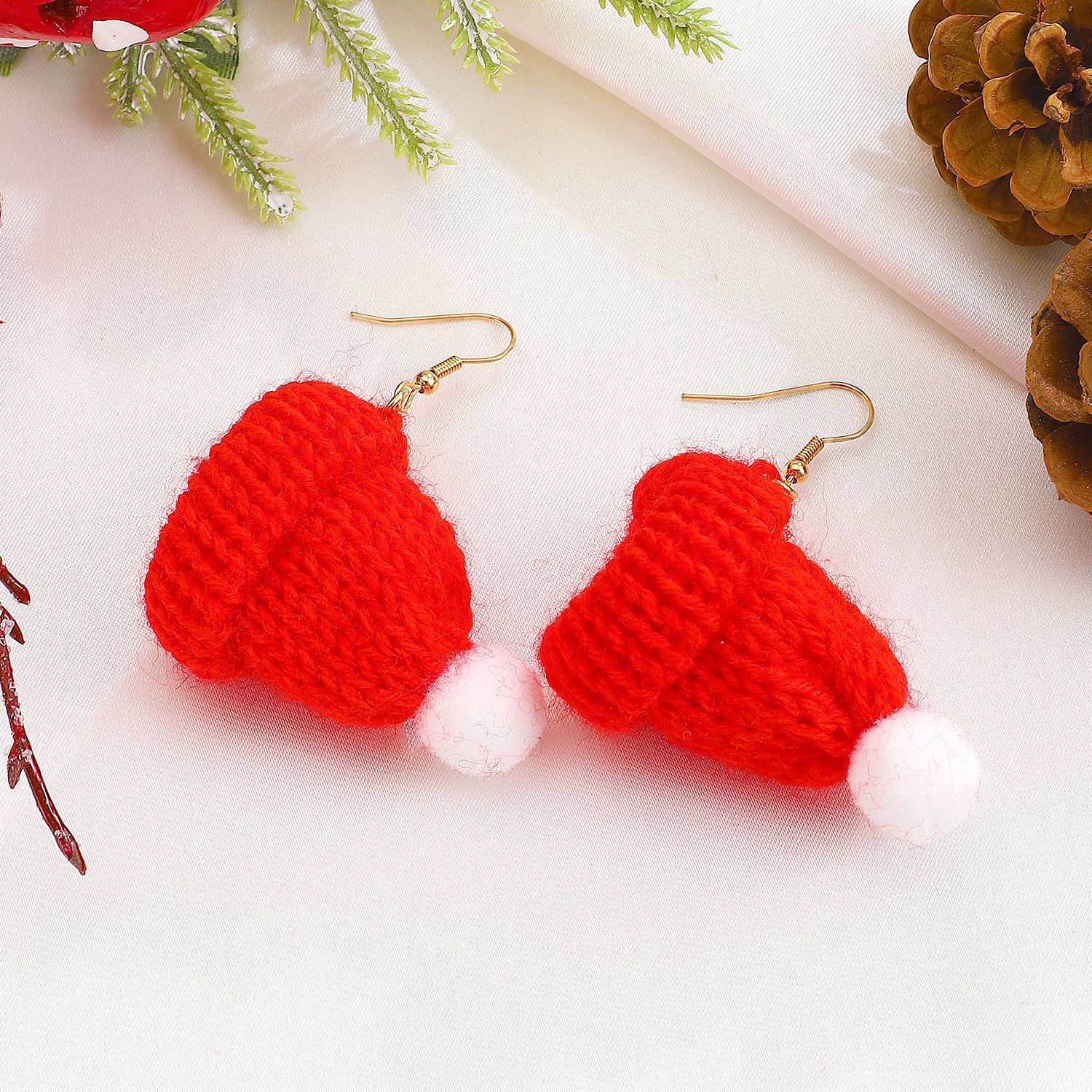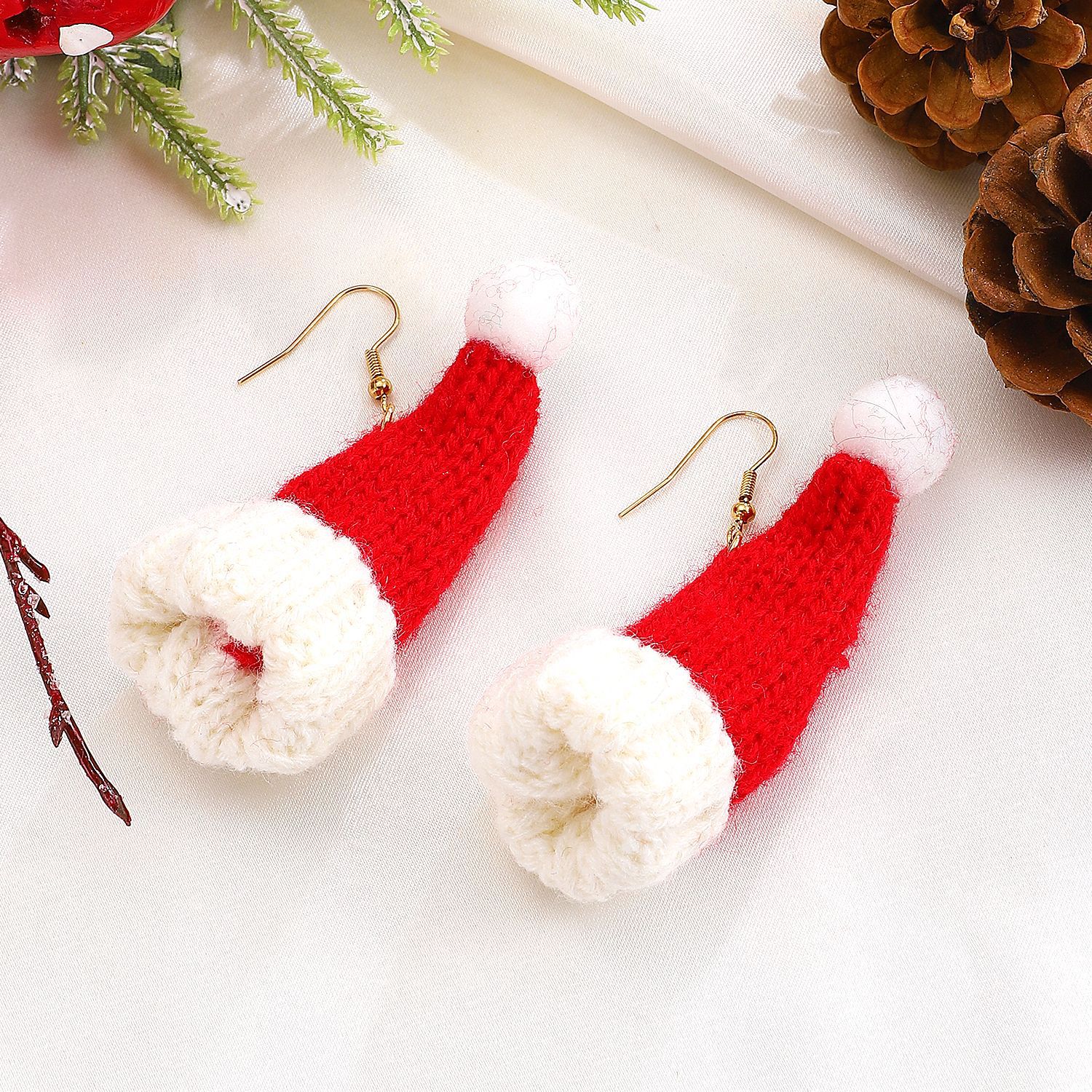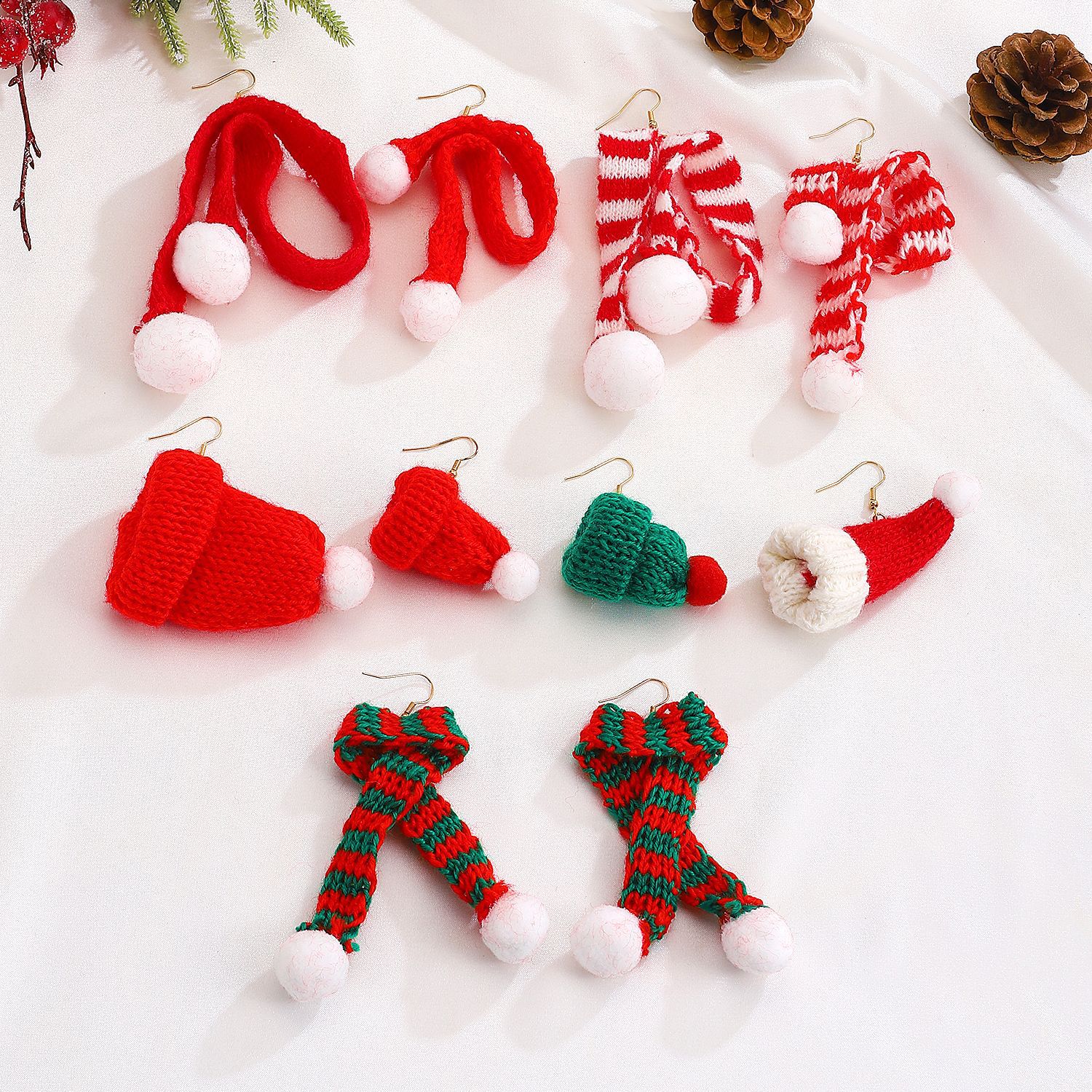 Christmas mini knitted wool Christmas hat scarf earrings female ins niche creative autumn and winter wool earrings