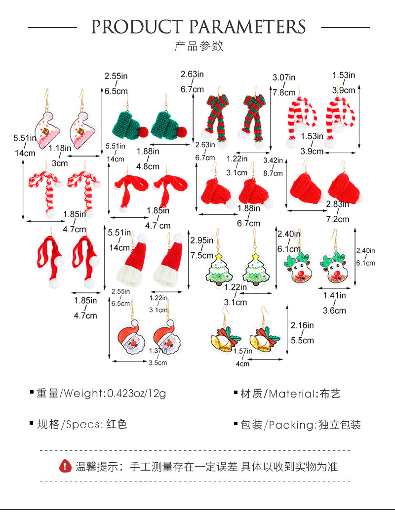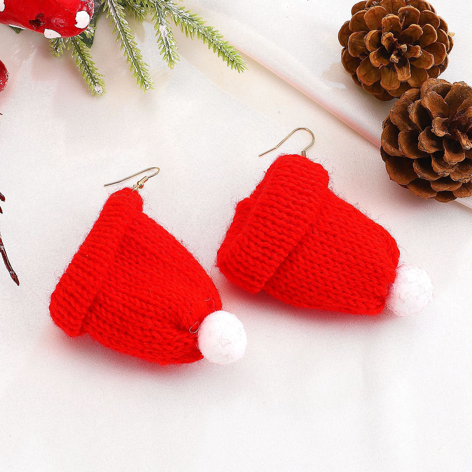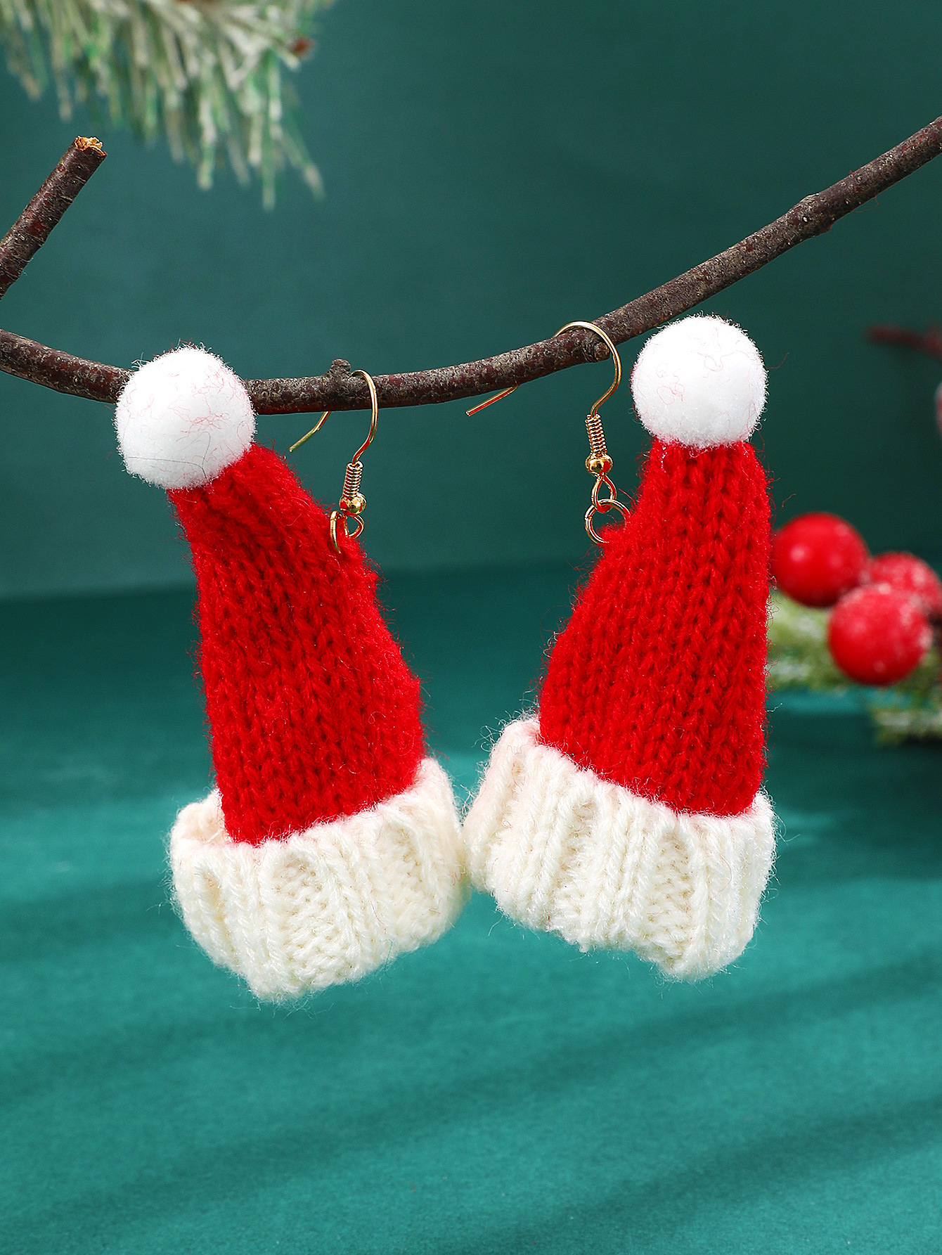Christmas mini knitted wool Christmas hat scarf earrings female ins niche creative autumn and winter wool earrings