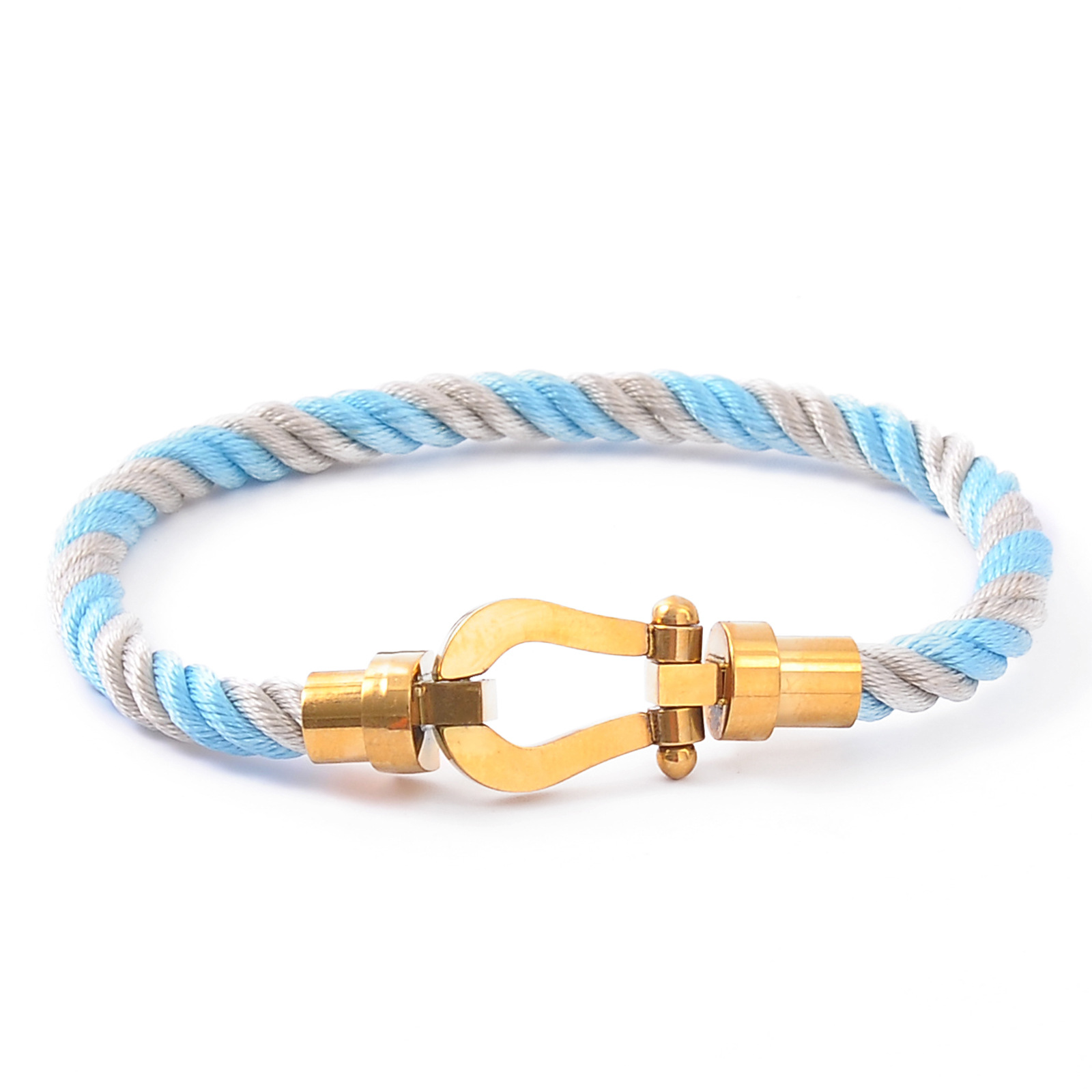 Color: Gold buckle + gray blue rope