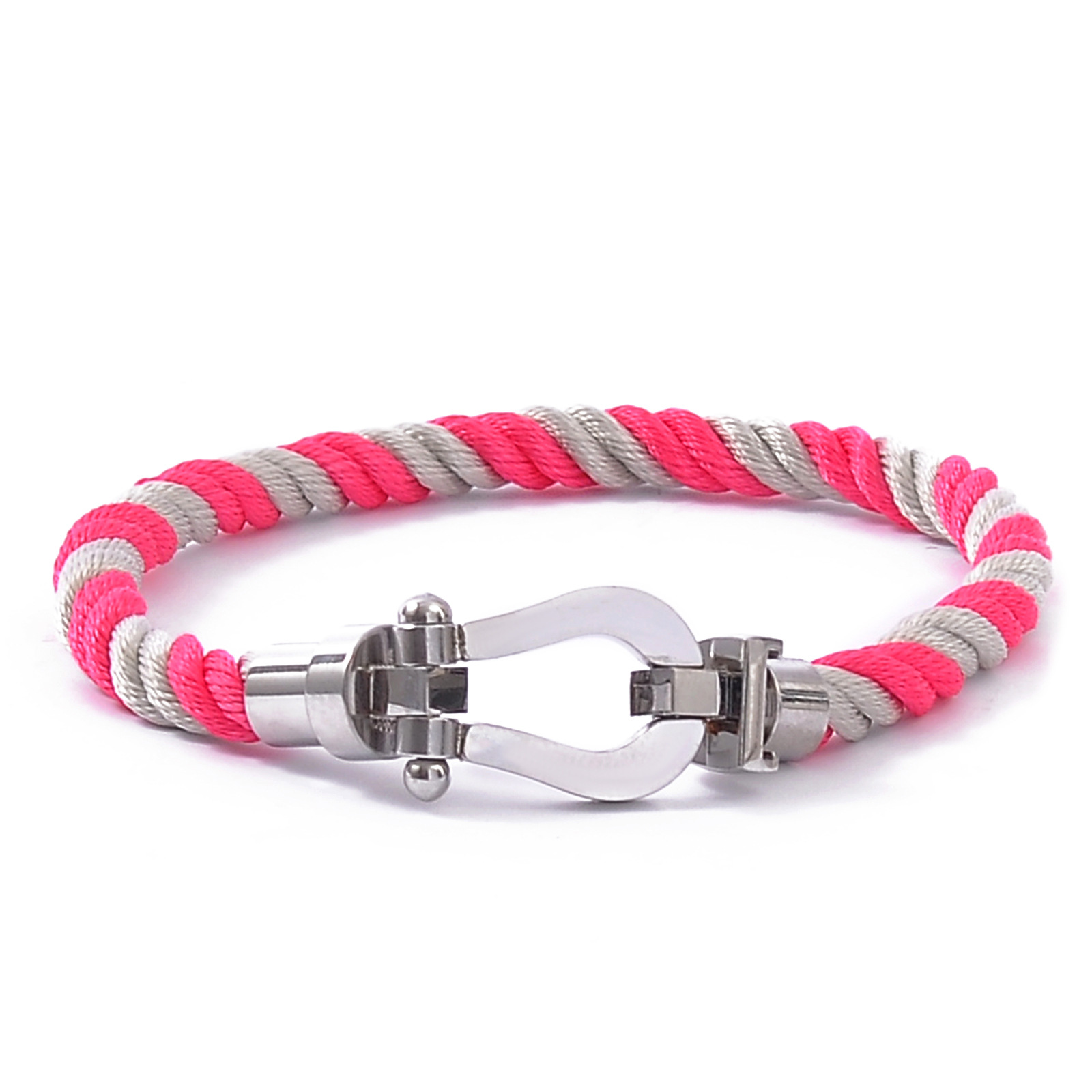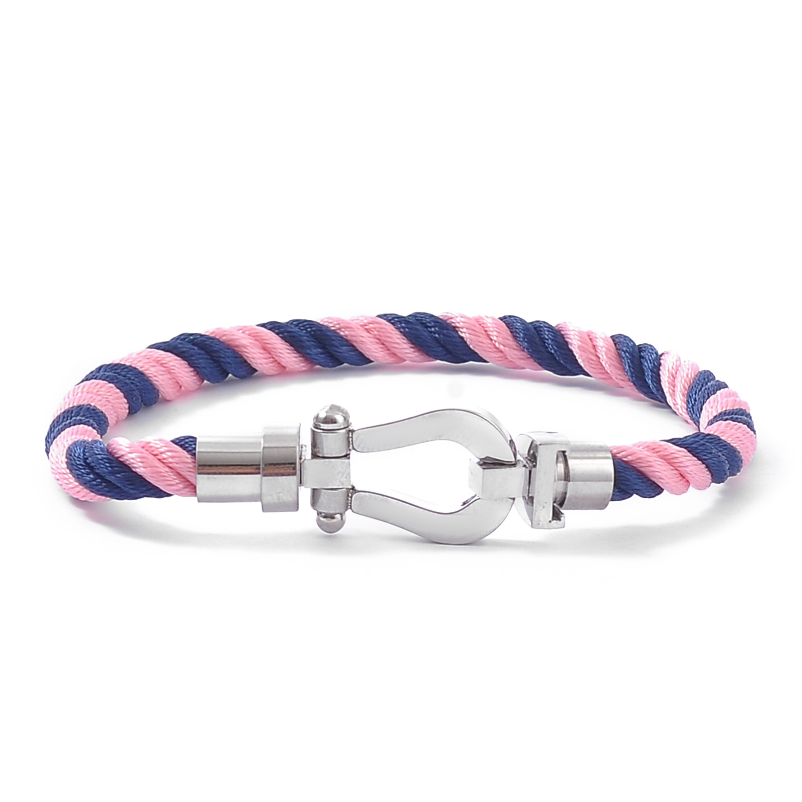 Color: Silver buckle + pink and blue rope