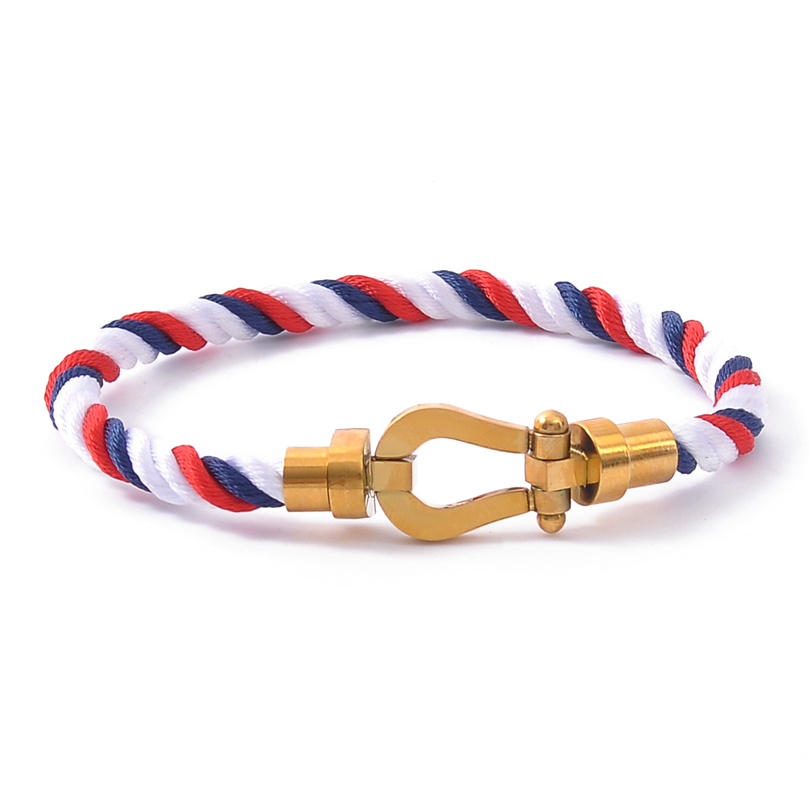 Color: Gold buckle + blue and white red rope