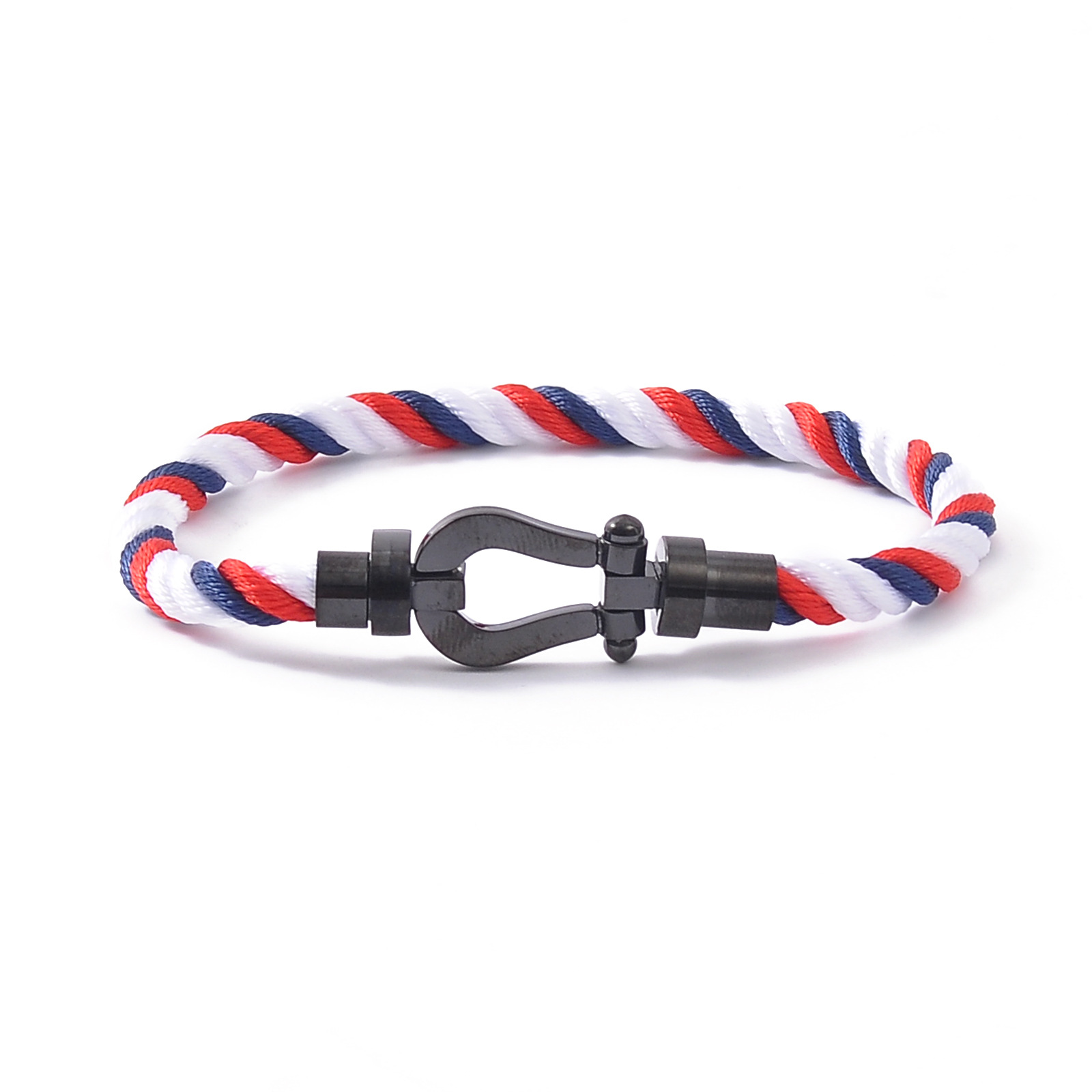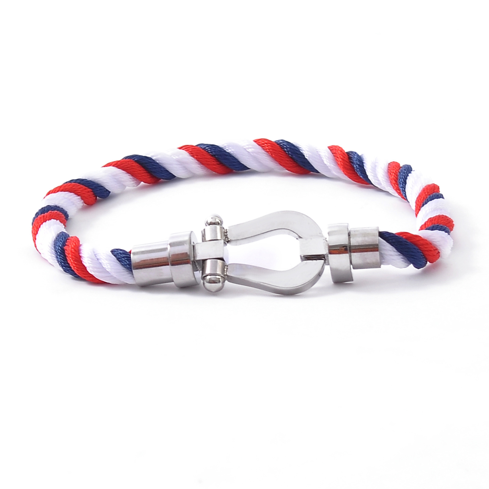 Color: Silver buckle + blue and white red rope
