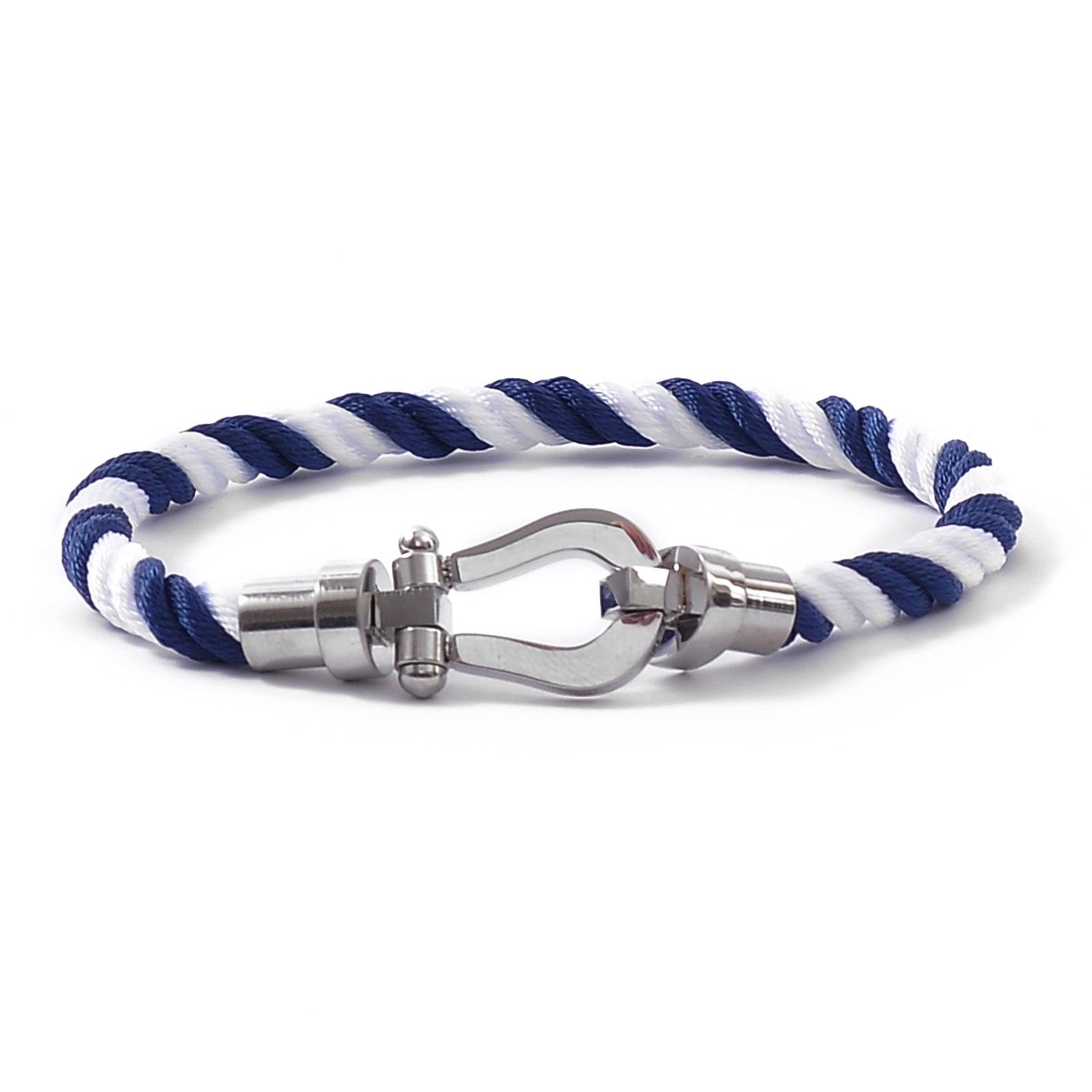Color: Silver buckle + navy blue rope