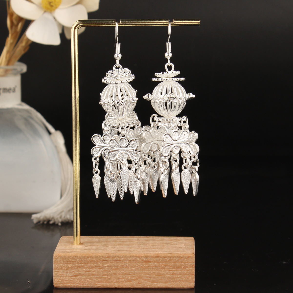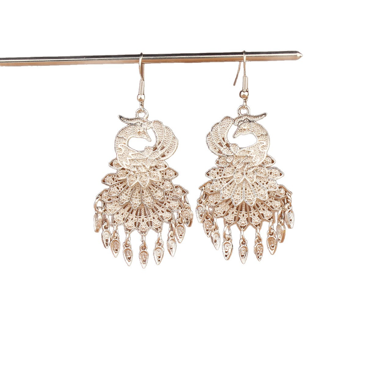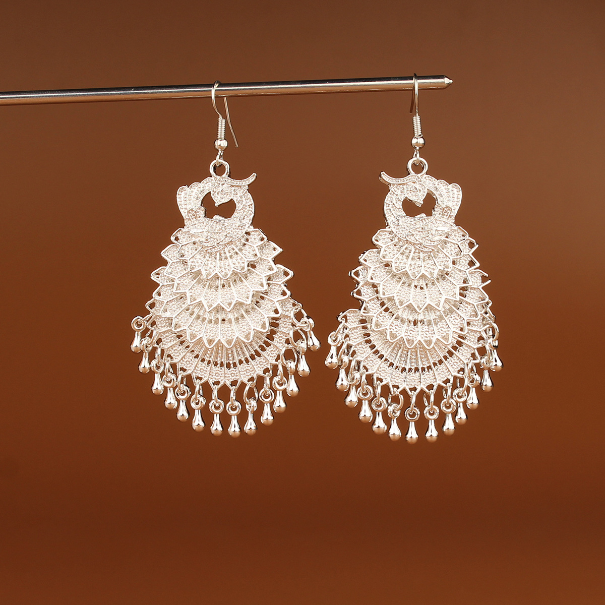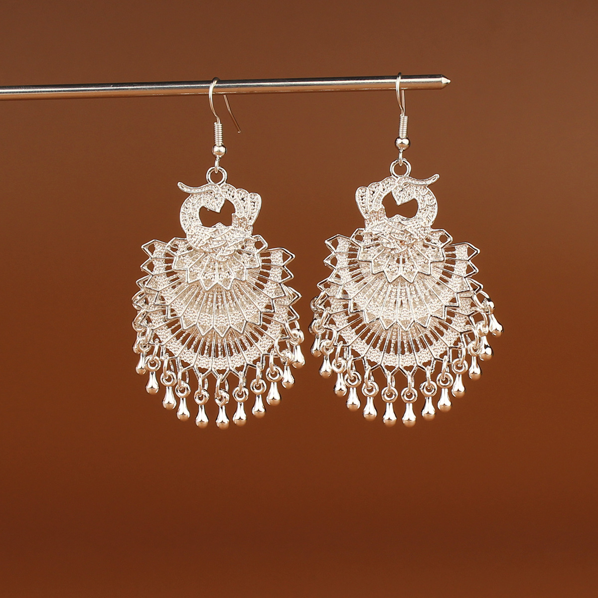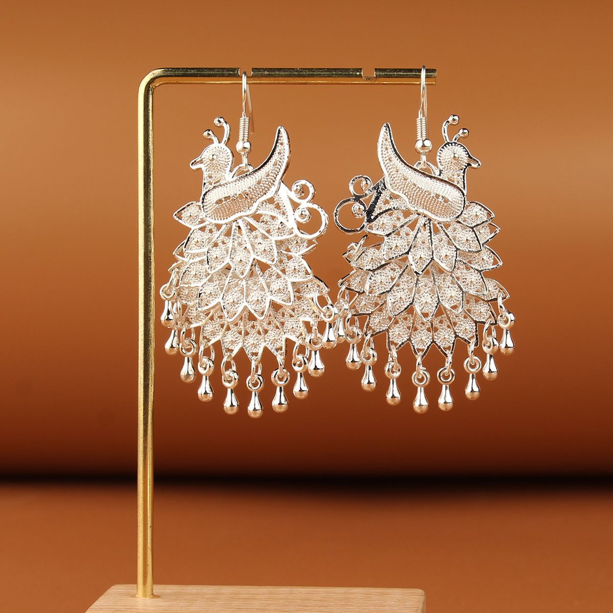 Cloisonne Peacock Earrings Women Imitation Miao Silver Minority Totem Phoenix Bell Earrings Scenic Ear Jewelry Wholesale