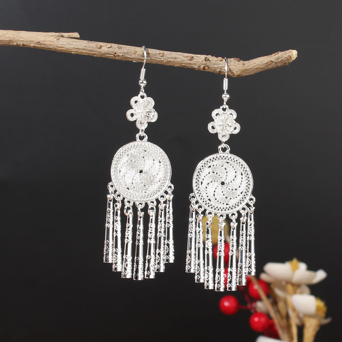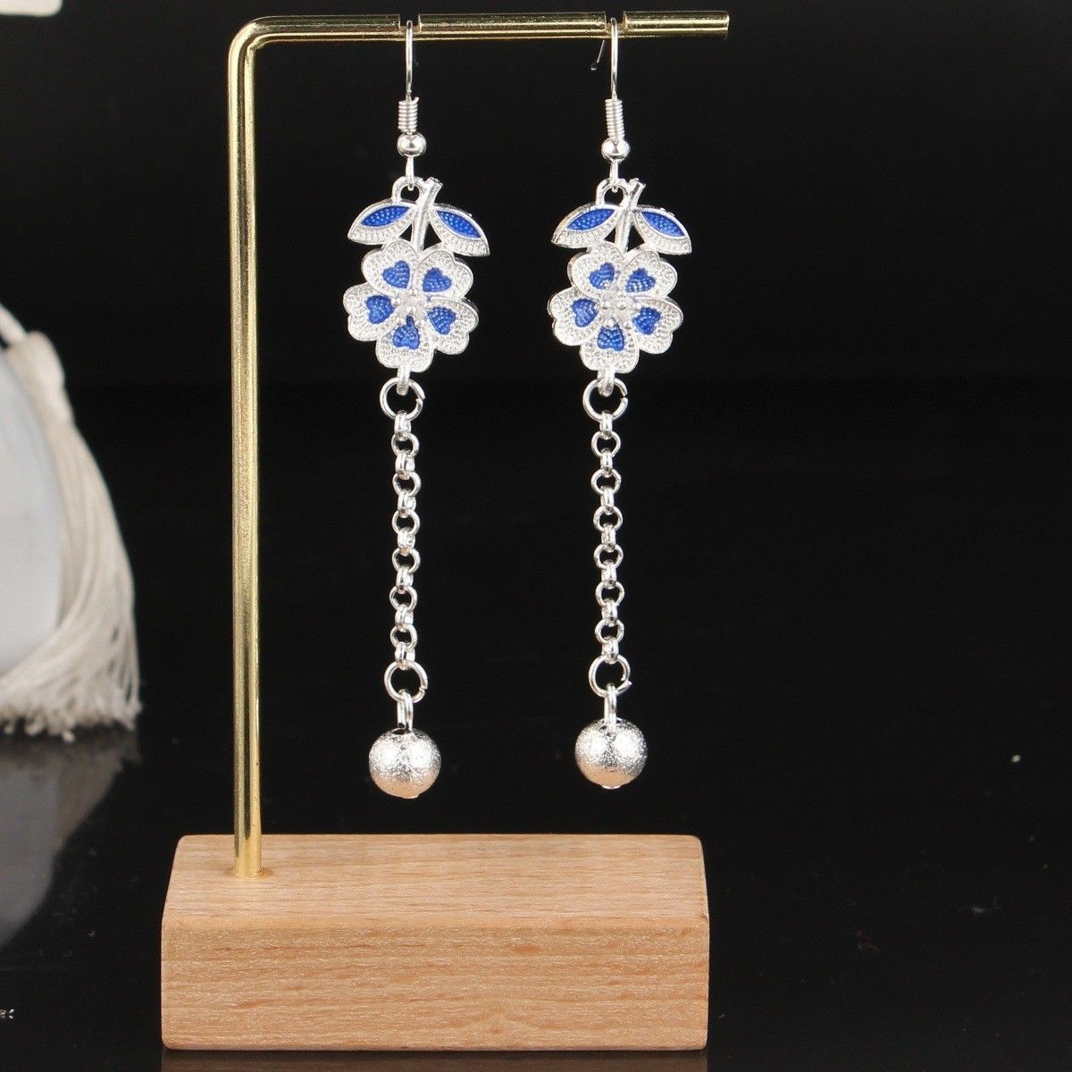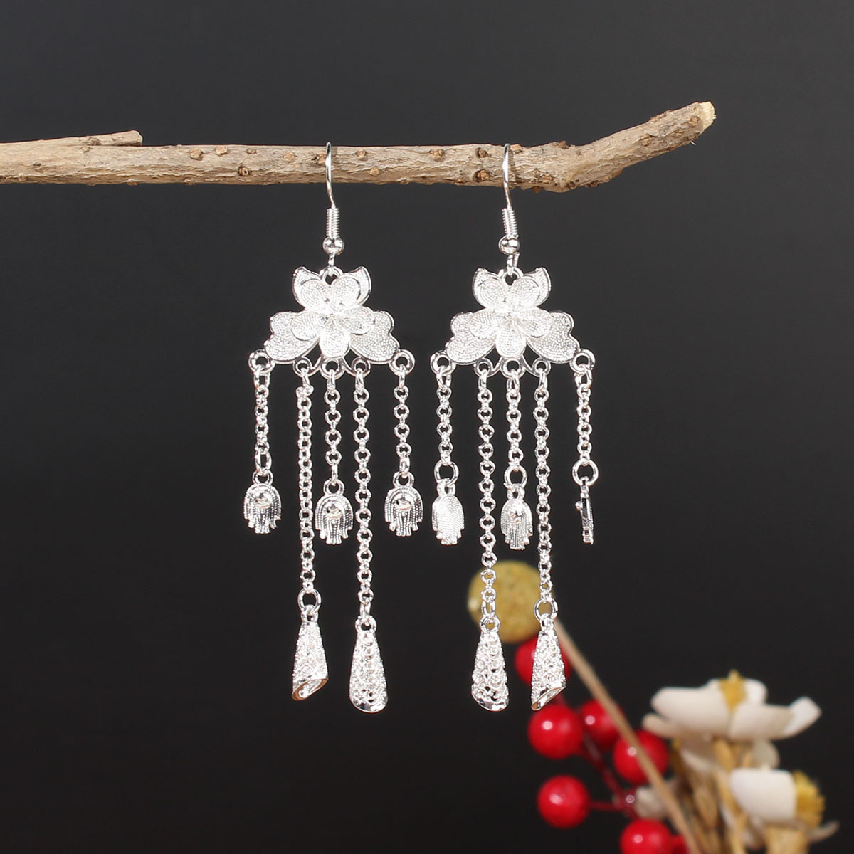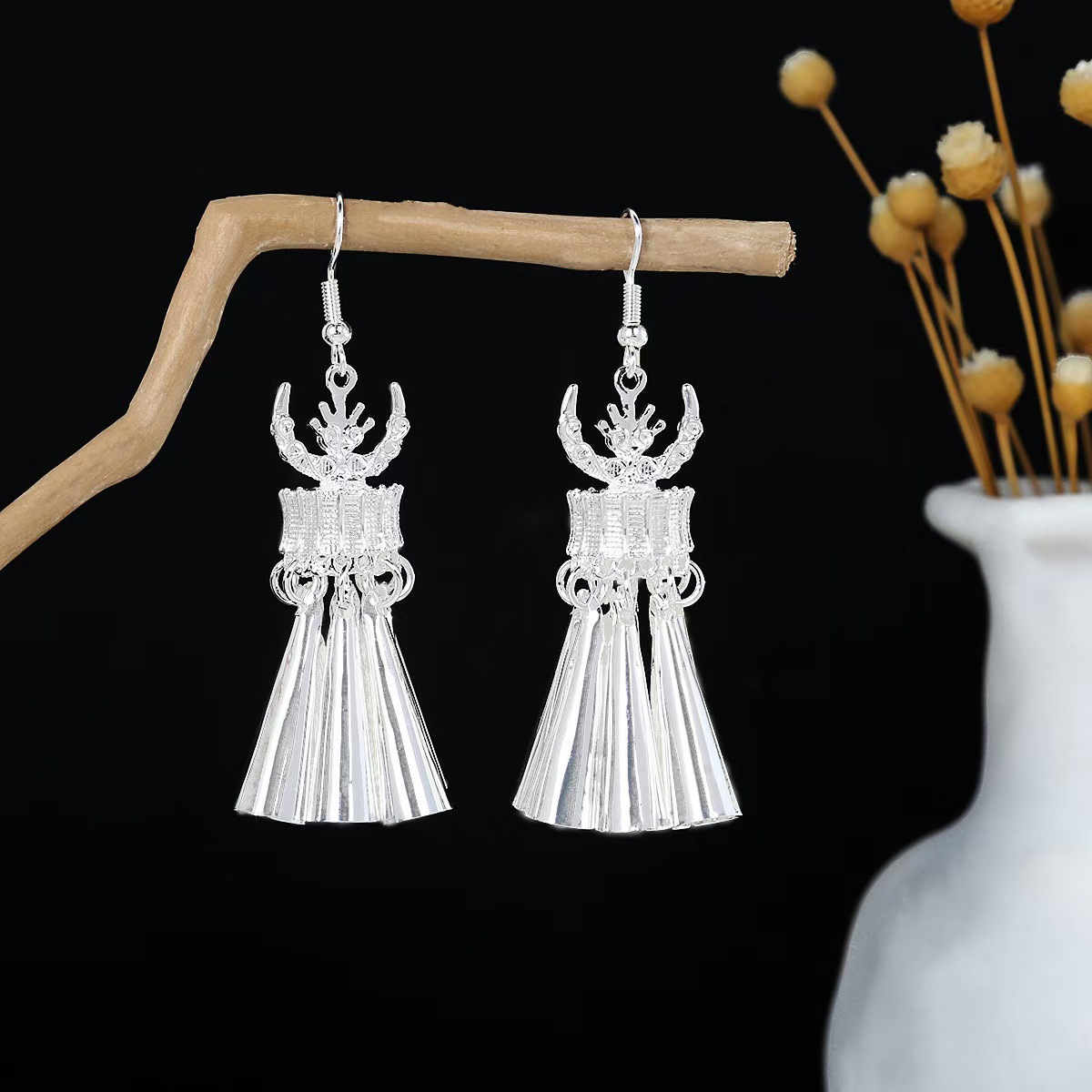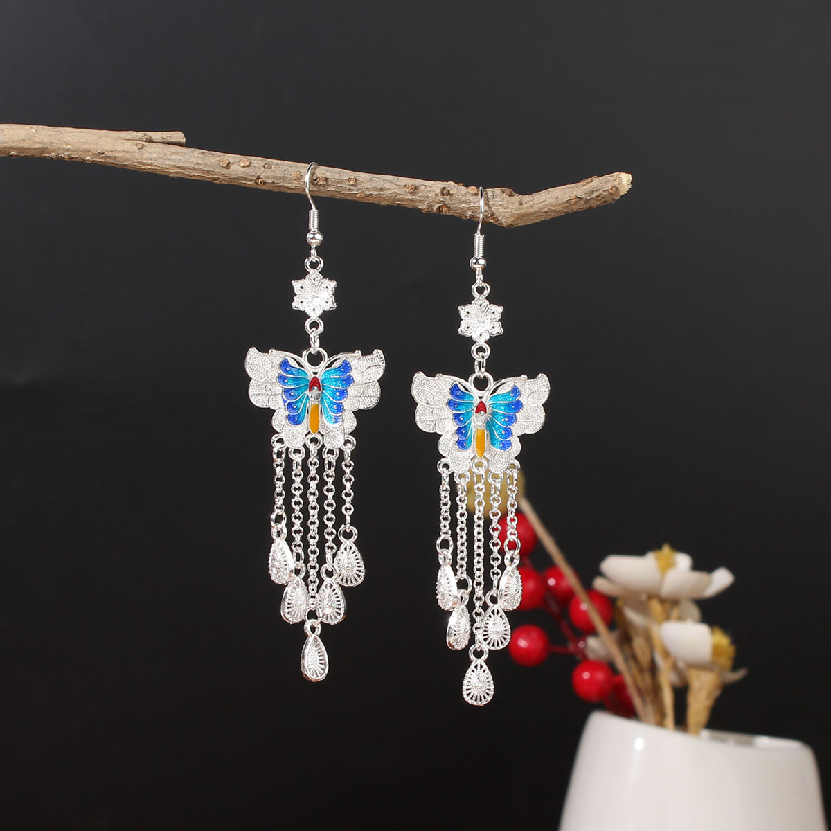 Cloisonne Peacock Earrings Women Imitation Miao Silver Minority Totem Phoenix Bell Earrings Scenic Ear Jewelry Wholesale