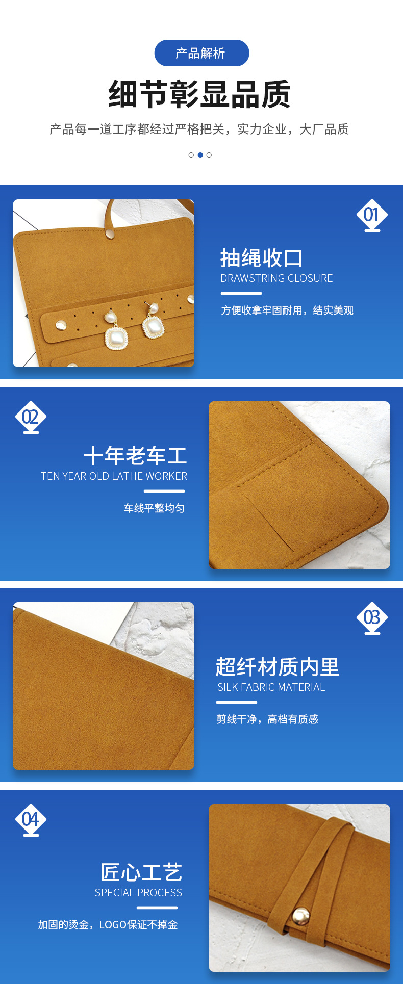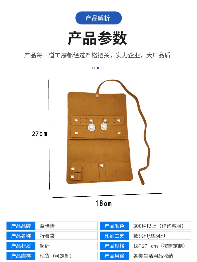 Thickened Microfiber Jewelry Roll Bag, Multifunctional Earrings and Ring Storage Bag, Anti-Oxidation Portable Travel Jewelry Bag