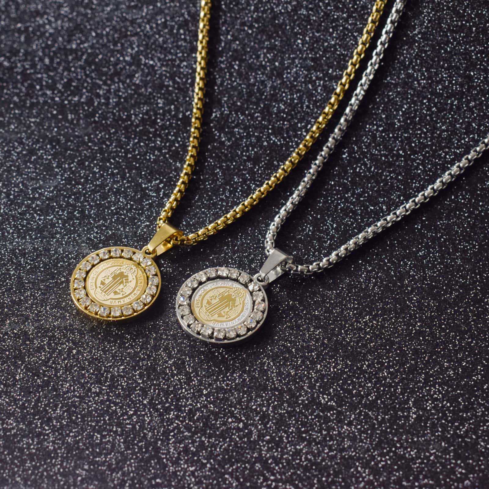 Color: Silver round medal first diamond the godfather circle card [pendant + 2.5*60 pearl chain]