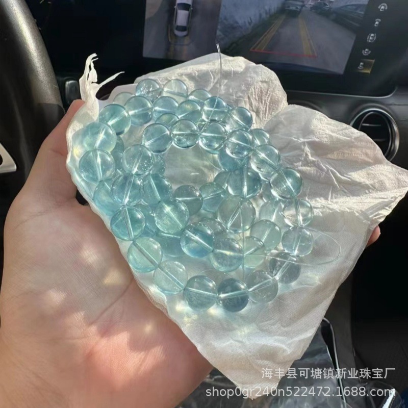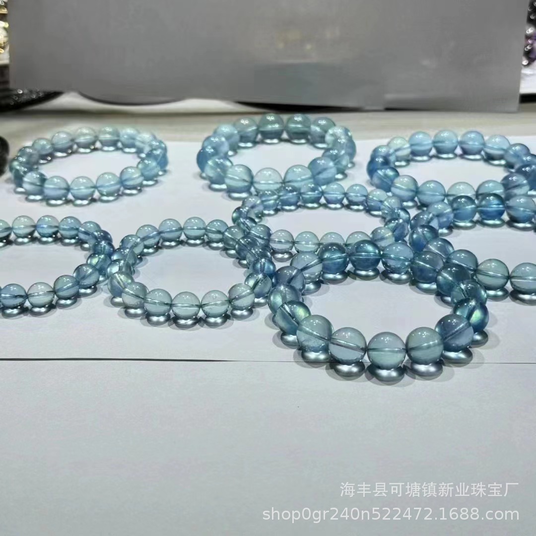 Little Red Book Hot Natural High Ice Holy Blue Aquamarine Bracelet Ice Crushed Ice Blue Aquamarine Clear Men's and Women's Manual
