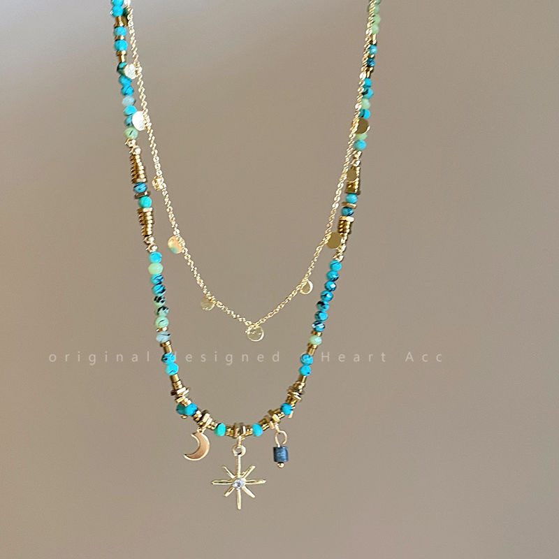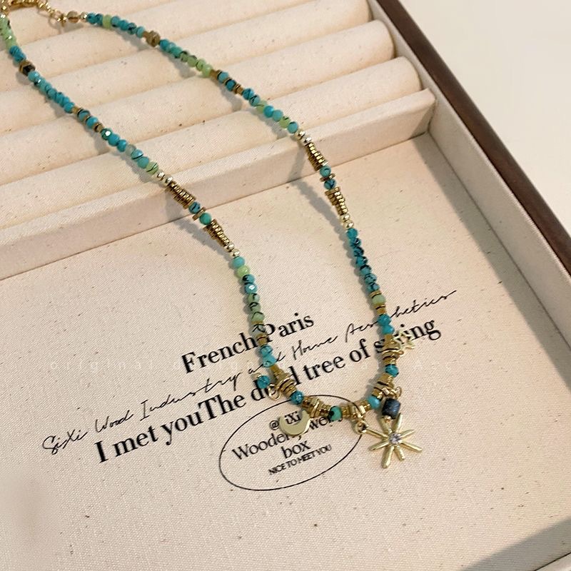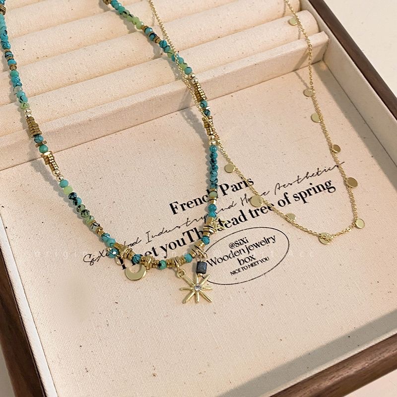 Color: Retro disc + beaded sunflower necklace [2-piece set]
