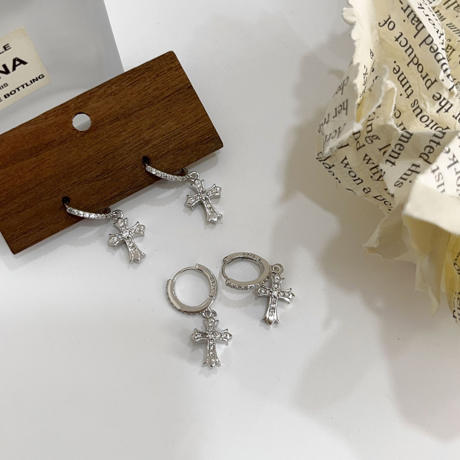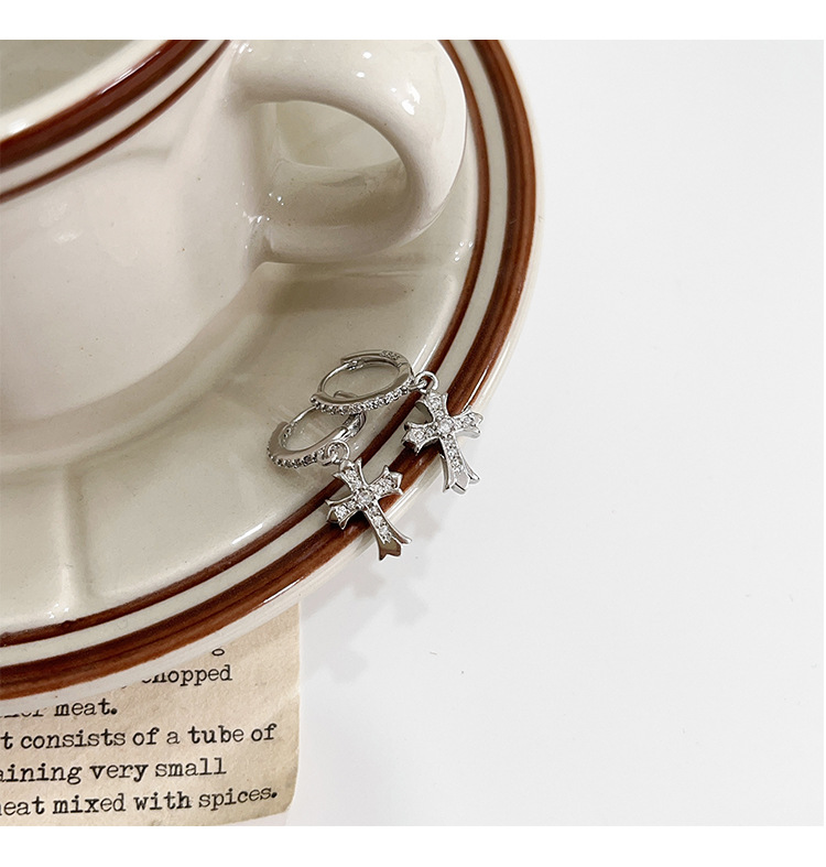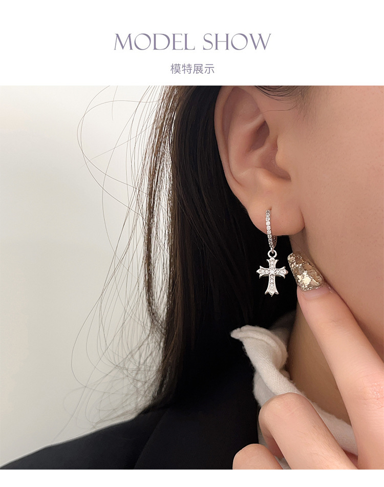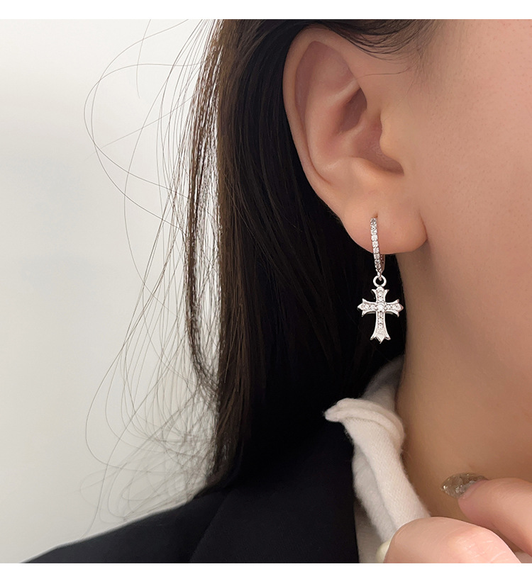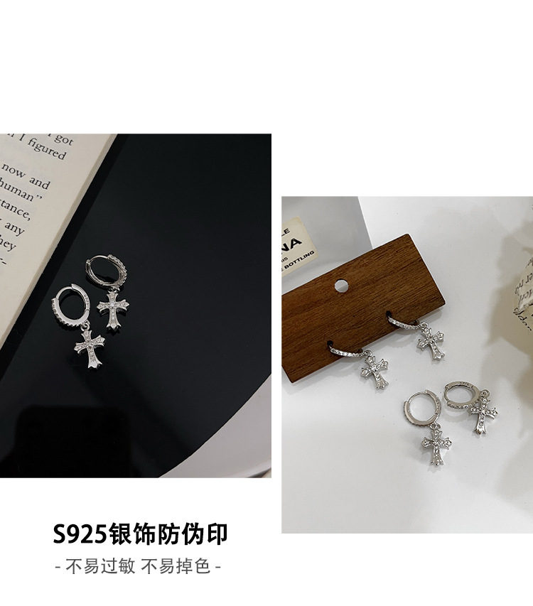 Silver Ruitai s925 sterling silver cross-border explosions cross earrings men's and women's fashion European and American style trend personality earrings
