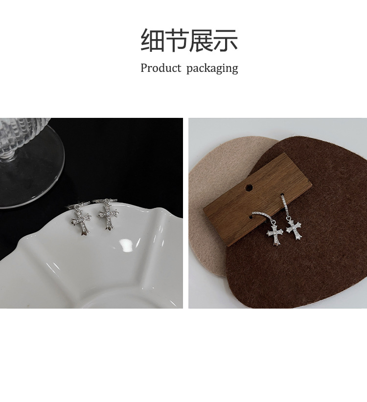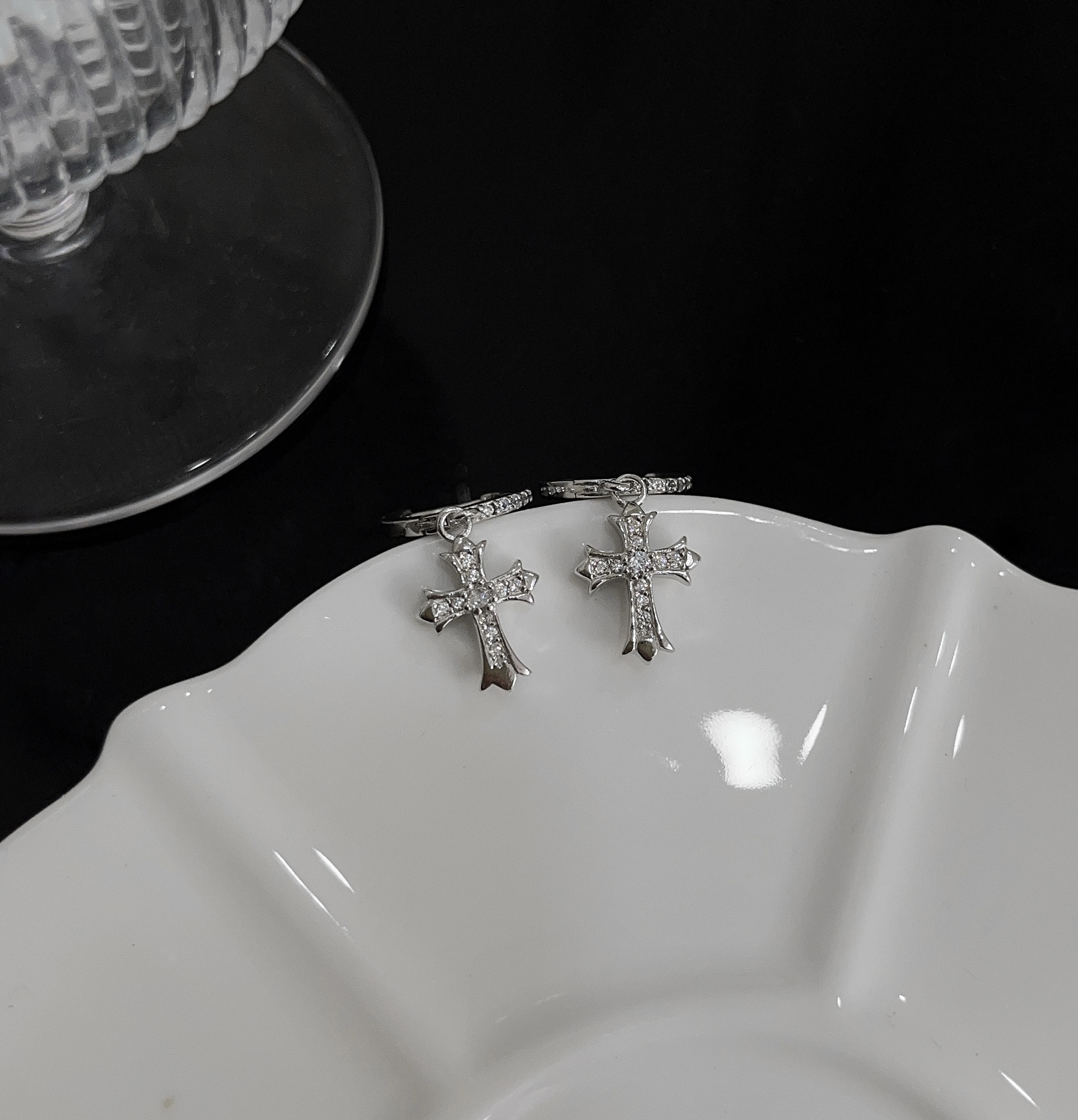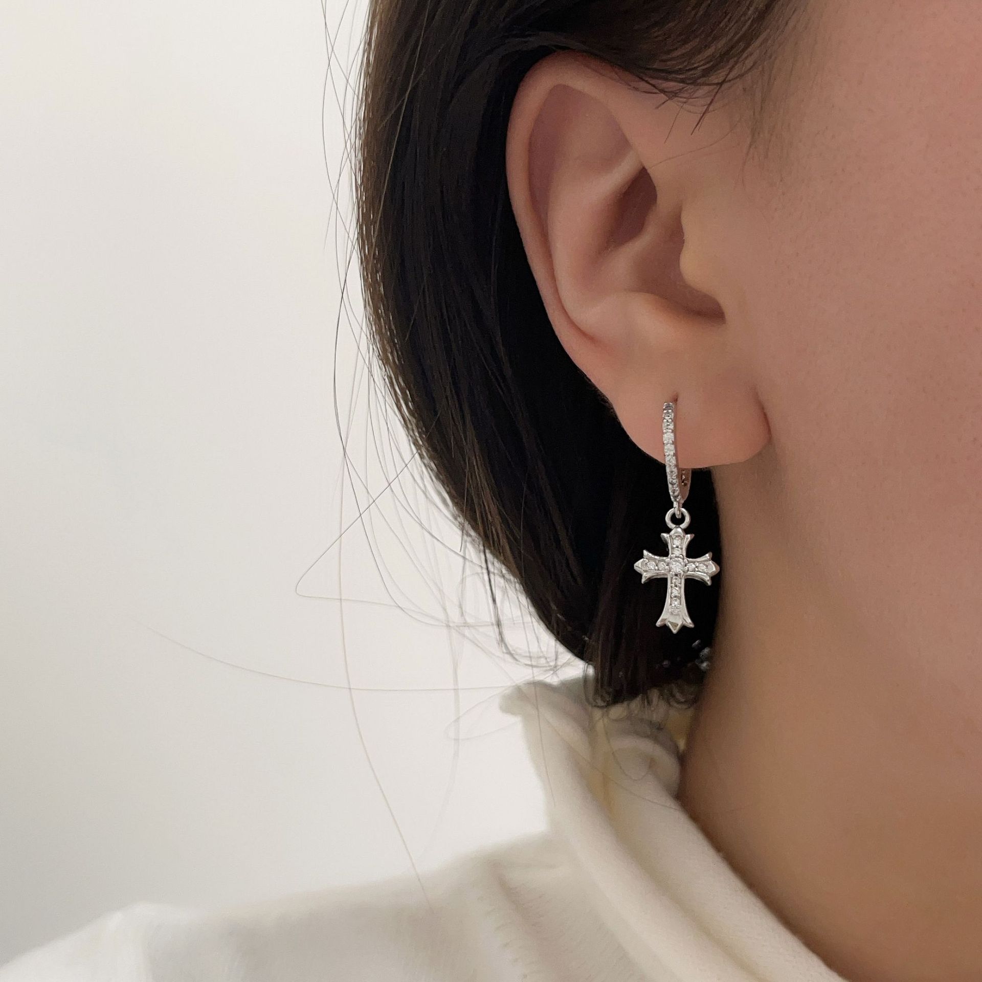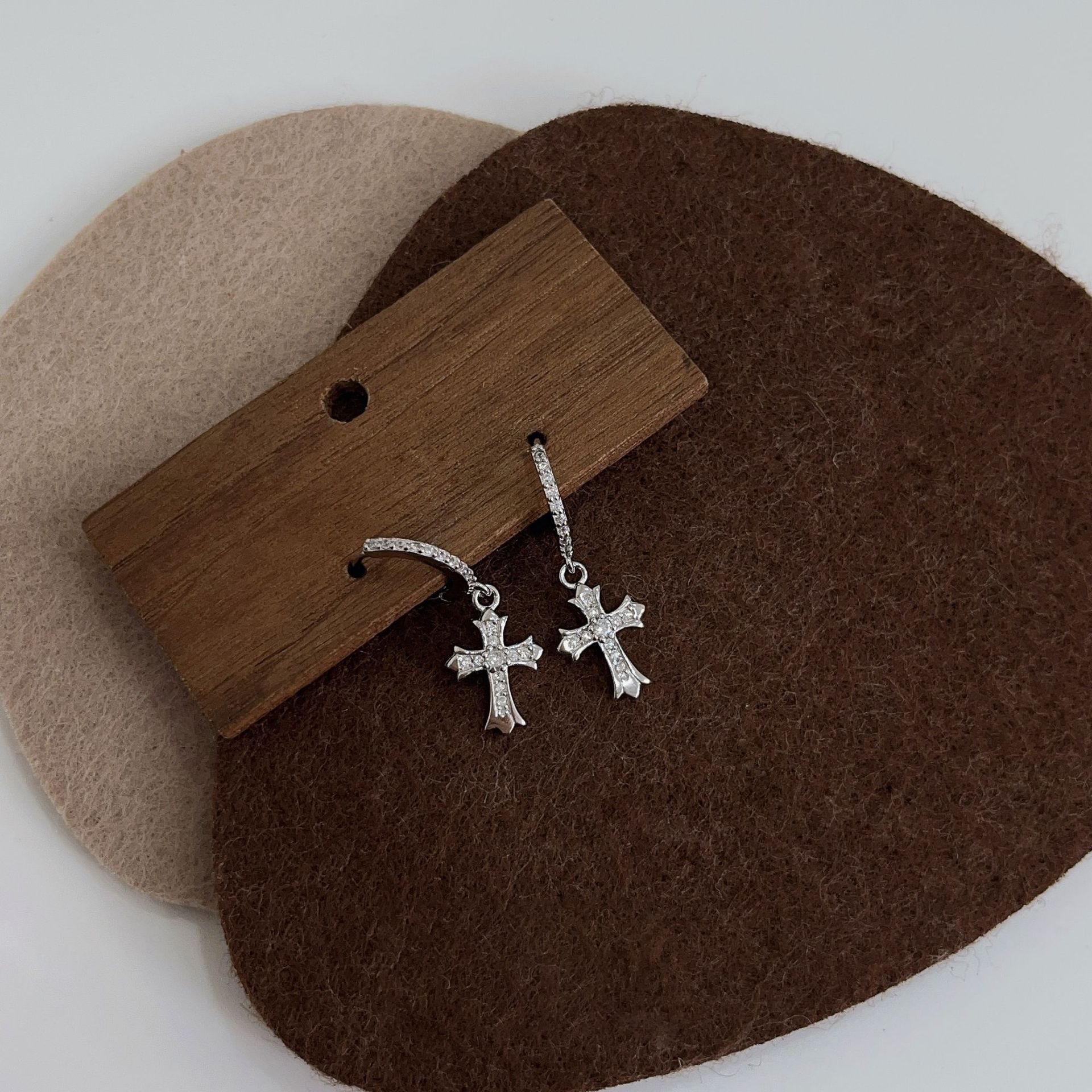 Silver Ruitai s925 sterling silver cross-border explosions cross earrings men's and women's fashion European and American style trend personality earrings