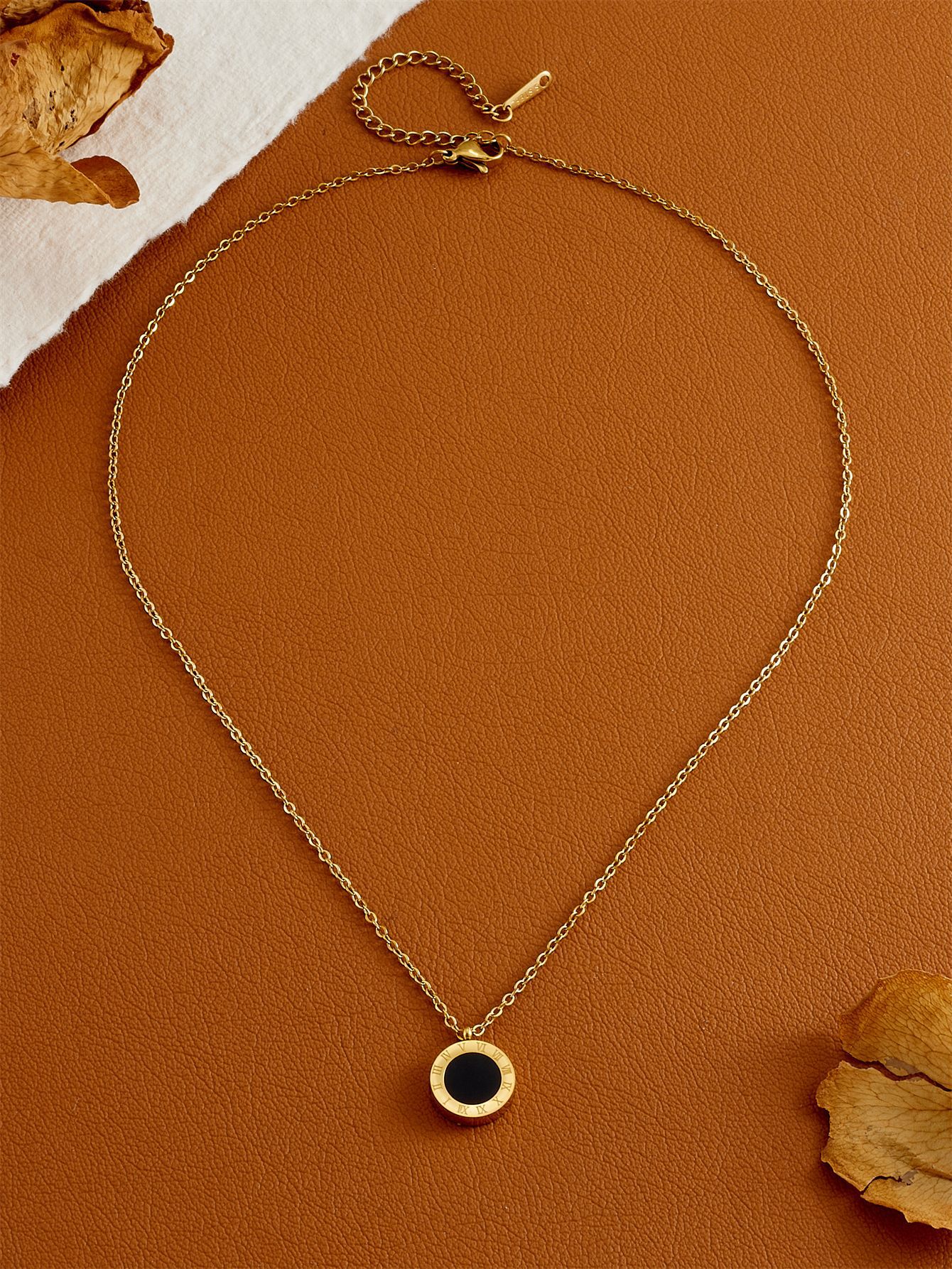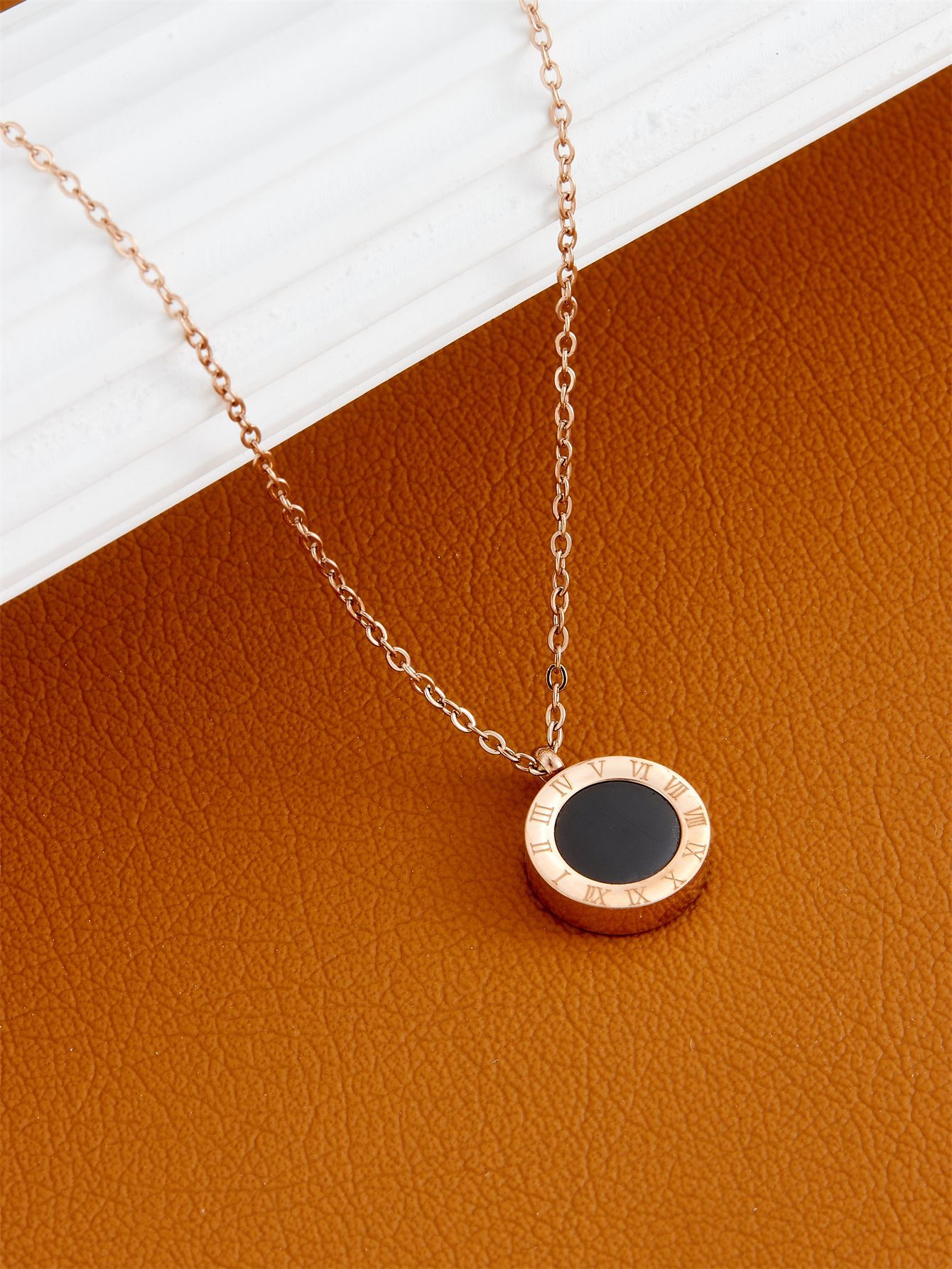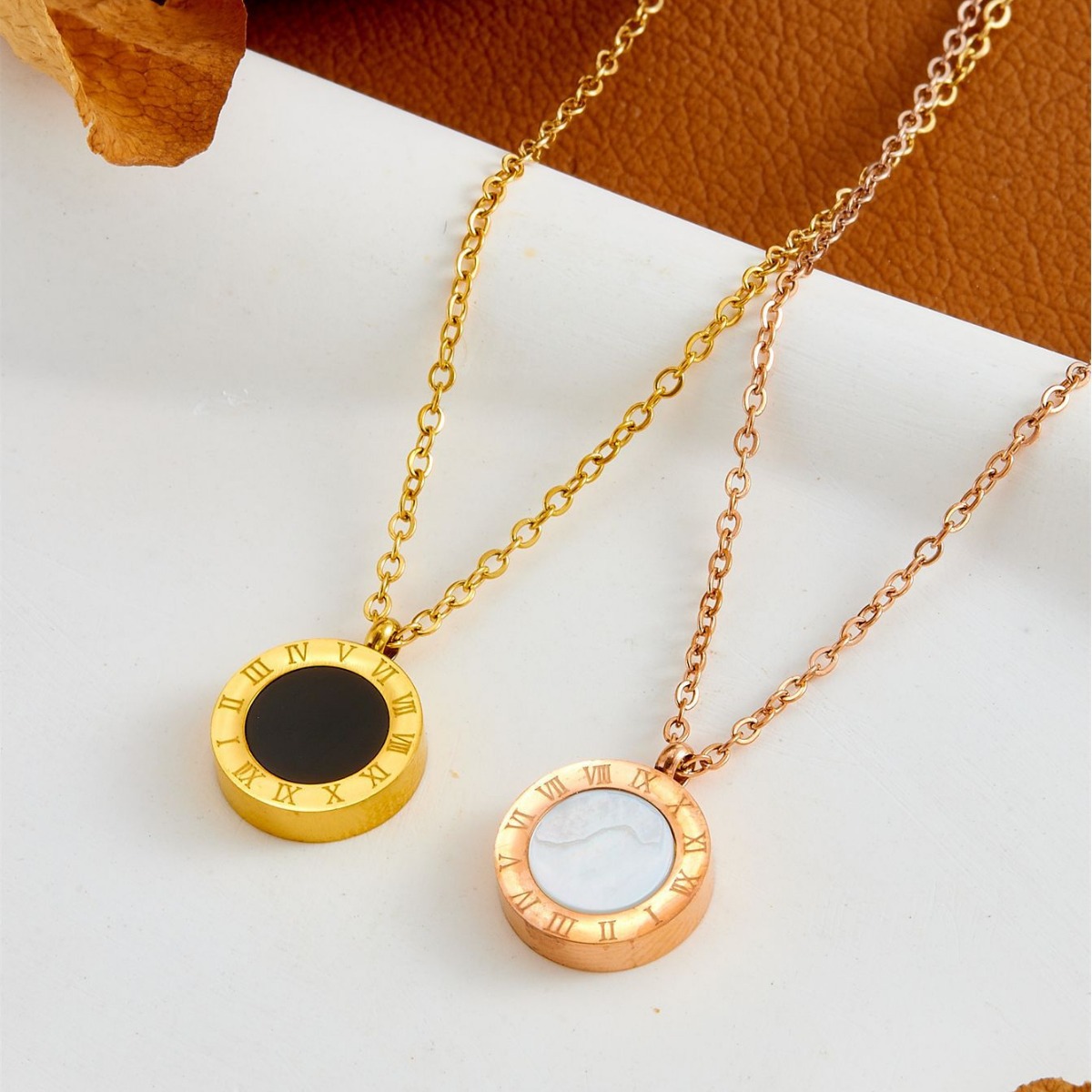 Japanese and Korean trend new Roman numeral titanium steel necklace anti-fade black and white double-sided clavicle chain fashion ins temperament