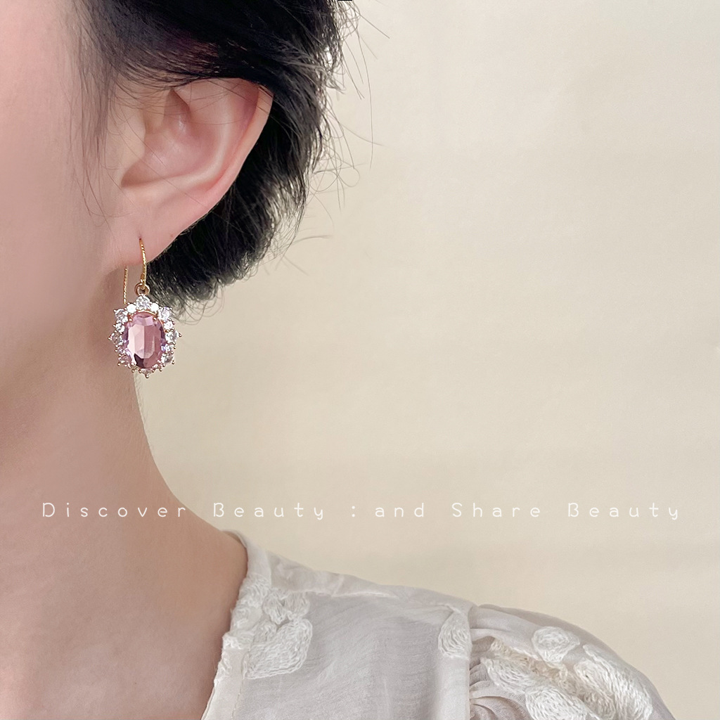 Color: Oval pink zircon-ear hook