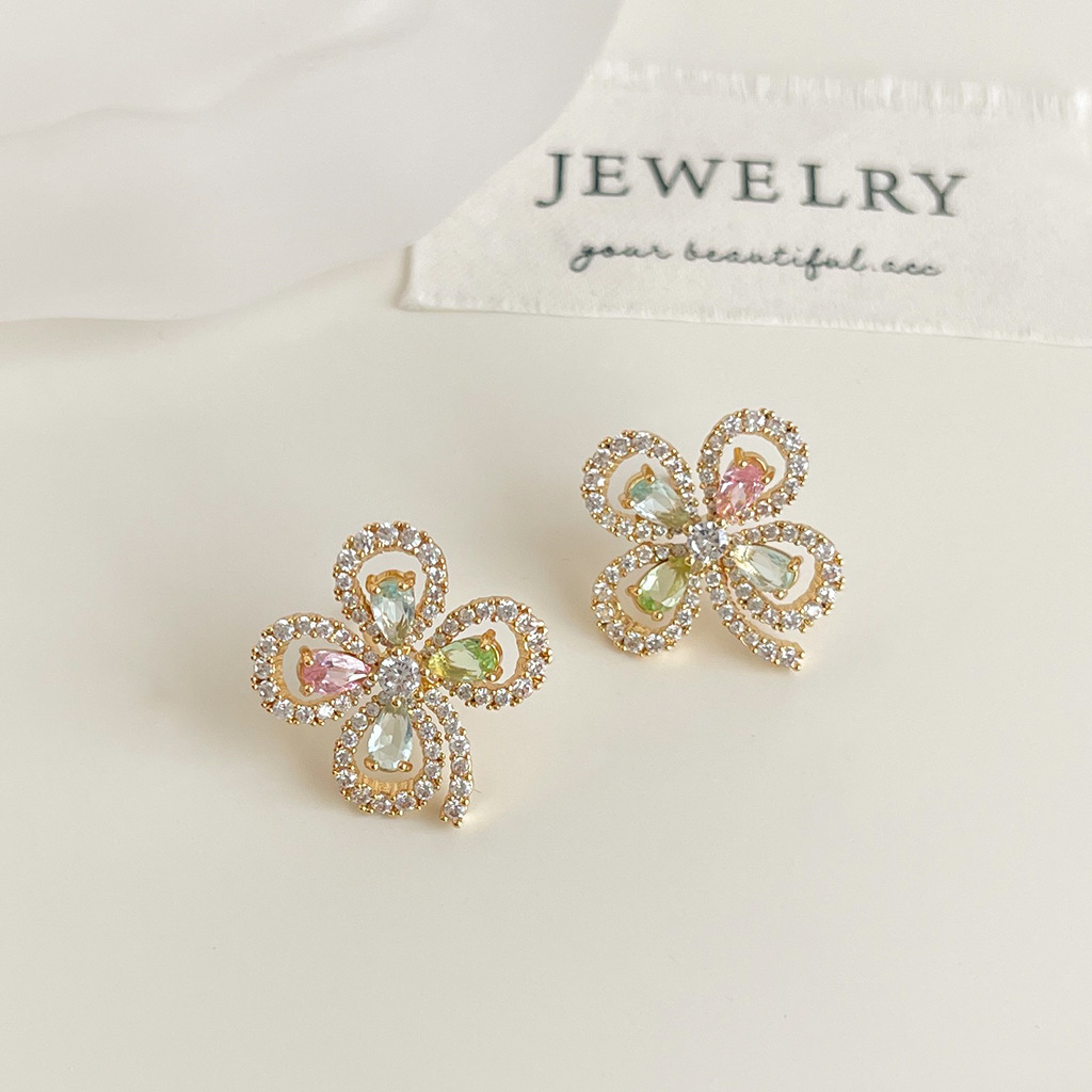 Color: Hollow four-leaf flower zircon-silver needle