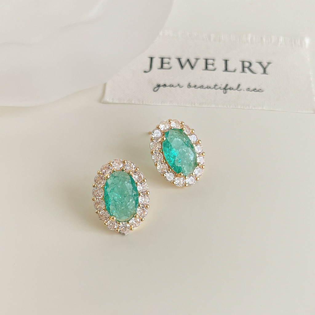 Color: Oval ice flower zirconium-silver needle