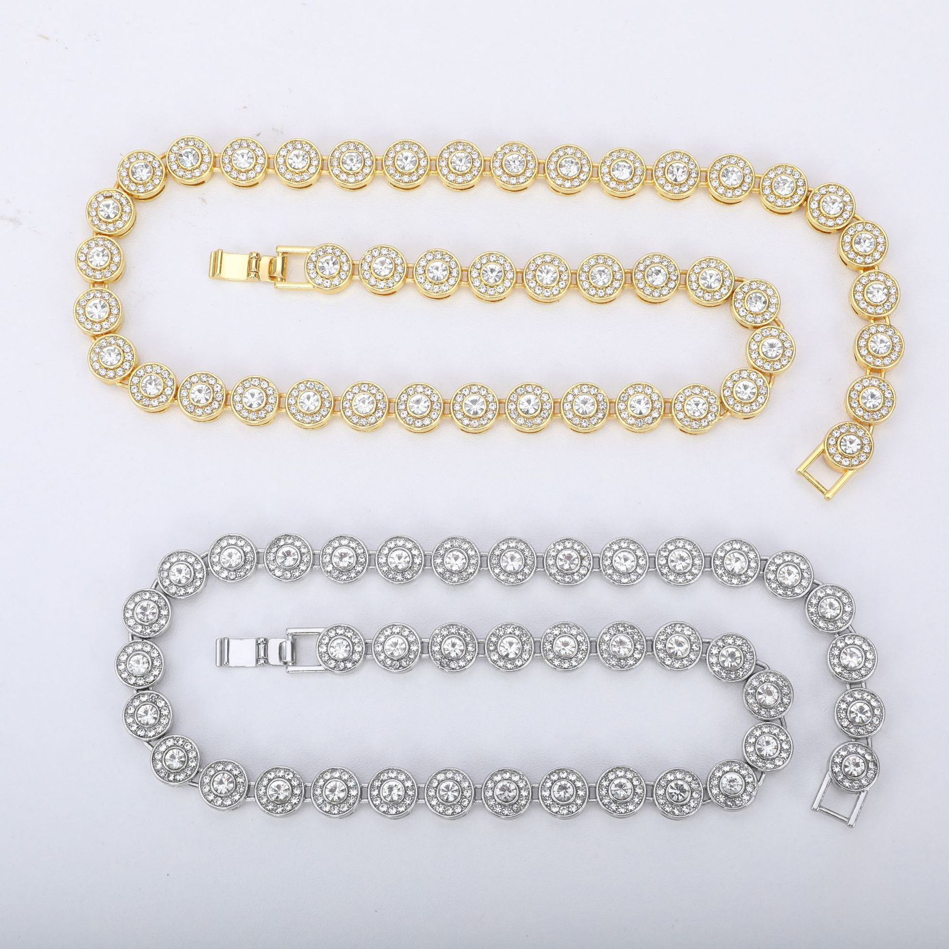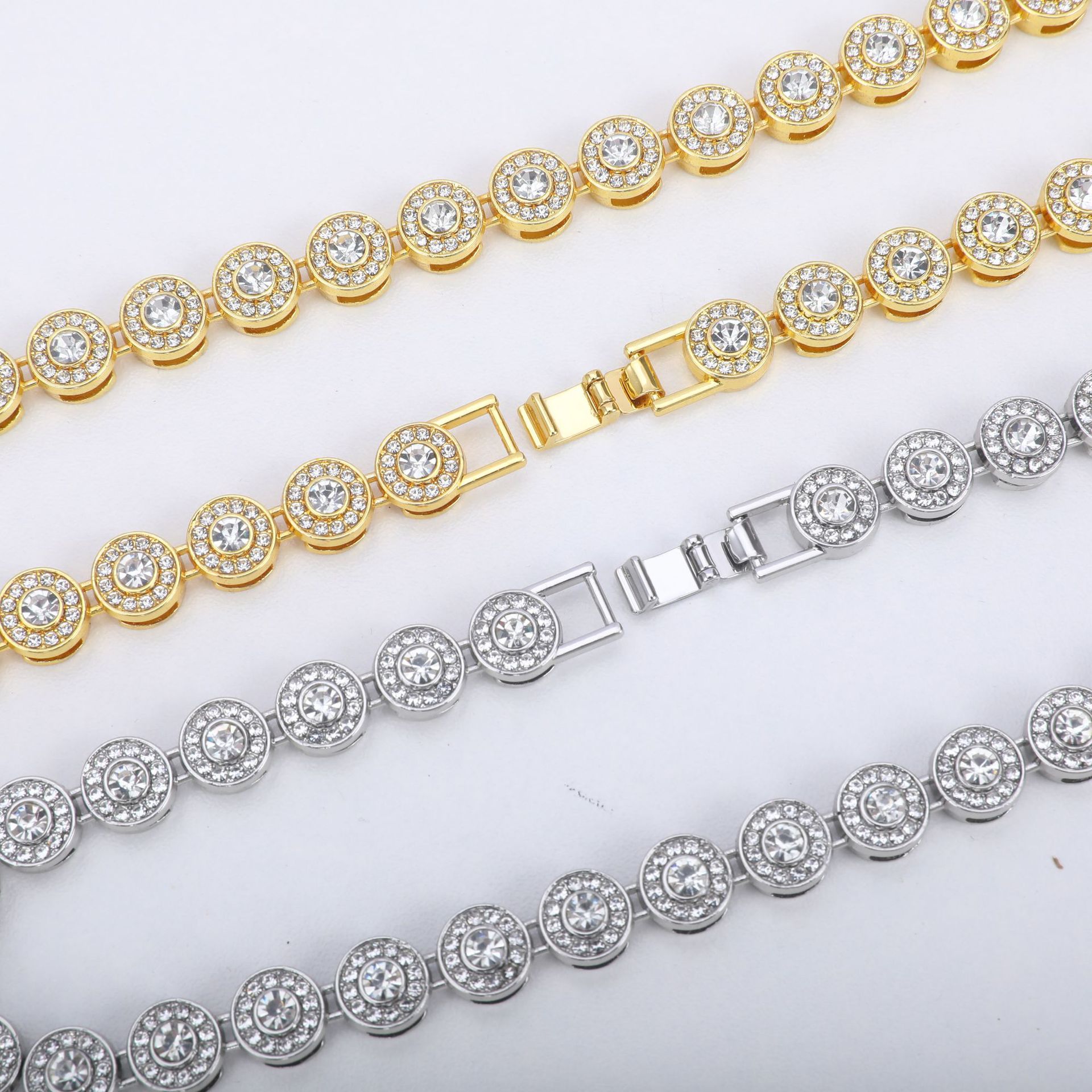 New Men's 10mm Classic Round Diamond Stitching Necklace European and American Cross-border Street Hip Hop Round Diamond Cuban Chain in stock