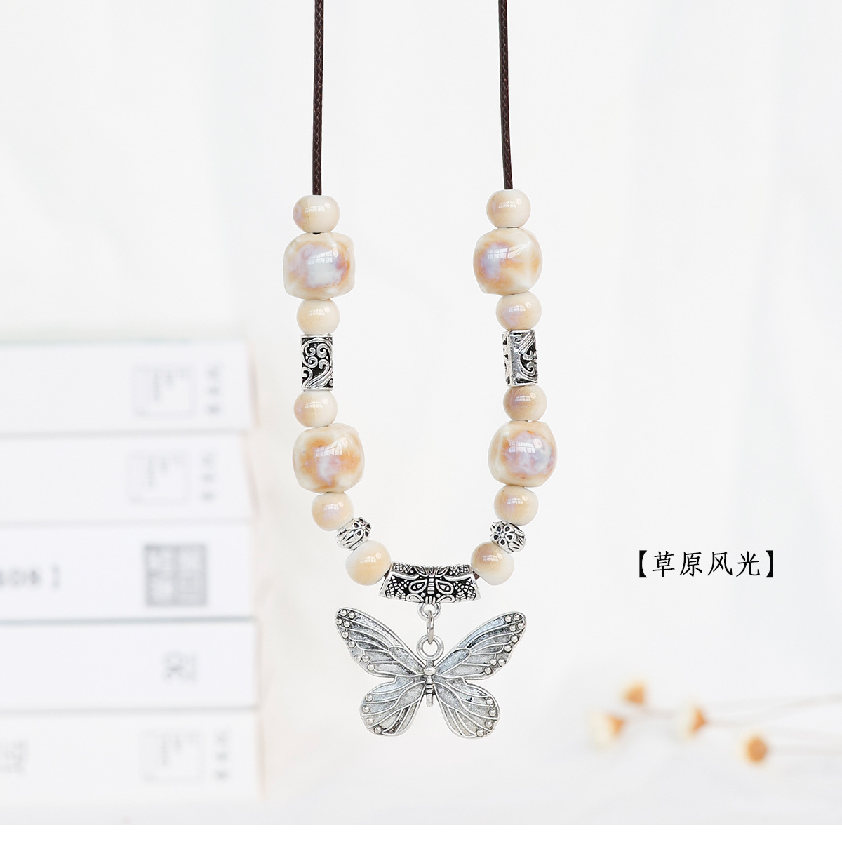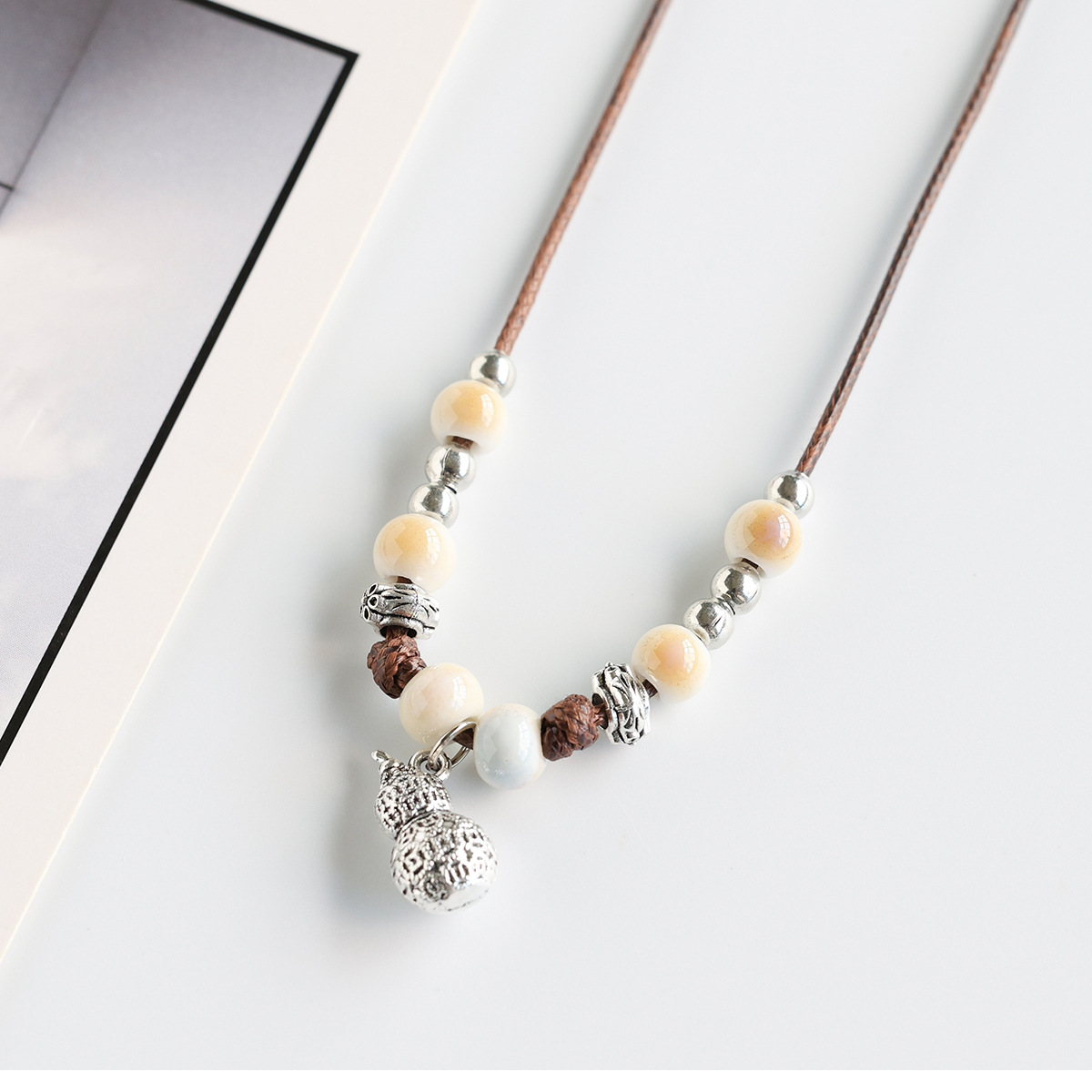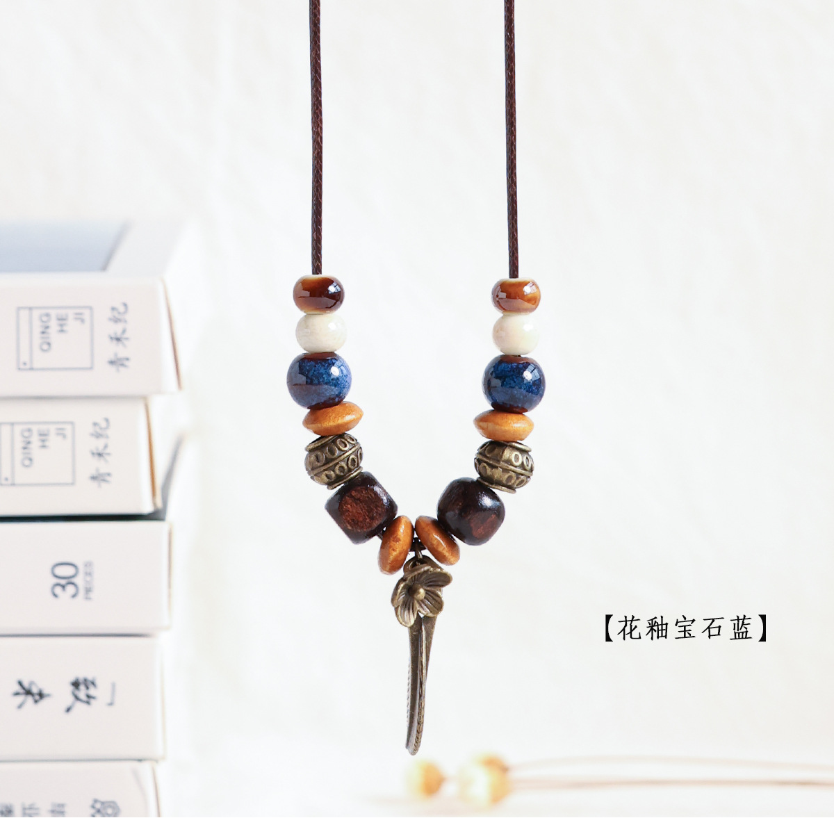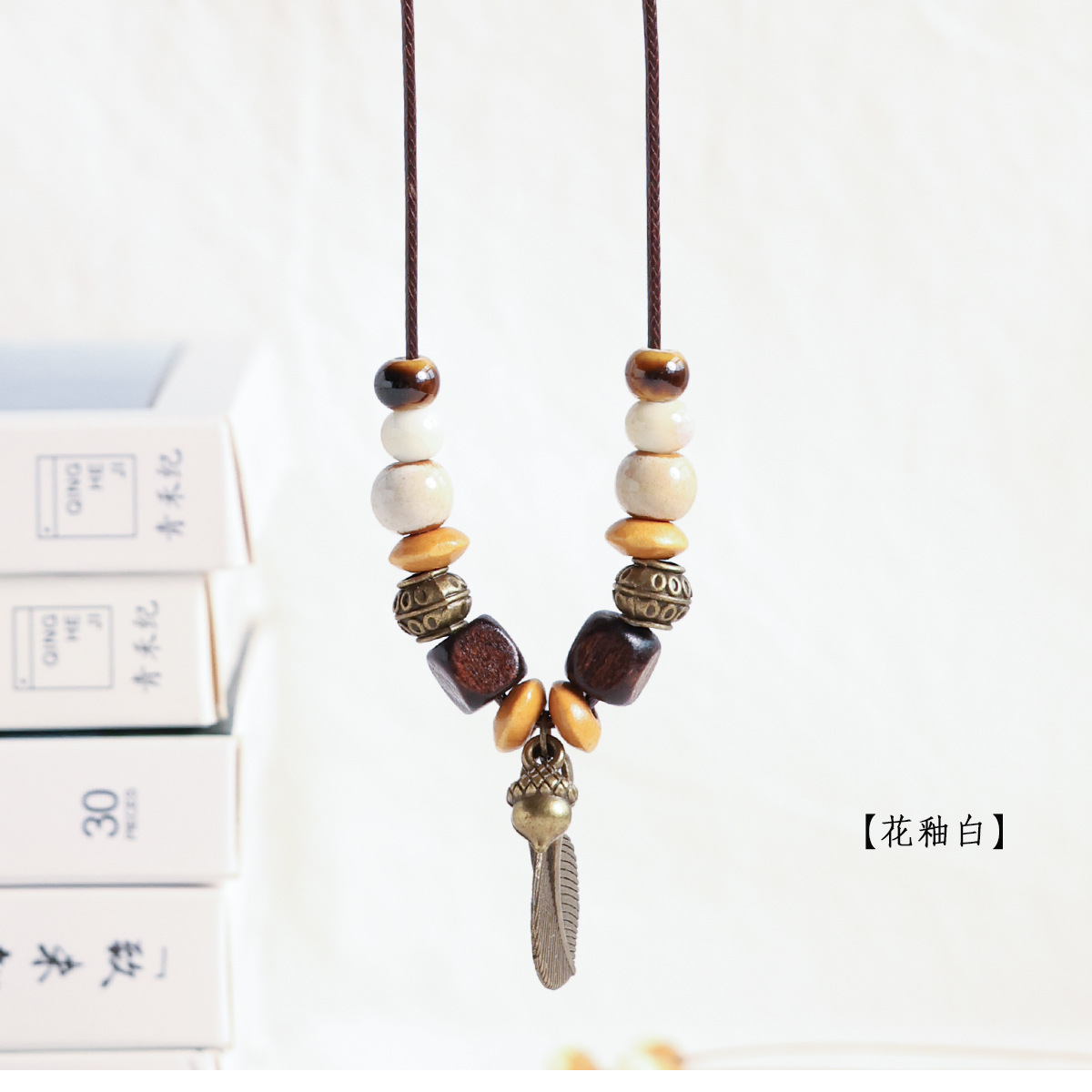 Source factory national style ceramic necklace new Chinese clavicle chain female pendant niche high sense sweater chain wholesale