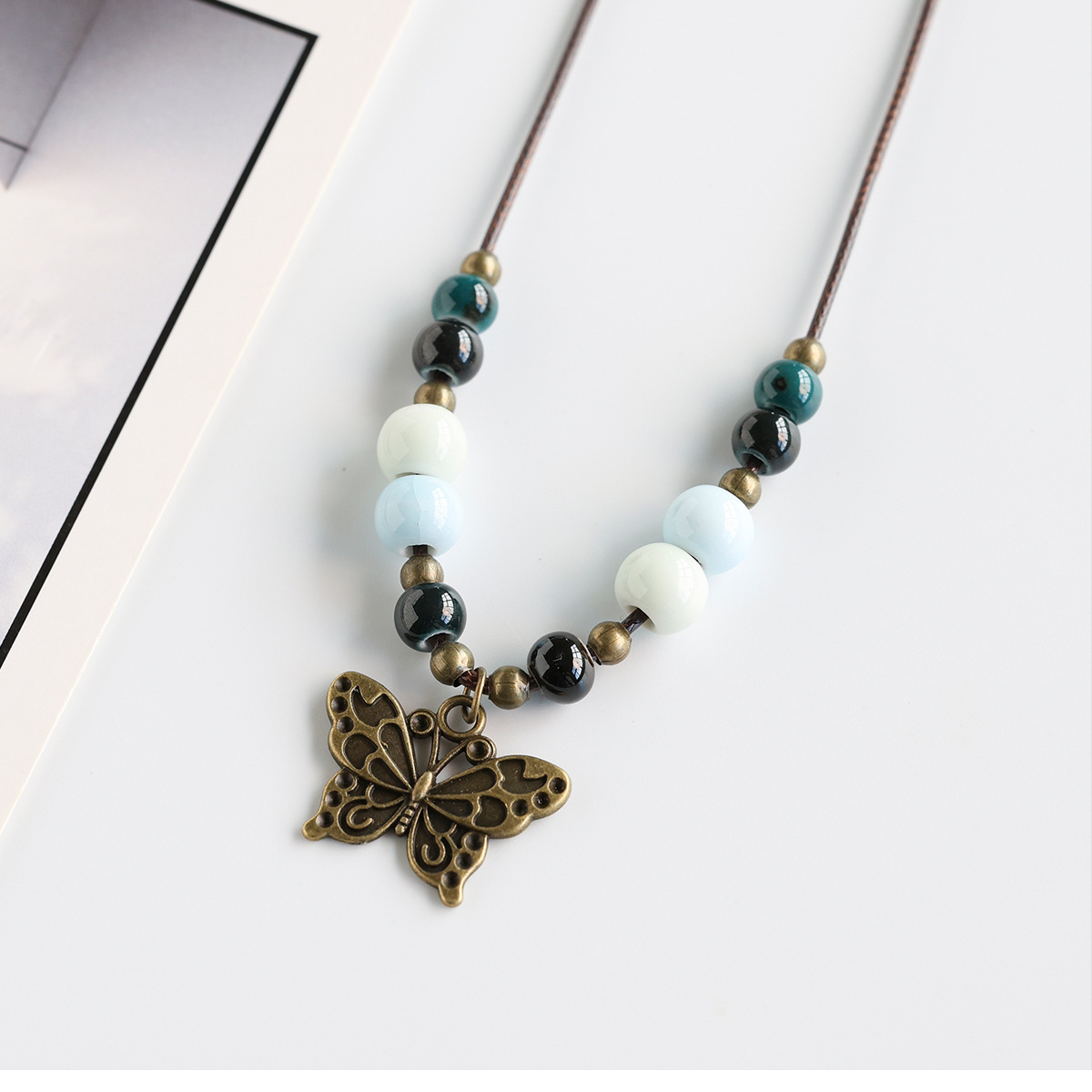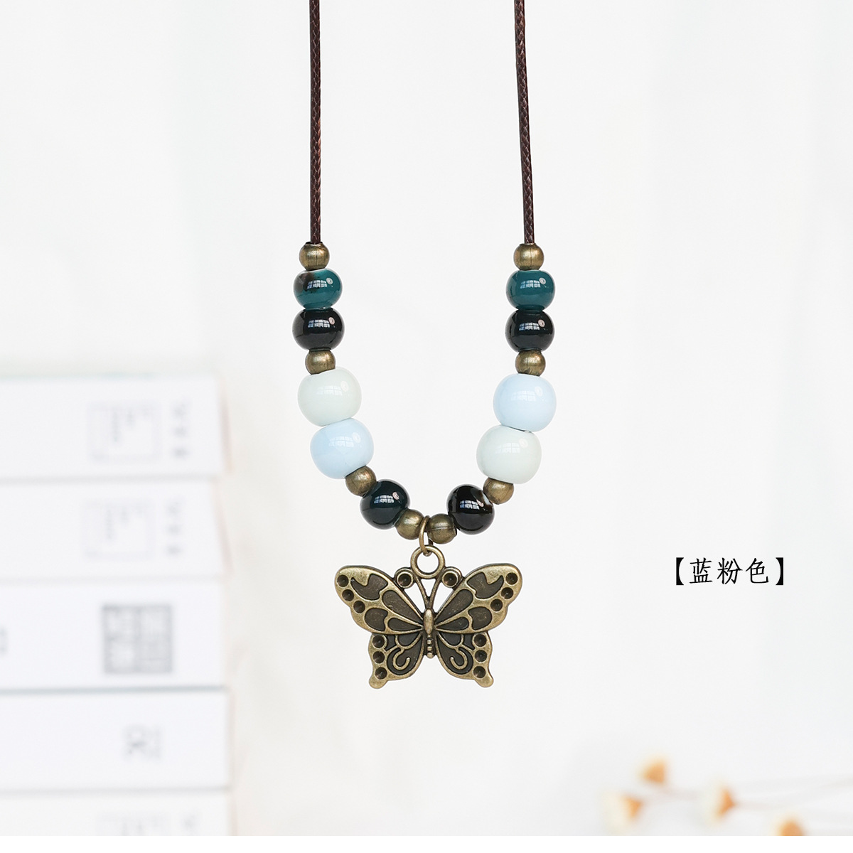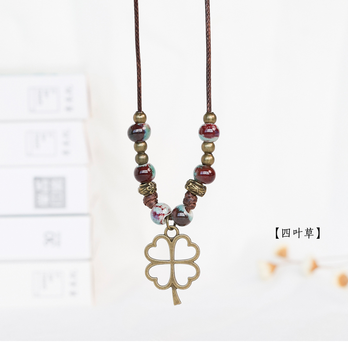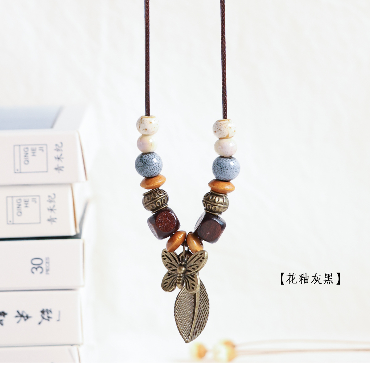 Source factory national style ceramic necklace new Chinese clavicle chain female pendant niche high sense sweater chain wholesale